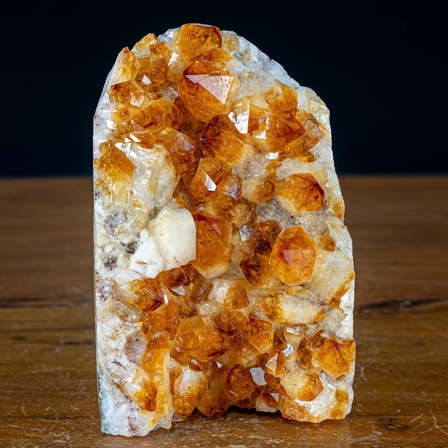 Eine erstaunliche Großer AAA++ Citrin-Quarz Druse aus Brasilien, die eine Vielzahl von Quarzkristallen von tieforanger Farbe zeigt.