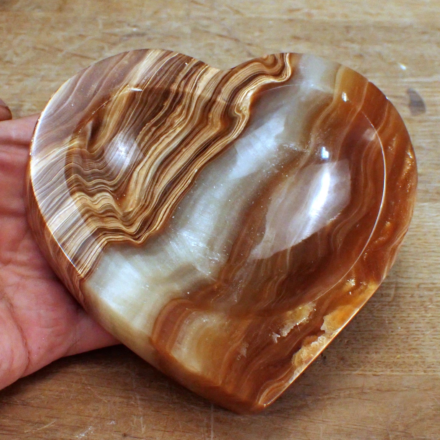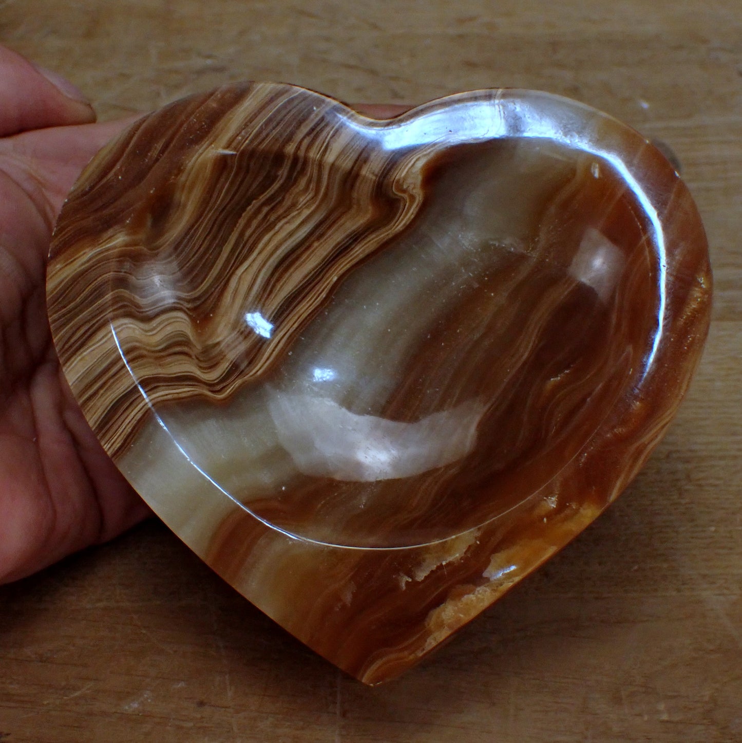 Aragonit Schale, Schüssel Herzform - 690,19g - 120x130x32 mm