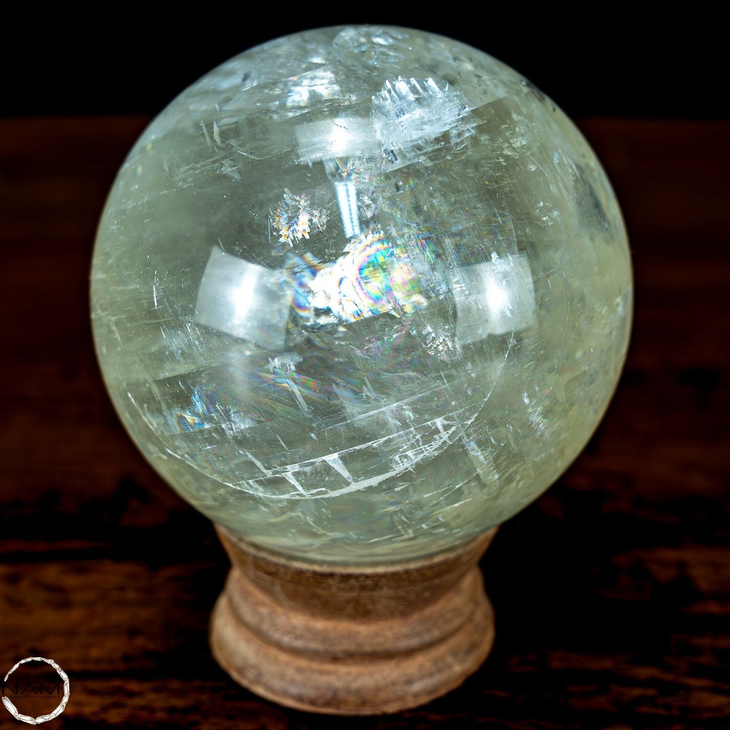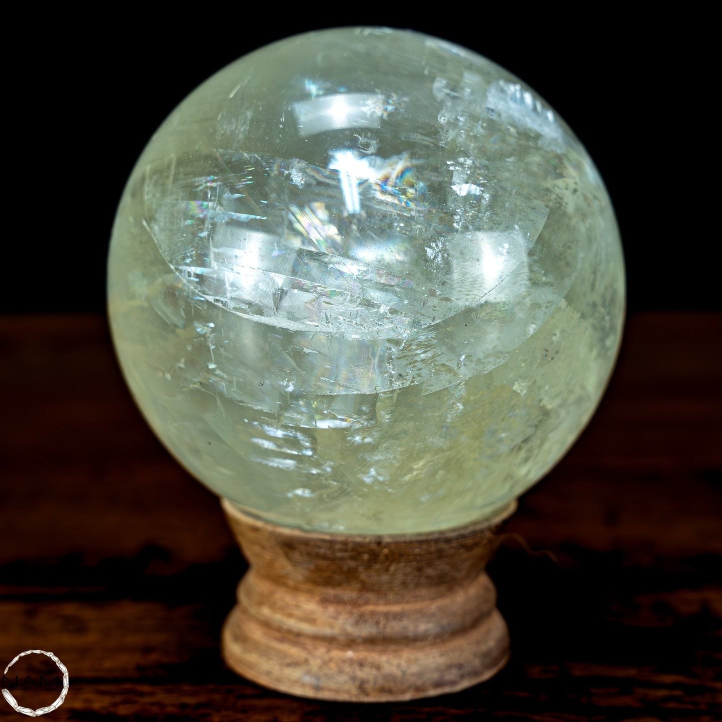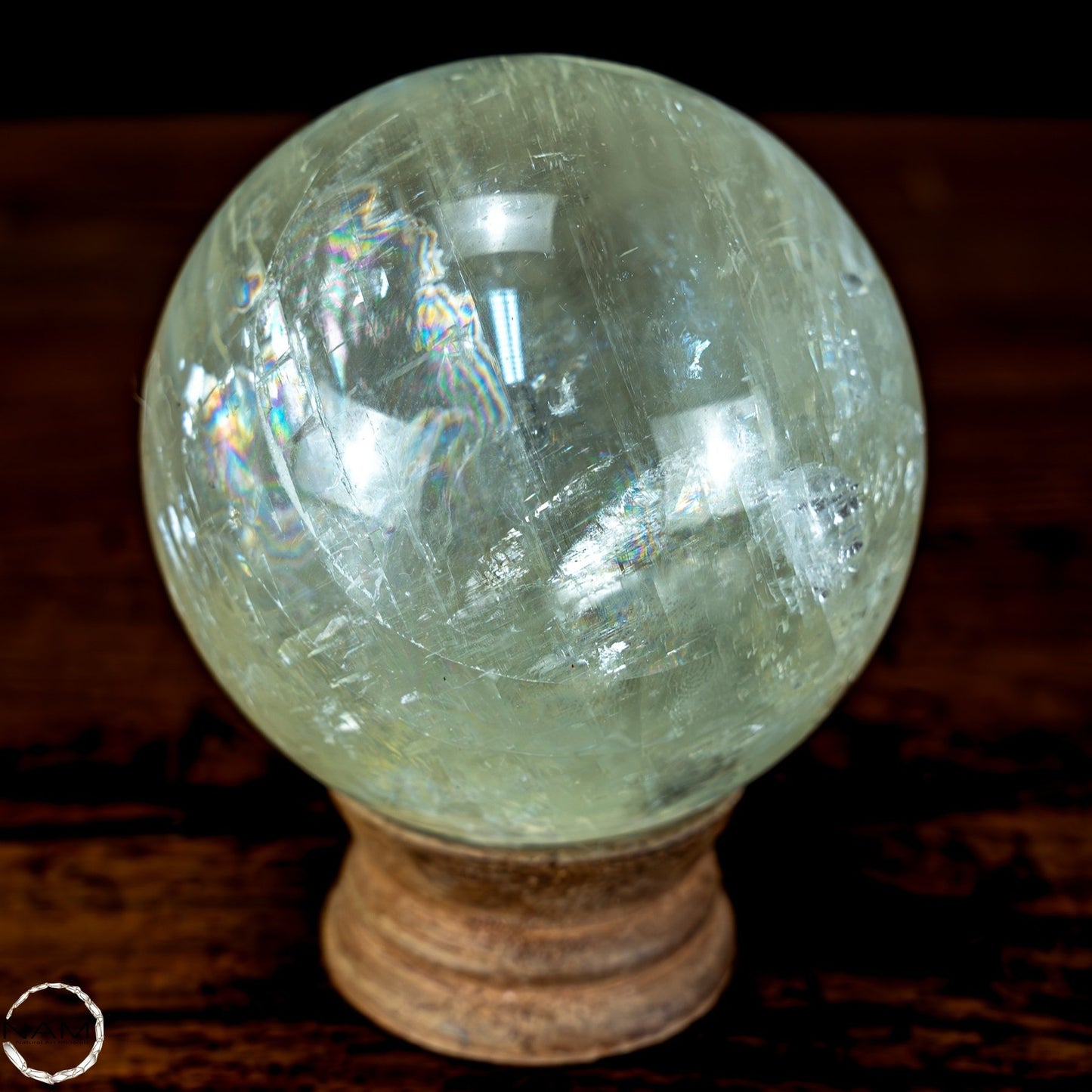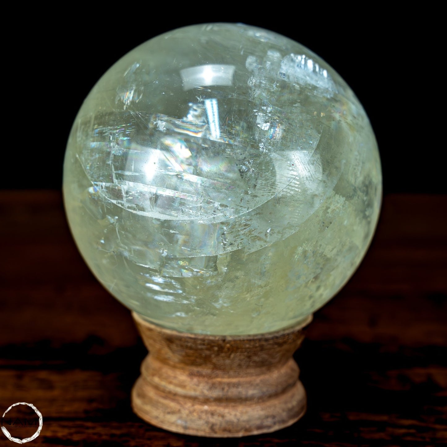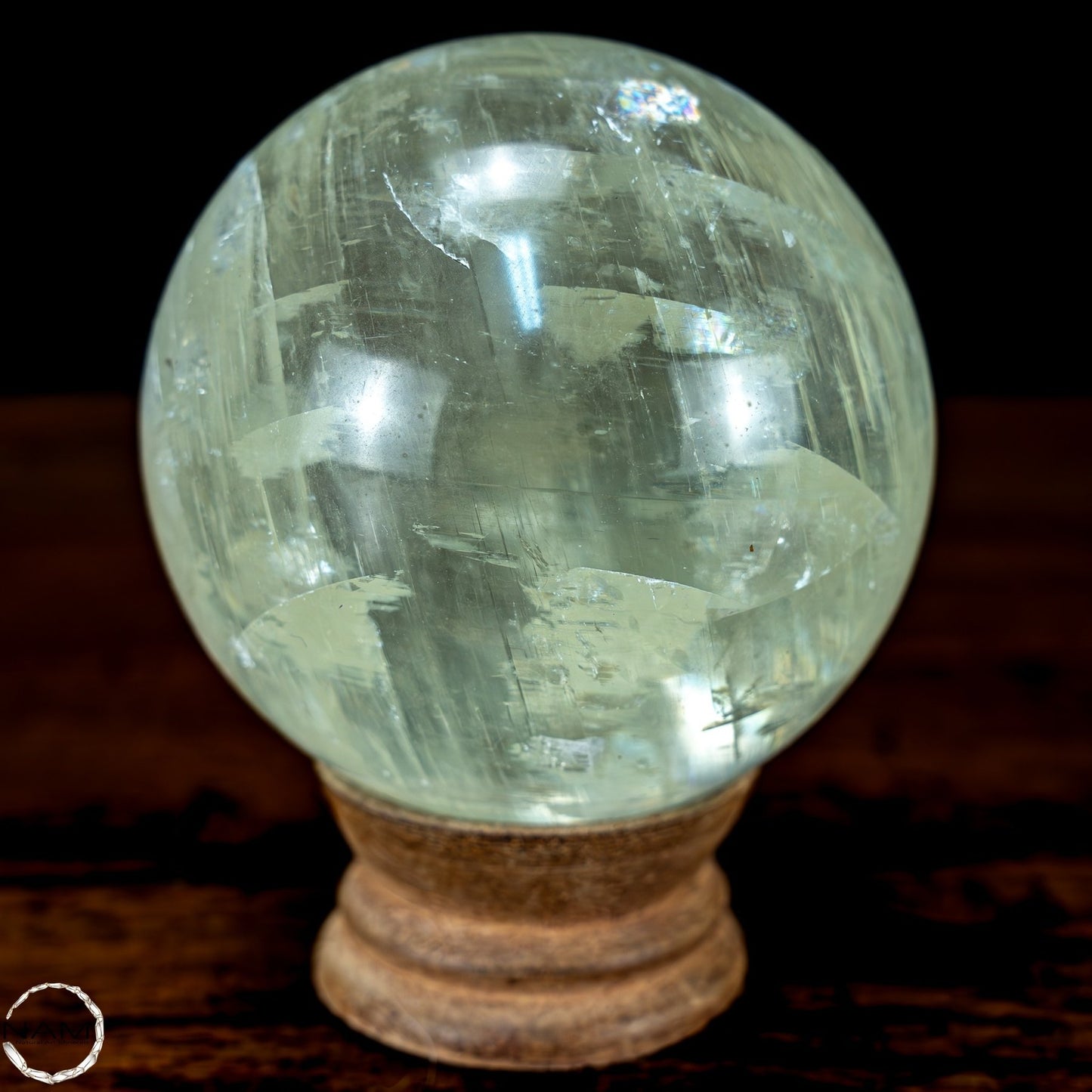 Gelb-Grüne Calzit Kugel mit Katzenaugen-Effekt - 553,57g - 72mm