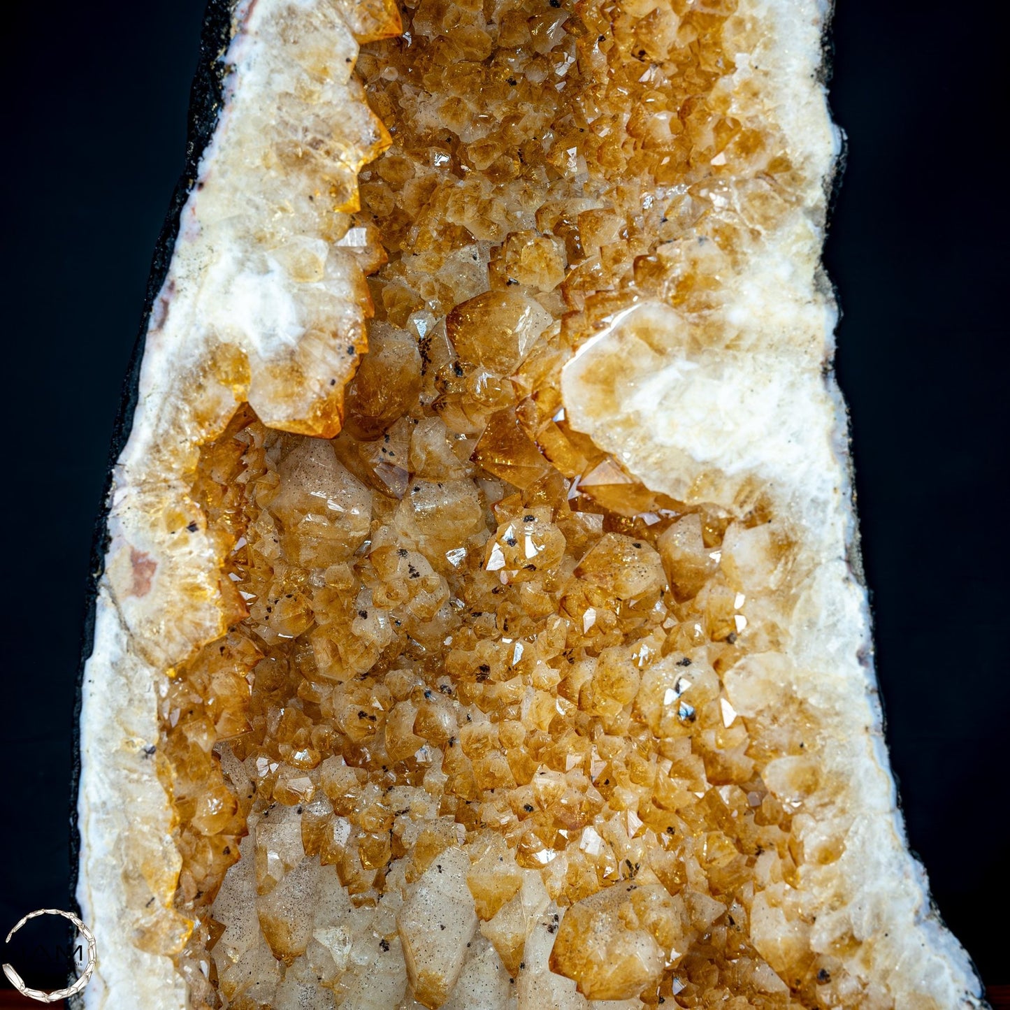 Die Kristalle sind klar und haben eine fast glasartige Oberfläche, die sie in jeder Lichtsituation noch mehr zum Strahlen bringt. Die tiefen, goldenen Farbtöne, die durch die natürliche Bildung des Citrins entstehen, verleihen der Druse eine sehr luxuriöse Ausstrahlung. Citrin ist bekannt dafür, als „Stein des Wohlstands“ zu gelten und fördert positive Energie, Wohlstand und Freude, was diese Druse nicht nur zu einem dekorativen Element, sondern auch zu einem kraftvollen spirituellen Symbol macht.