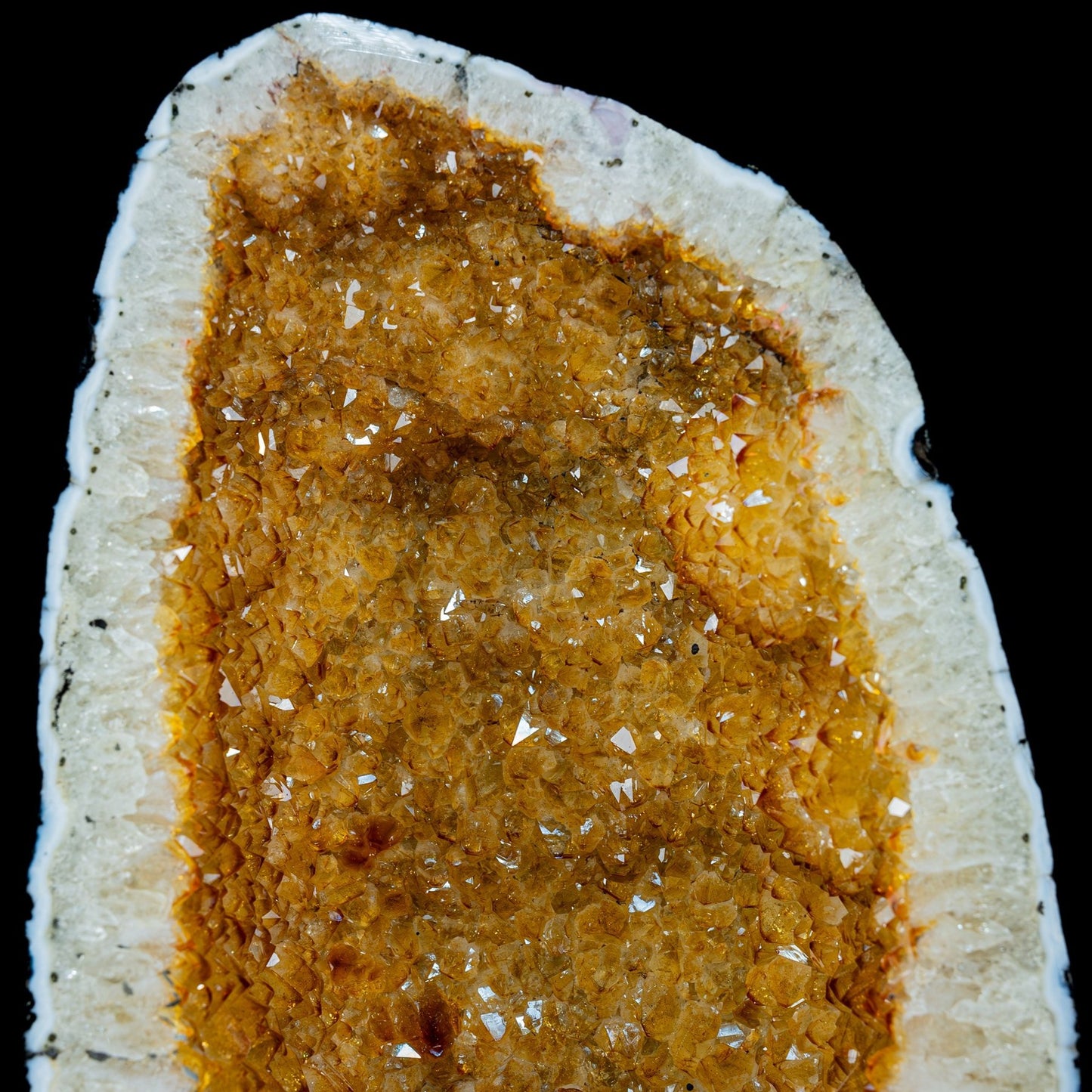 Eine erstaunliche Citrin-Quarz-Druse aus Brasilien, die eine Vielzahl von Quarzkristallen von tieforanger Farbe zeigt.