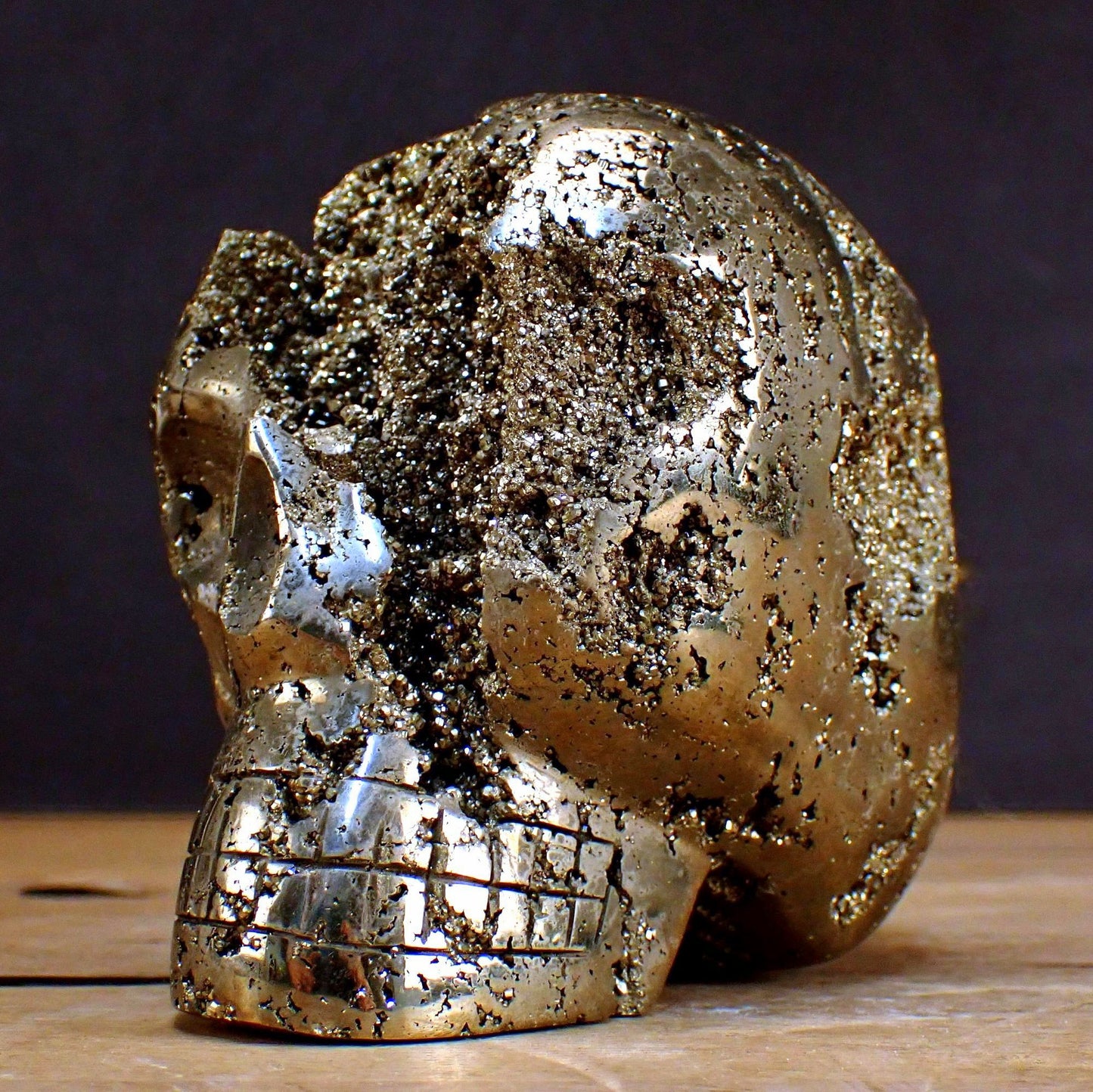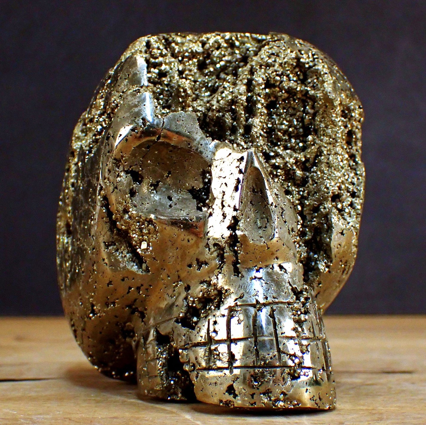 Großer Pyrit Schädel/Totenkopf Skulptur - 2165,51g