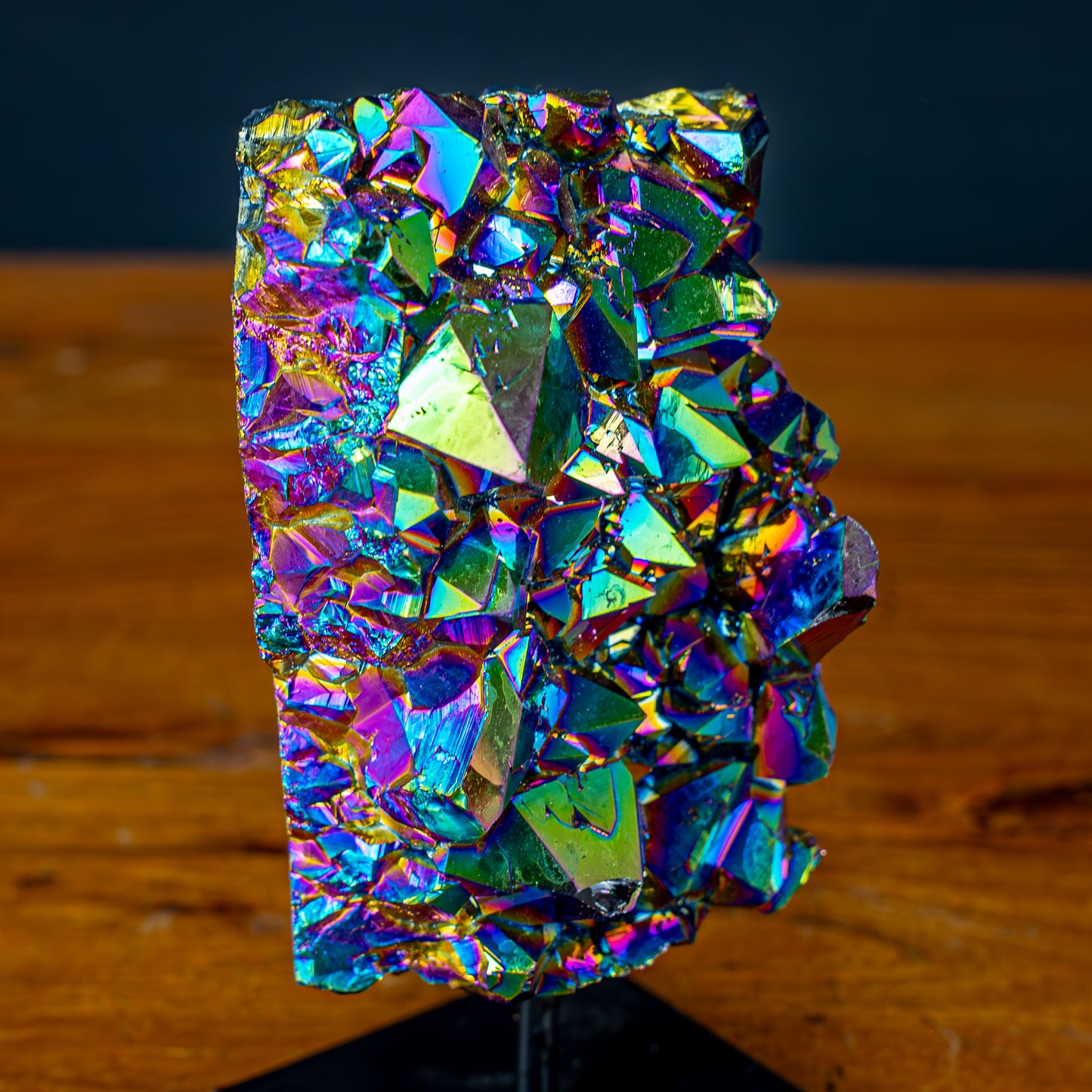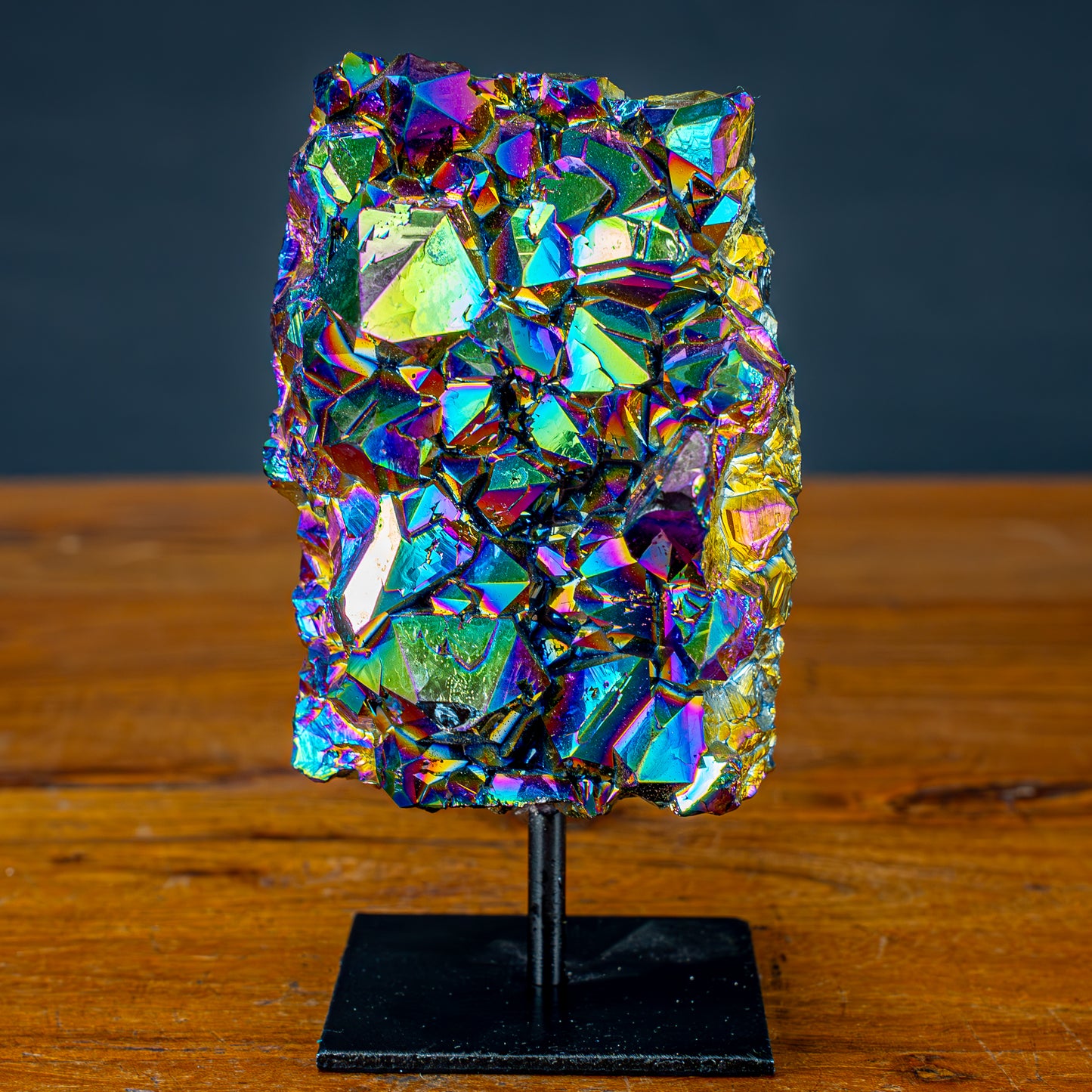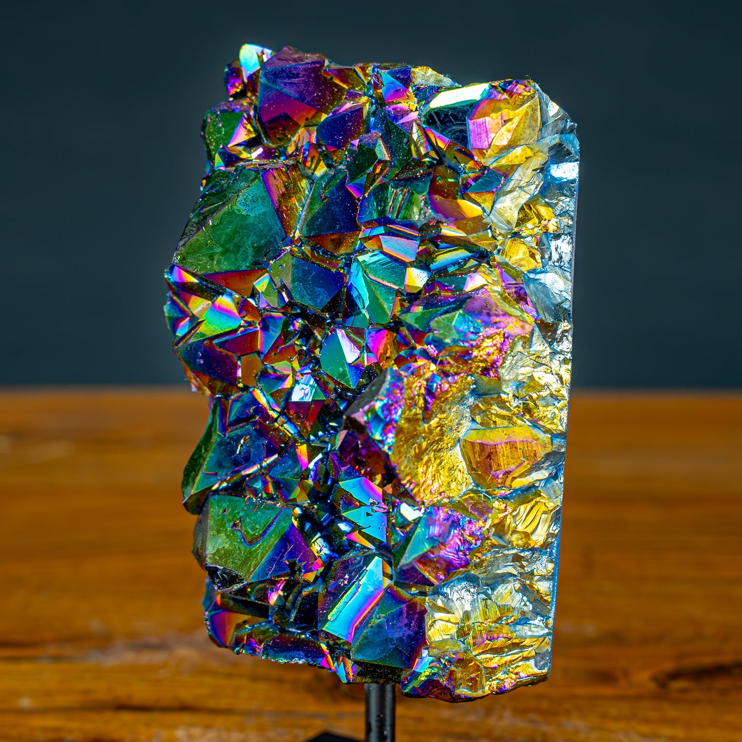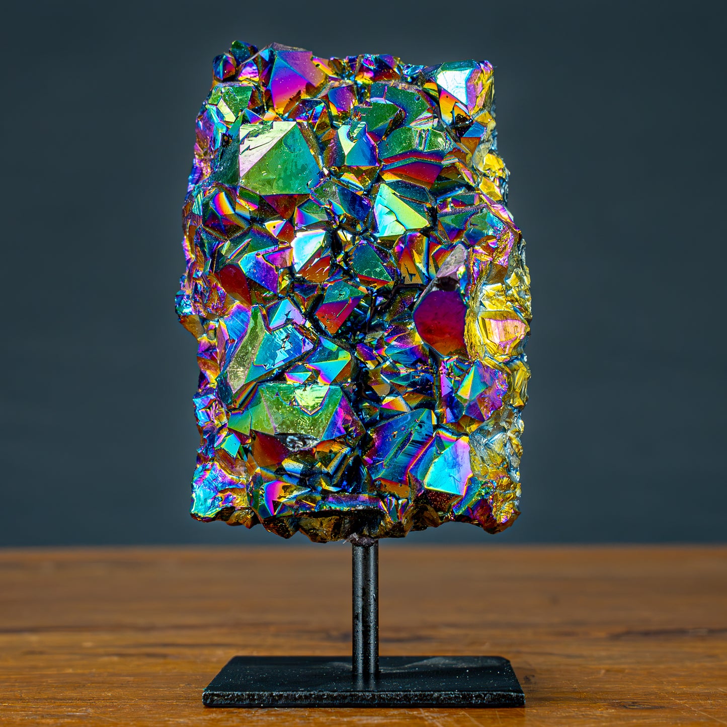 Ein ganz besonderes Stück Titan Amethyst oder auch Aura Amethyst genannt. Mit seinen besonders Markanten farben und traumhaften Kristallen verleiht der Aura Amethyst ihrem Zuahause eine sehr ausgefallene Lebensfreude.