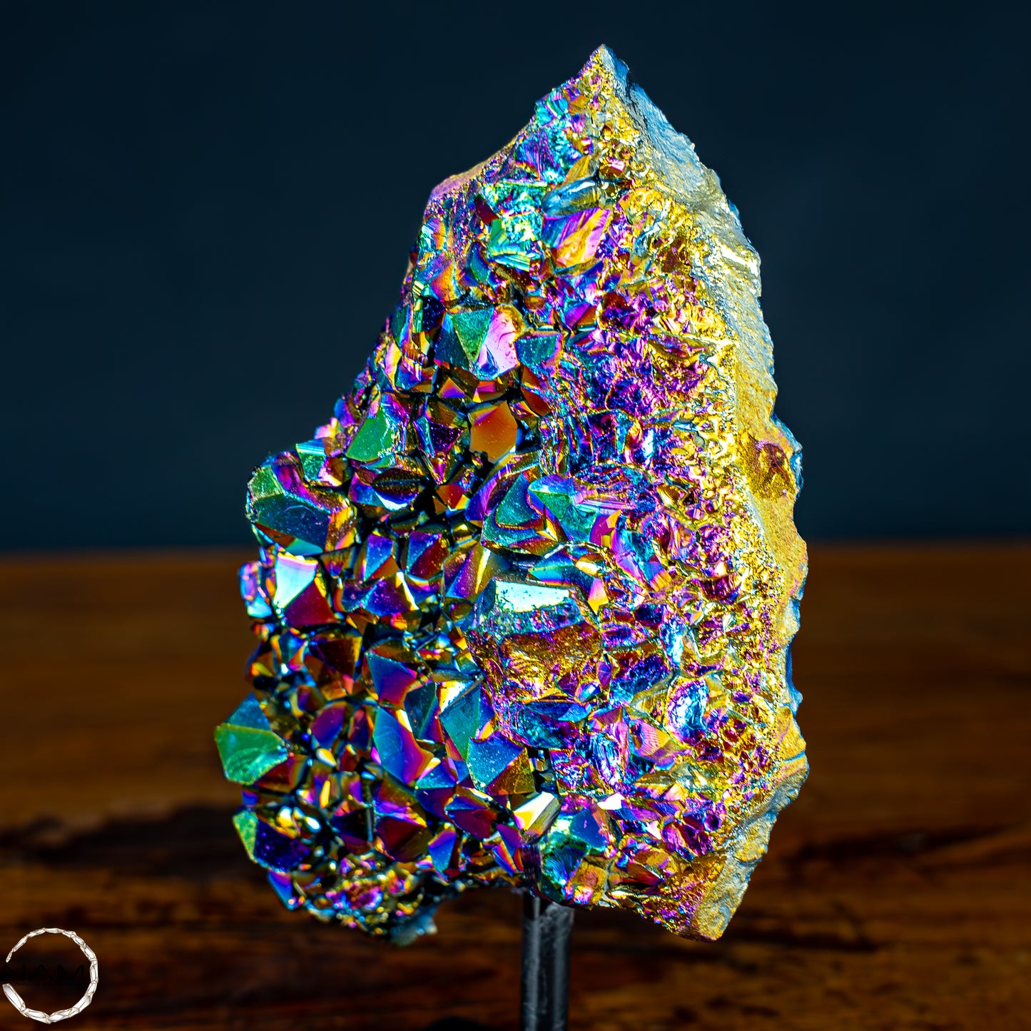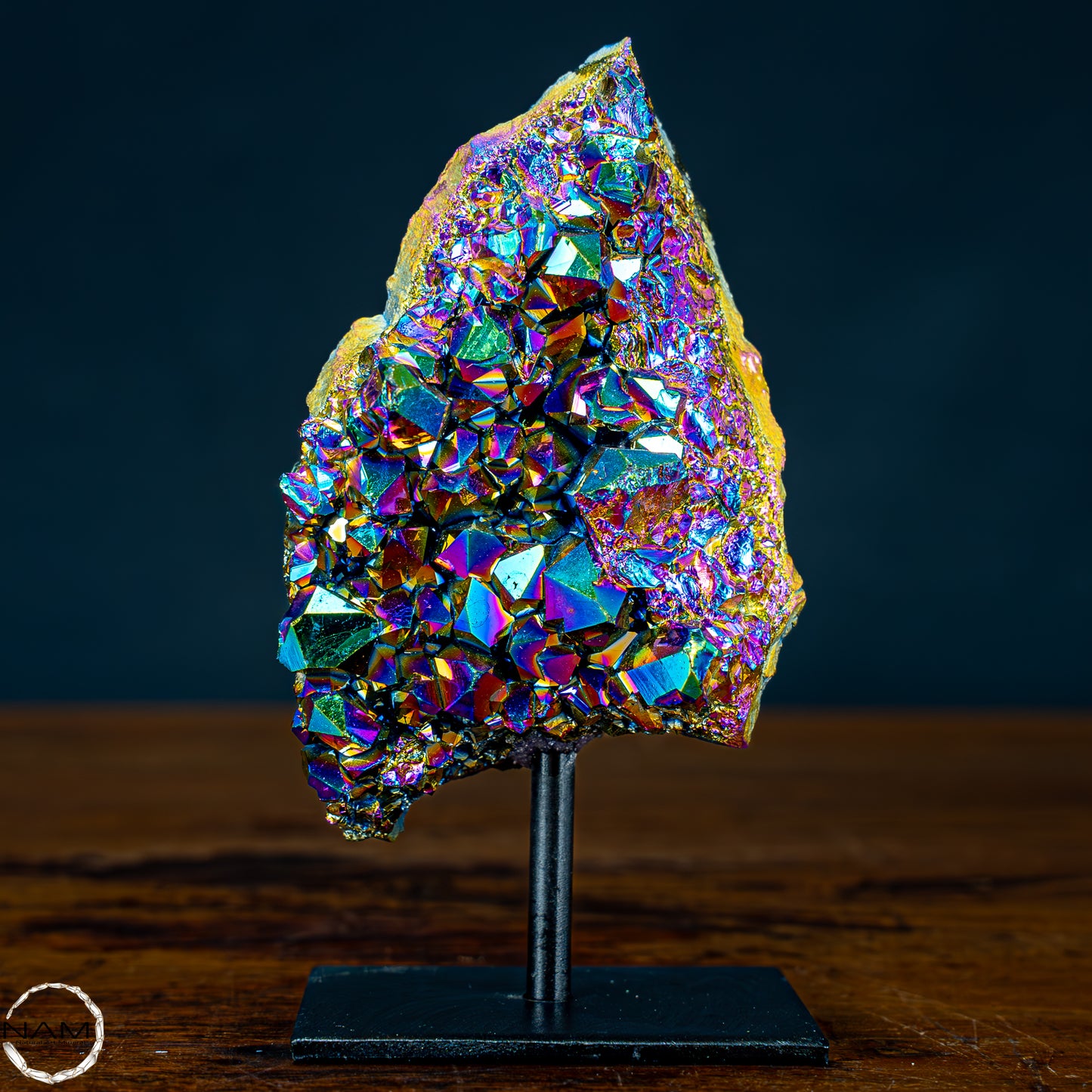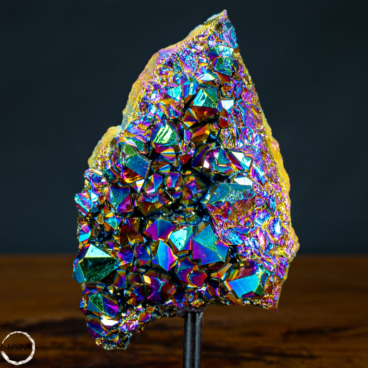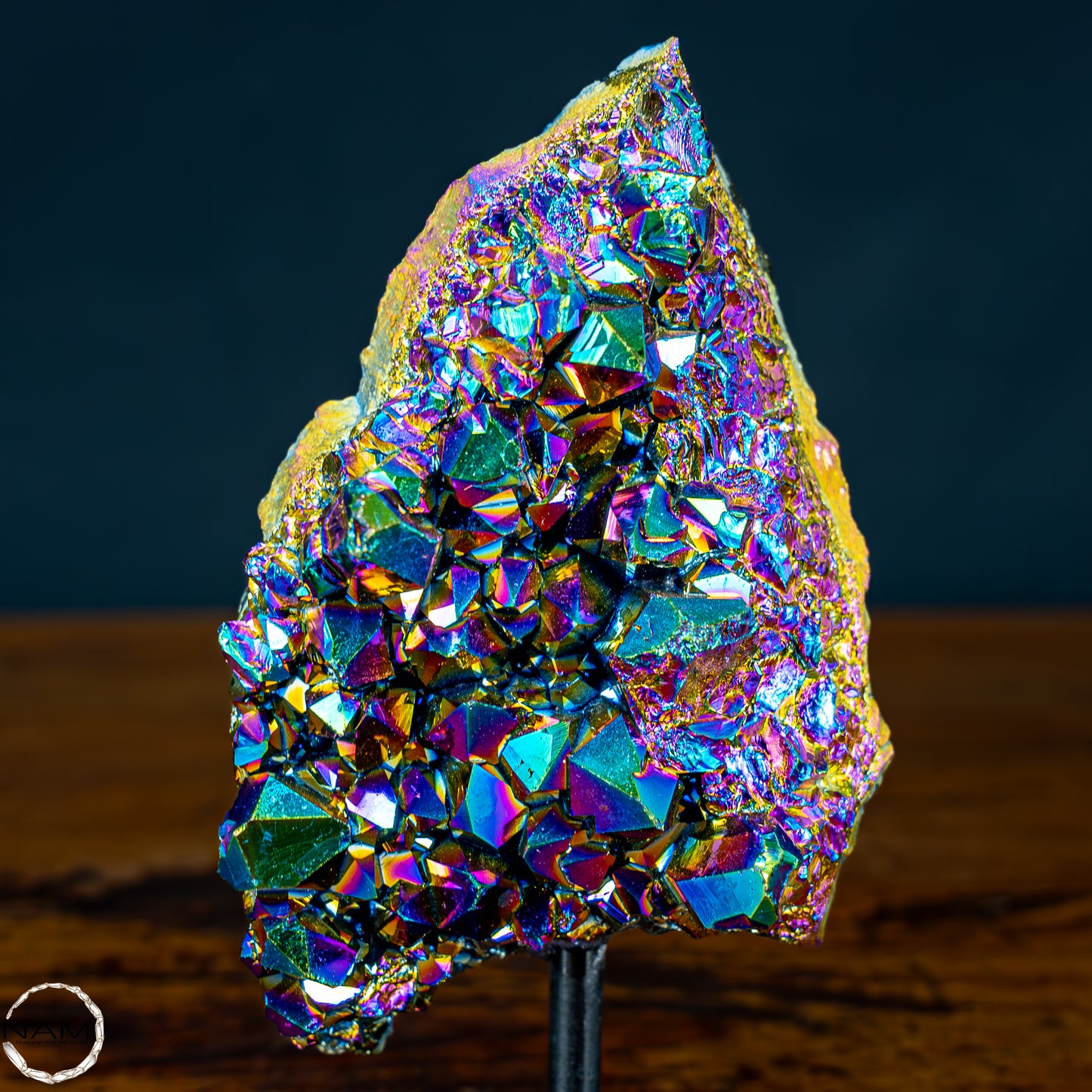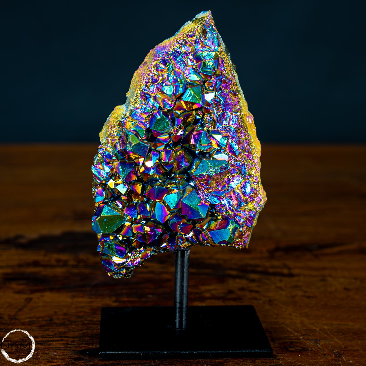 Ein ganz besonderes Stück Titan Amethyst oder auch Aura Amethyst genannt. Mit seinen besonders Markanten farben und traumhaften Kristallen verleiht der Aura Amethyst ihrem Zuahause eine sehr ausgefallene Lebensfreude.
