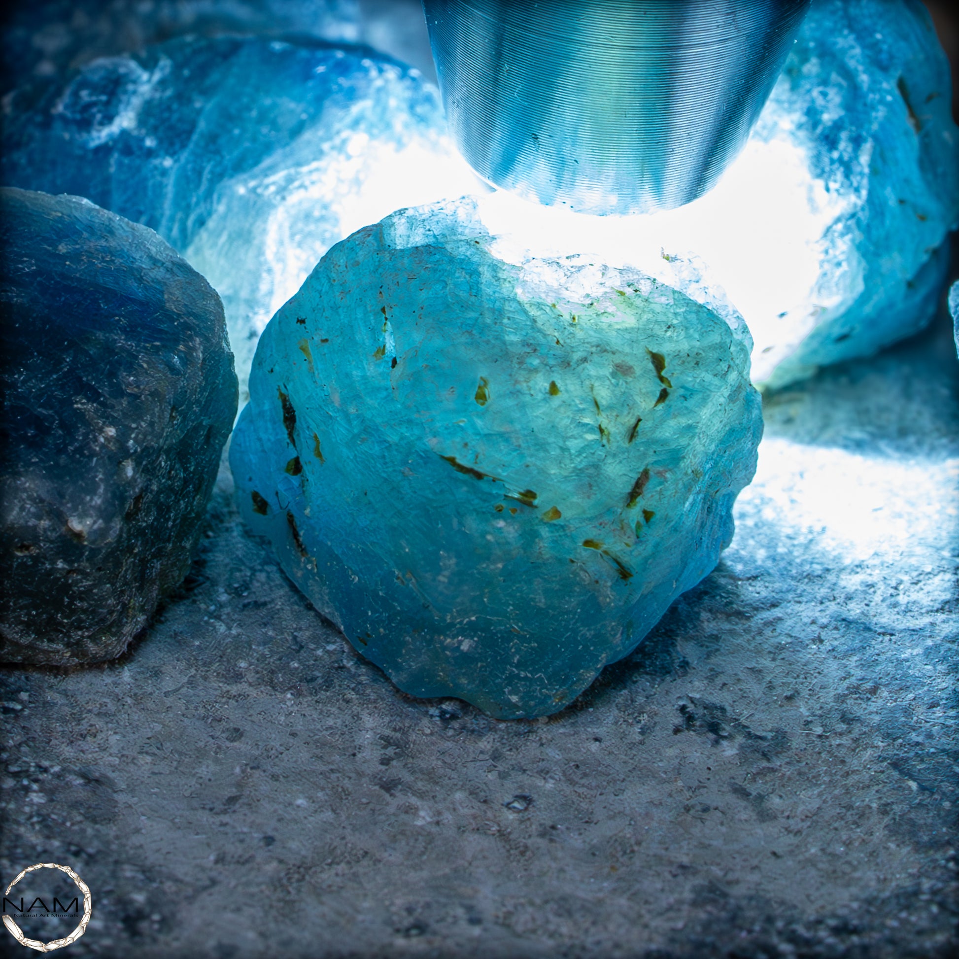 Die Oberfläche ist größtenteils naturbelassen, wodurch die rohe Ursprünglichkeit der Saphire erhalten bleibt. Kleine Strukturen und Einschlüsse verleihen jedem Stück eine individuelle Ausstrahlung und unterstreichen seine Einzigartigkeit.