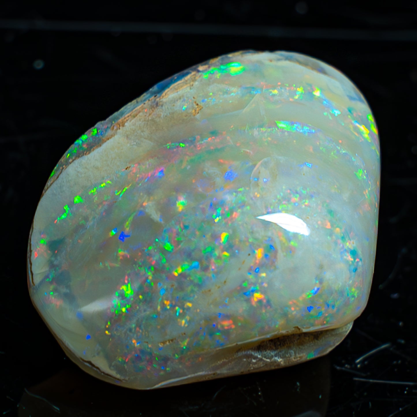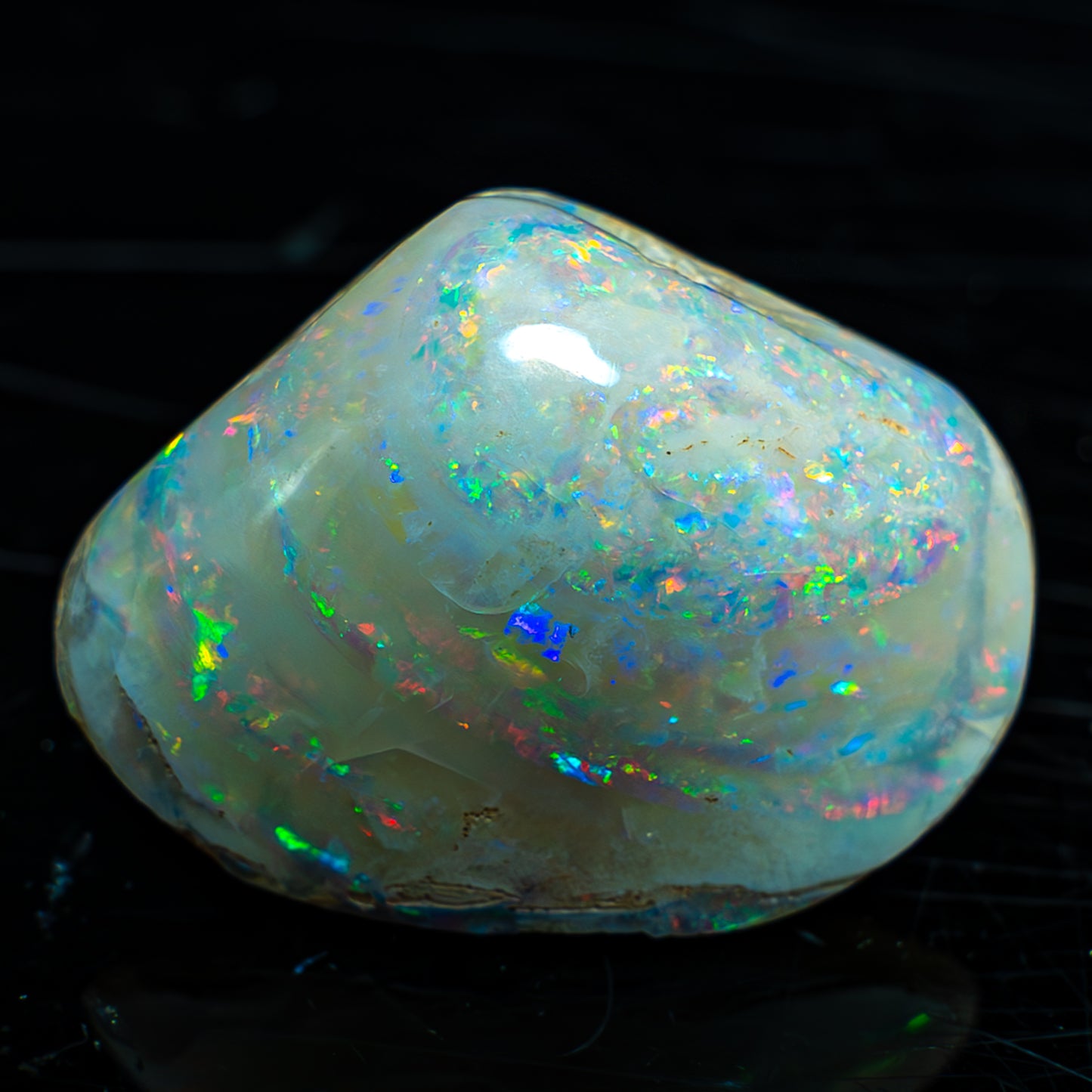 Dies ist eine fossile, vollständig erhaltene Muschel, welche komplett opalisiert wurde.