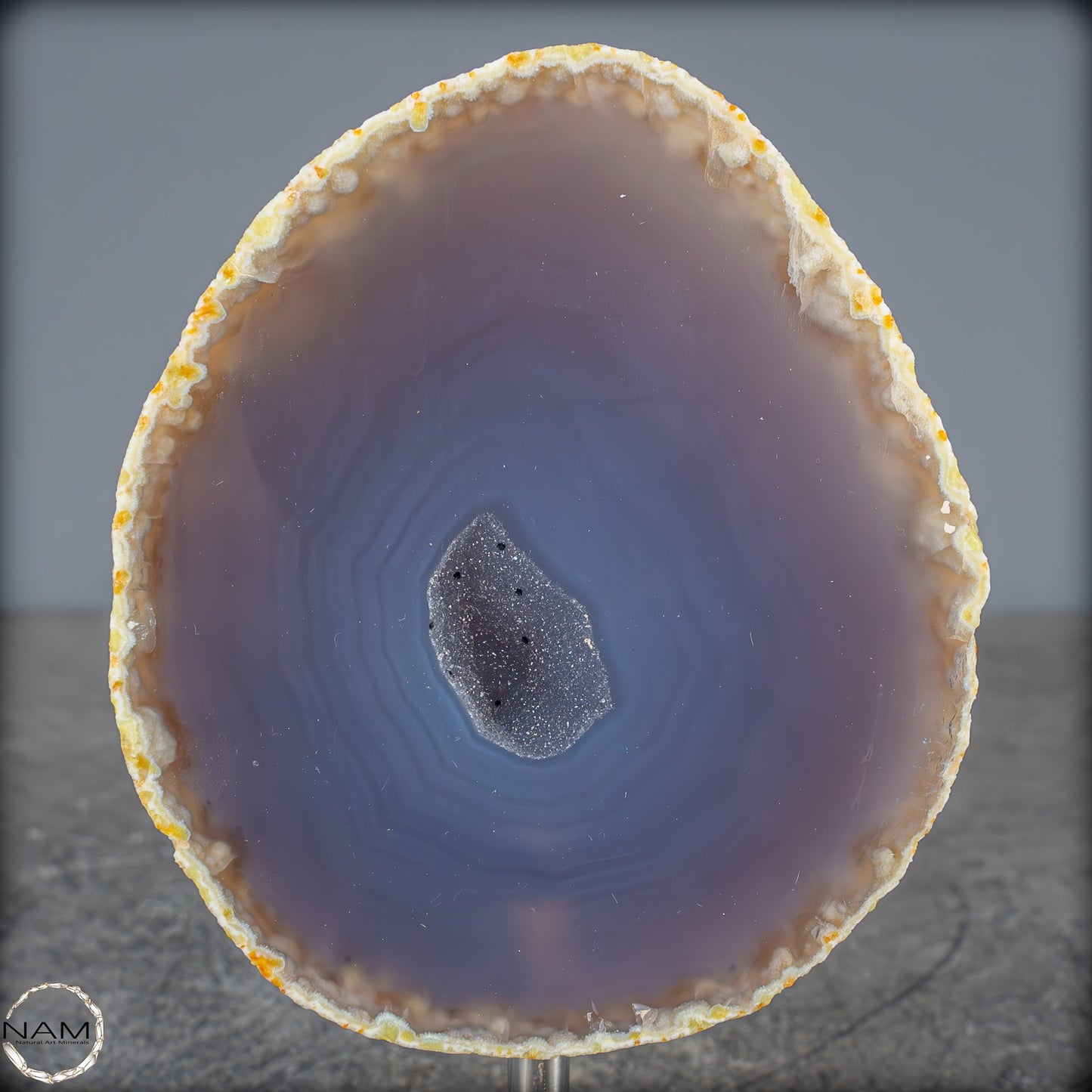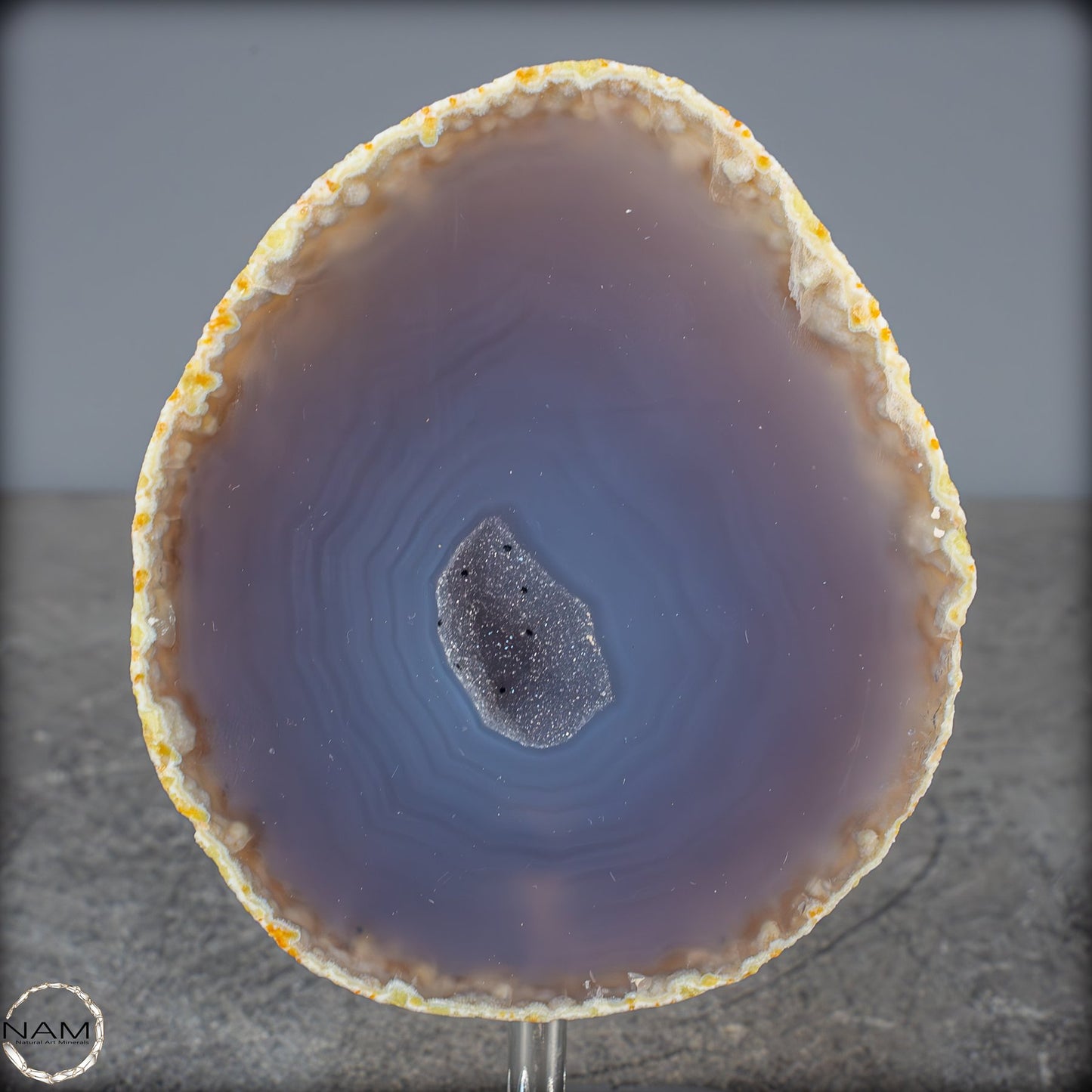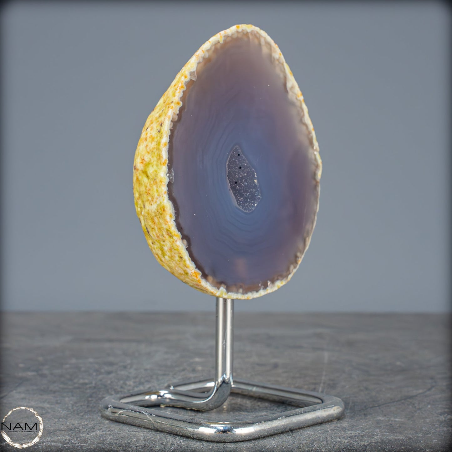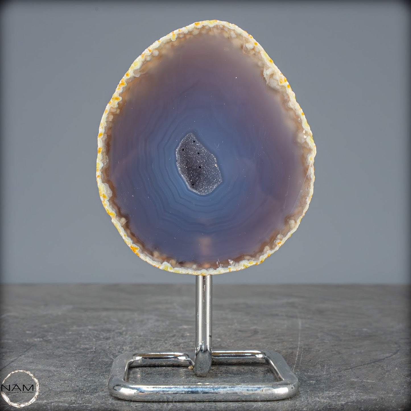 Natürliche Achat Druse mit Chalcedon auf Ständer, Brasilien - 424,14g