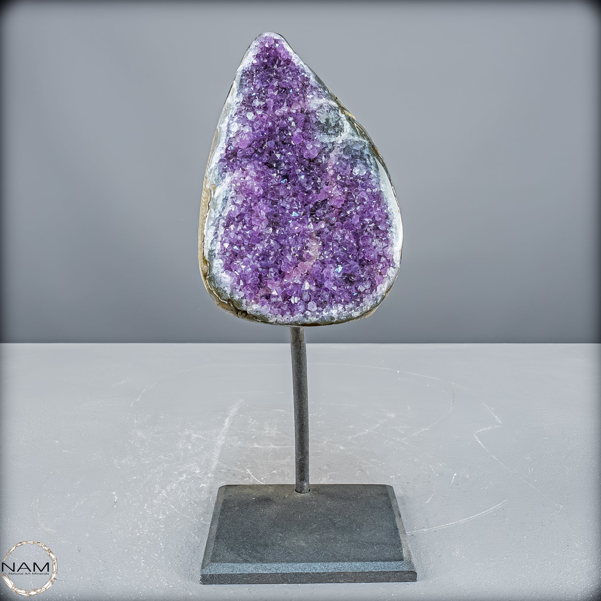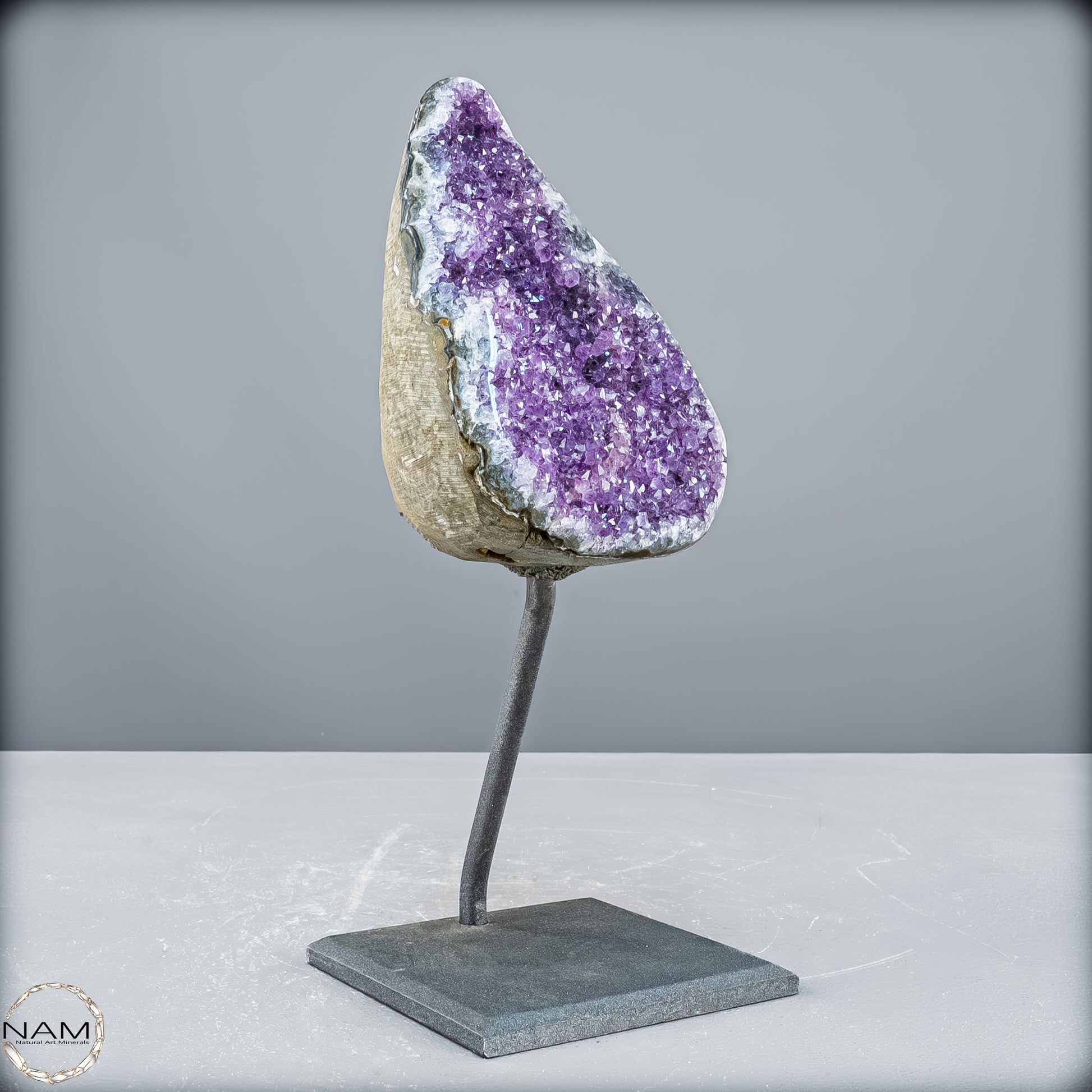 Amethyst gilt seit jeher als Stein der Klarheit und inneren Ruhe. In dieser Form vereint er natürliche Schönheit mit stilvoller Wirkung und macht ihn zu einem außergewöhnlichen Blickfang sowie zu einem seltenen Sammlerobjekt.