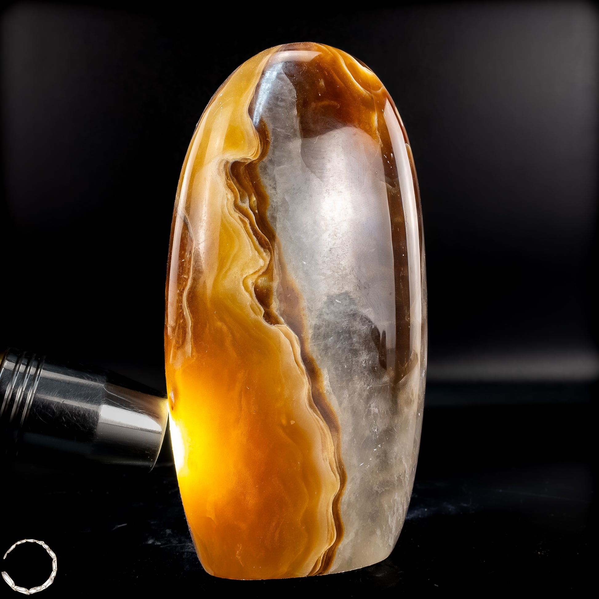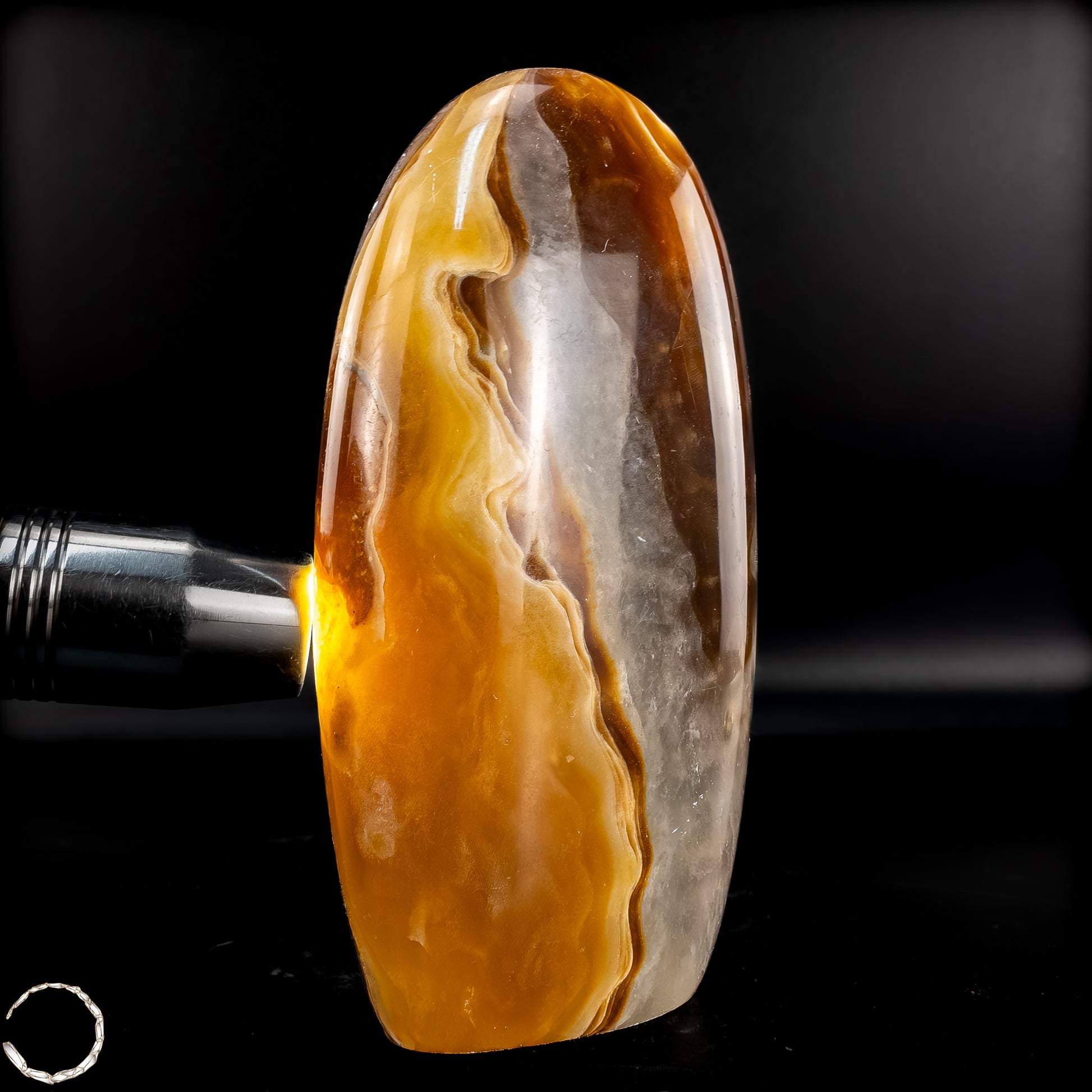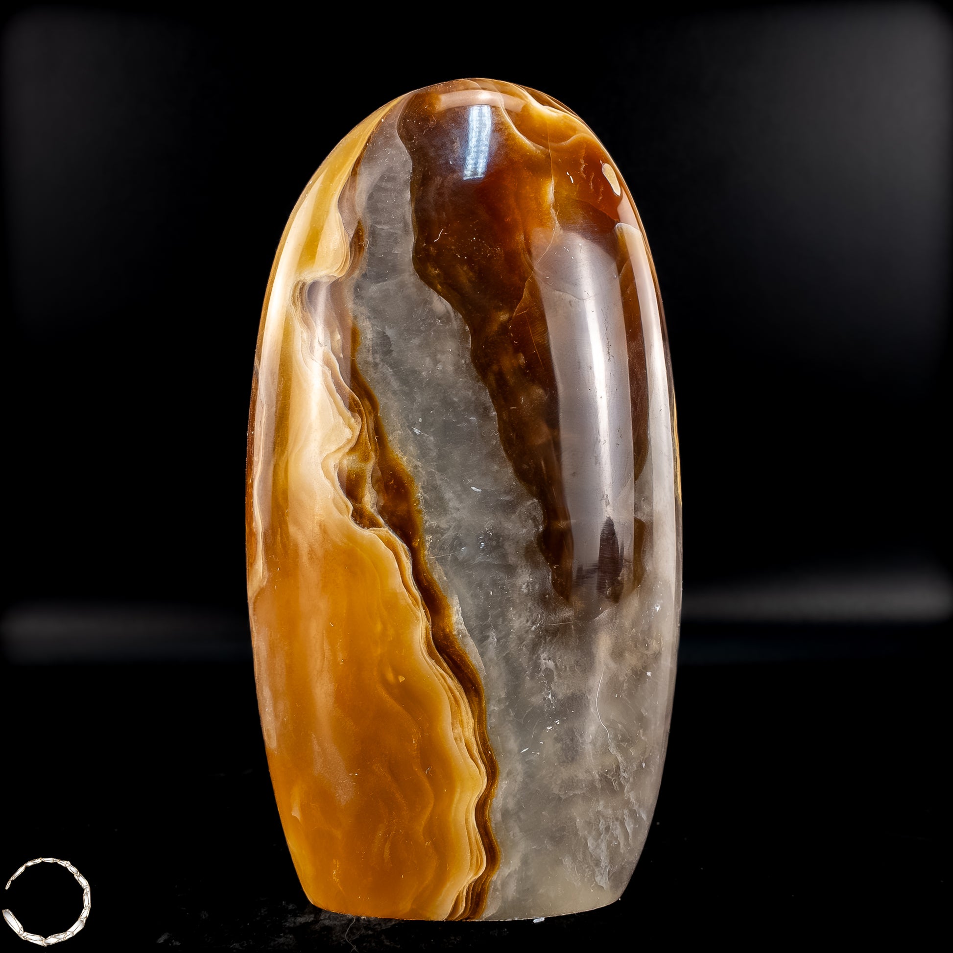 Diese beeindruckende Aragonit Freiform zeigt auf einzigartige Weise die Vielschichtigkeit und Tiefe der Natur. Mit ihren warmen Brauntönen, die von sanften Creme- und Weißschattierungen durchzogen sind, erinnert sie an die kraftvolle Energie der Erde selbst. Die fließenden Muster im Stein verleihen der Freiform eine besondere Dynamik, fast wie ein stillgelegter Fluss, der in Stein verewigt wurde.