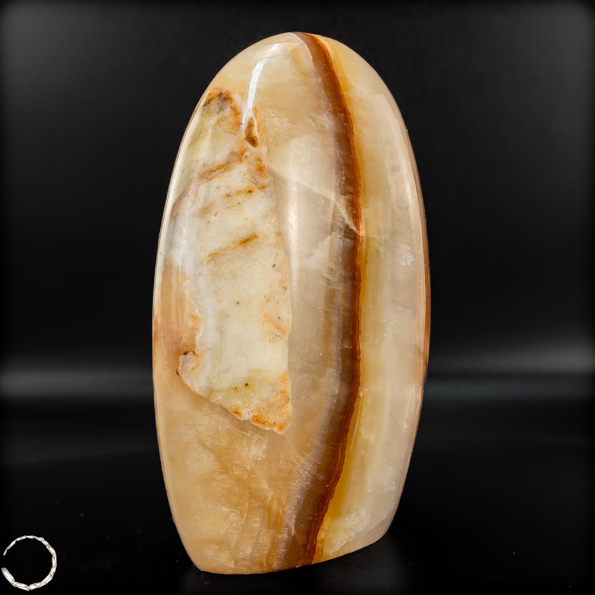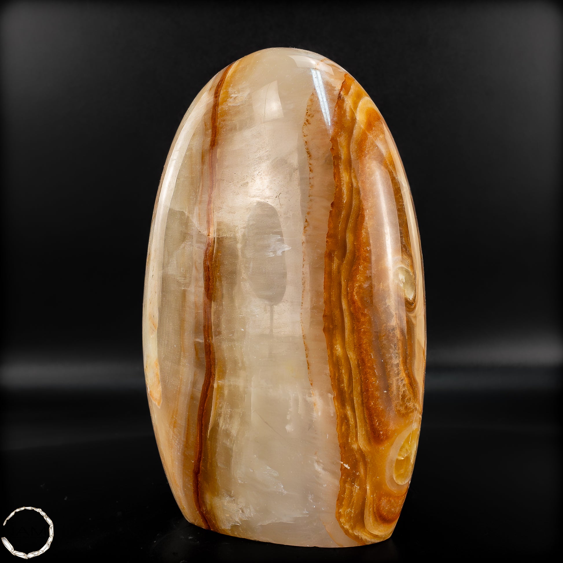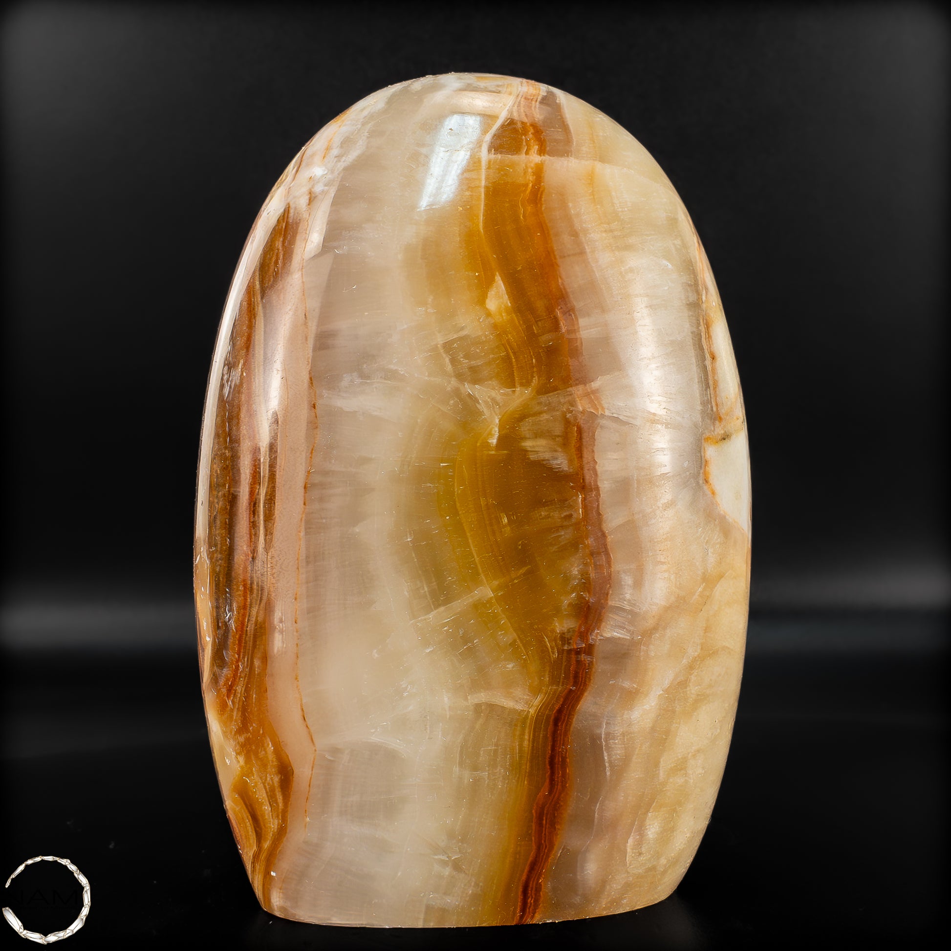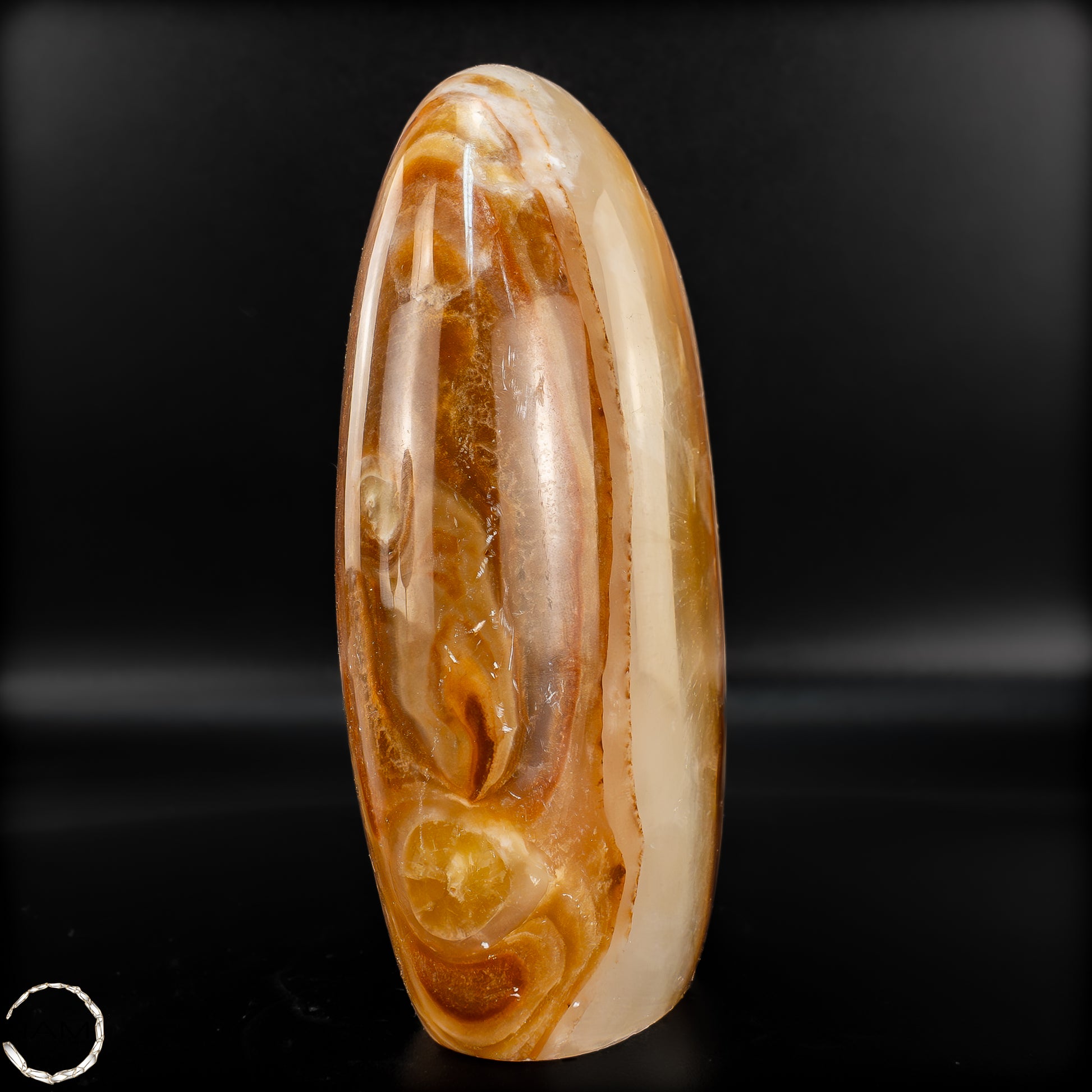 Diese beeindruckende Aragonit Freiform zeigt auf einzigartige Weise die Vielschichtigkeit und Tiefe der Natur. Mit ihren warmen Brauntönen, die von sanften Creme- und Weißschattierungen durchzogen sind, erinnert sie an die kraftvolle Energie der Erde selbst. Die fließenden Muster im Stein verleihen der Freiform eine besondere Dynamik, fast wie ein stillgelegter Fluss, der in Stein verewigt wurde.