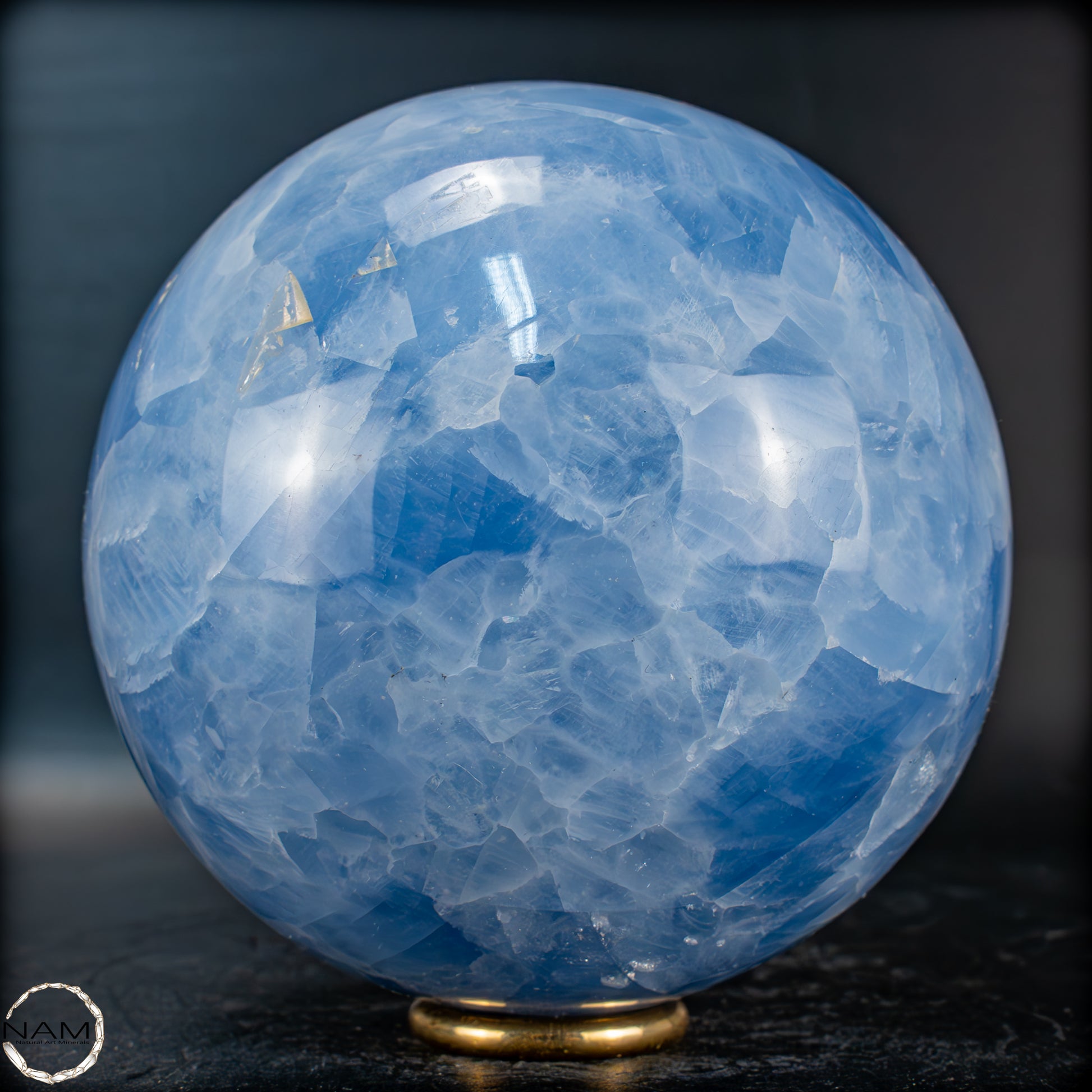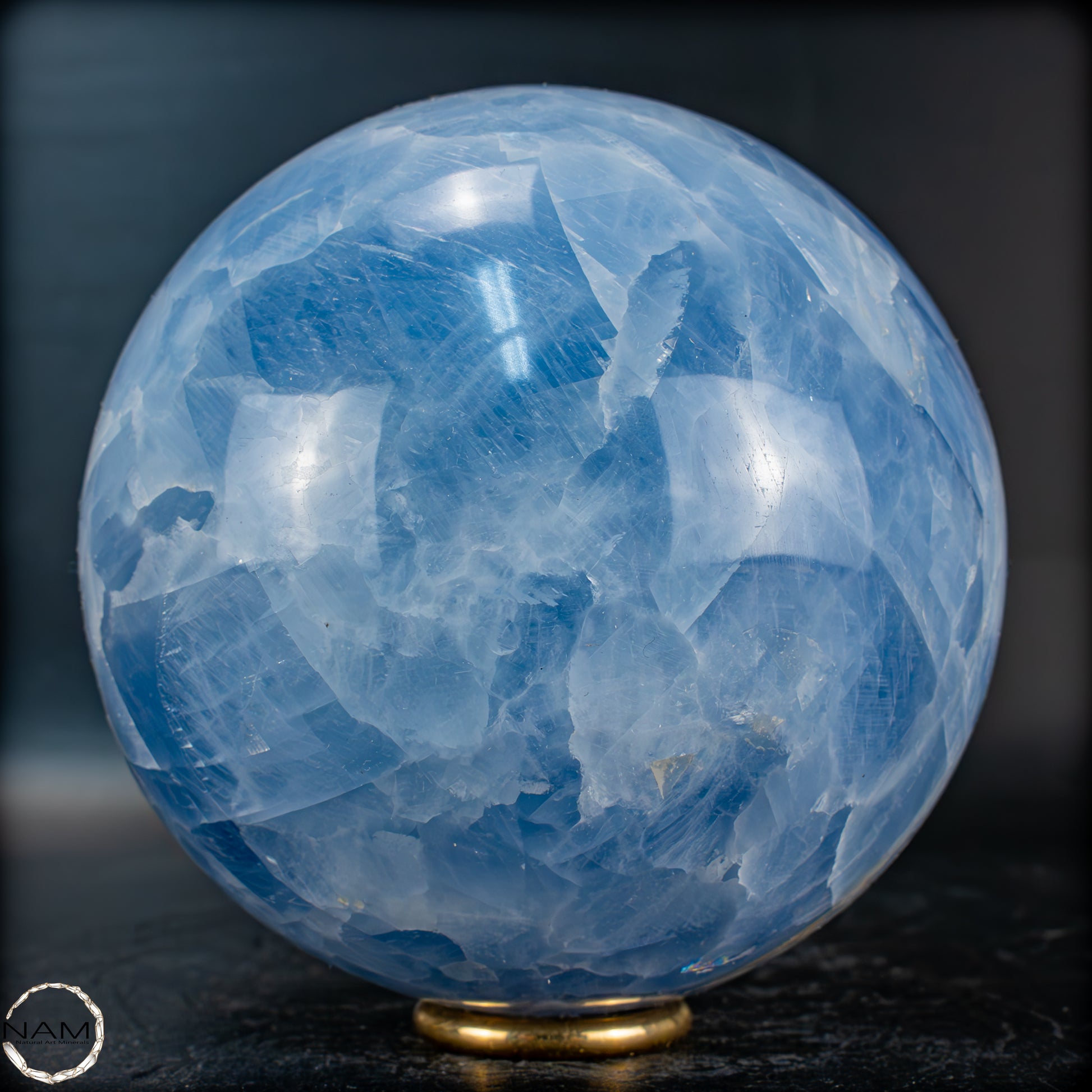 Blauer Calcit ist ein faszinierender Edelstein, der durch seine zarten bis intensiven Blautöne und seine glasig-seidige Oberfläche besticht. Die kugelförmige Ausarbeitung, wie auf dem Bild zu sehen, bringt die kristalline Struktur und die lichtdurchlässigen Schichten besonders gut zur Geltung. Die Wirkung dieses Steins ist ebenso sanft und beruhigend wie sein Aussehen – er ist ein Symbol für Klarheit, Kommunikation und seelische Entspannung.