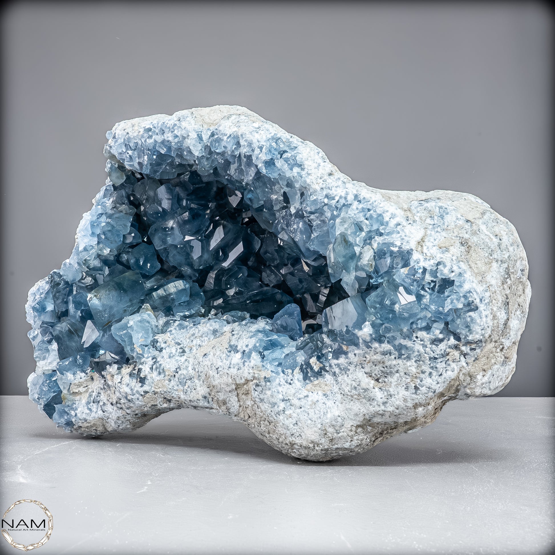Celestite, auch bekannt als Celestine, ist ein wunderschöner himmelblauer Edelstein, der mit kraftvollen therapeutischen Schwingungen summt. Es kommt auf der ganzen Welt auf natürliche Weise vor und bietet Therapeuten und Meditierenden seit Jahrtausenden himmlische Schönheit. Der Stein hat eine Vielzahl mächtiger ätherischer Qualitäten, die es Ihnen ermöglichen, mit fernen Welten zu kommunizieren. Es ist bekannt für seinen zarten Farbton und seinen auffälligen Glanz.