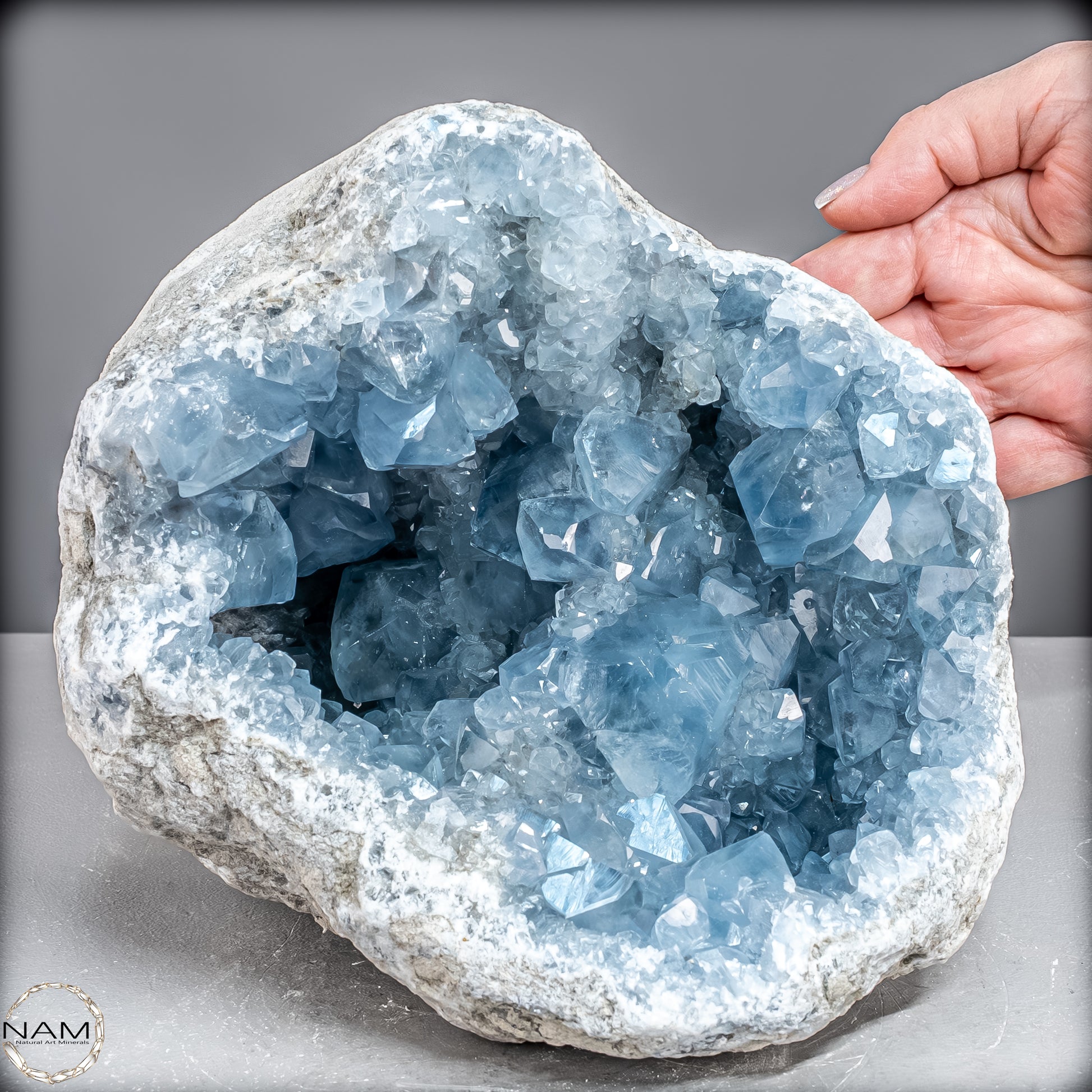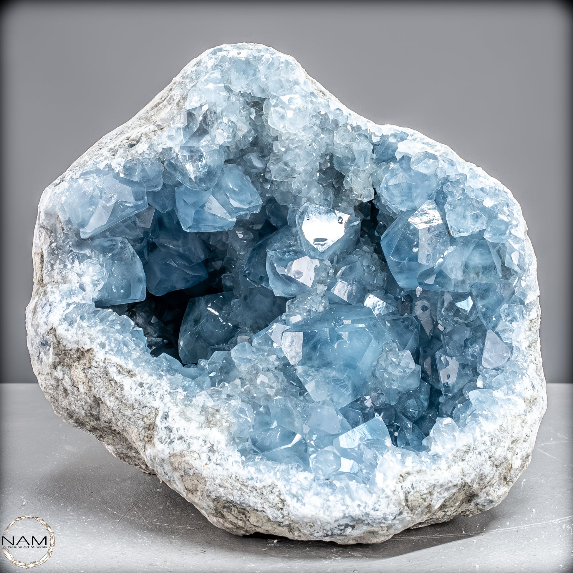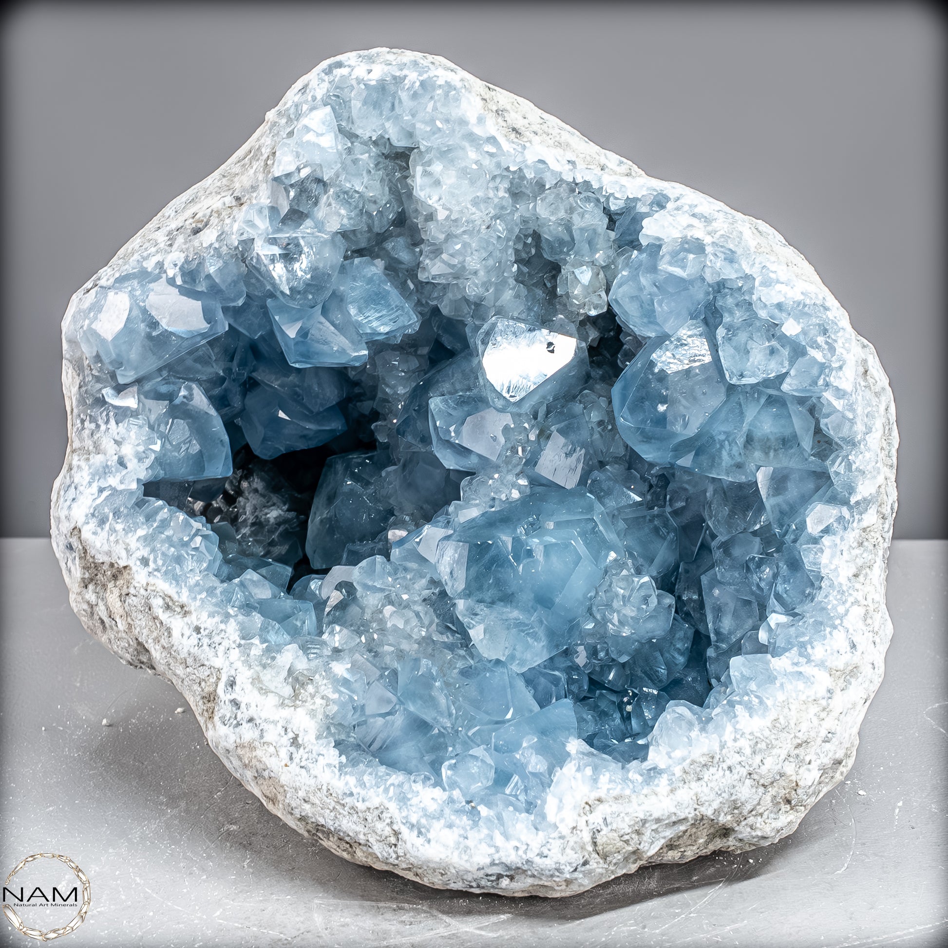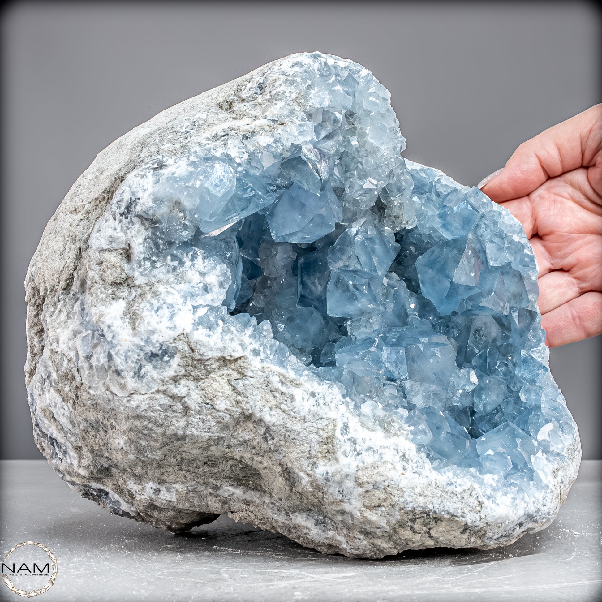 Celestite, auch bekannt als Celestine, ist ein wunderschöner himmelblauer Edelstein, der mit kraftvollen therapeutischen Schwingungen summt. Es kommt auf der ganzen Welt auf natürliche Weise vor und bietet Therapeuten und Meditierenden seit Jahrtausenden himmlische Schönheit. Der Stein hat eine Vielzahl mächtiger ätherischer Qualitäten, die es Ihnen ermöglichen, mit fernen Welten zu kommunizieren. Es ist bekannt für seinen zarten Farbton und seinen auffälligen Glanz.