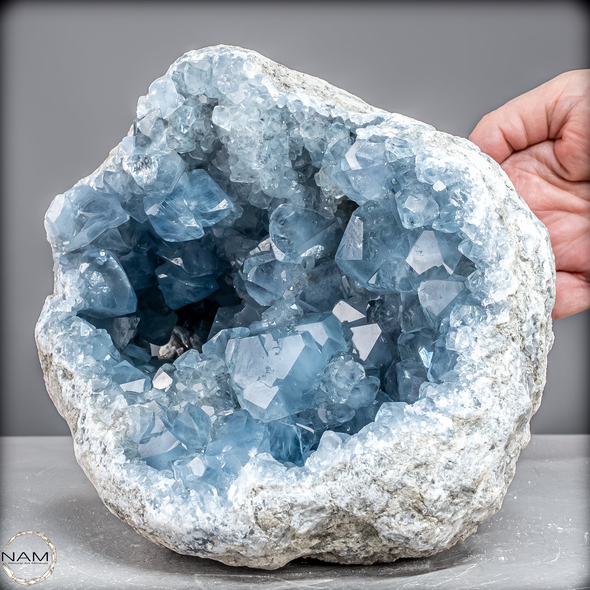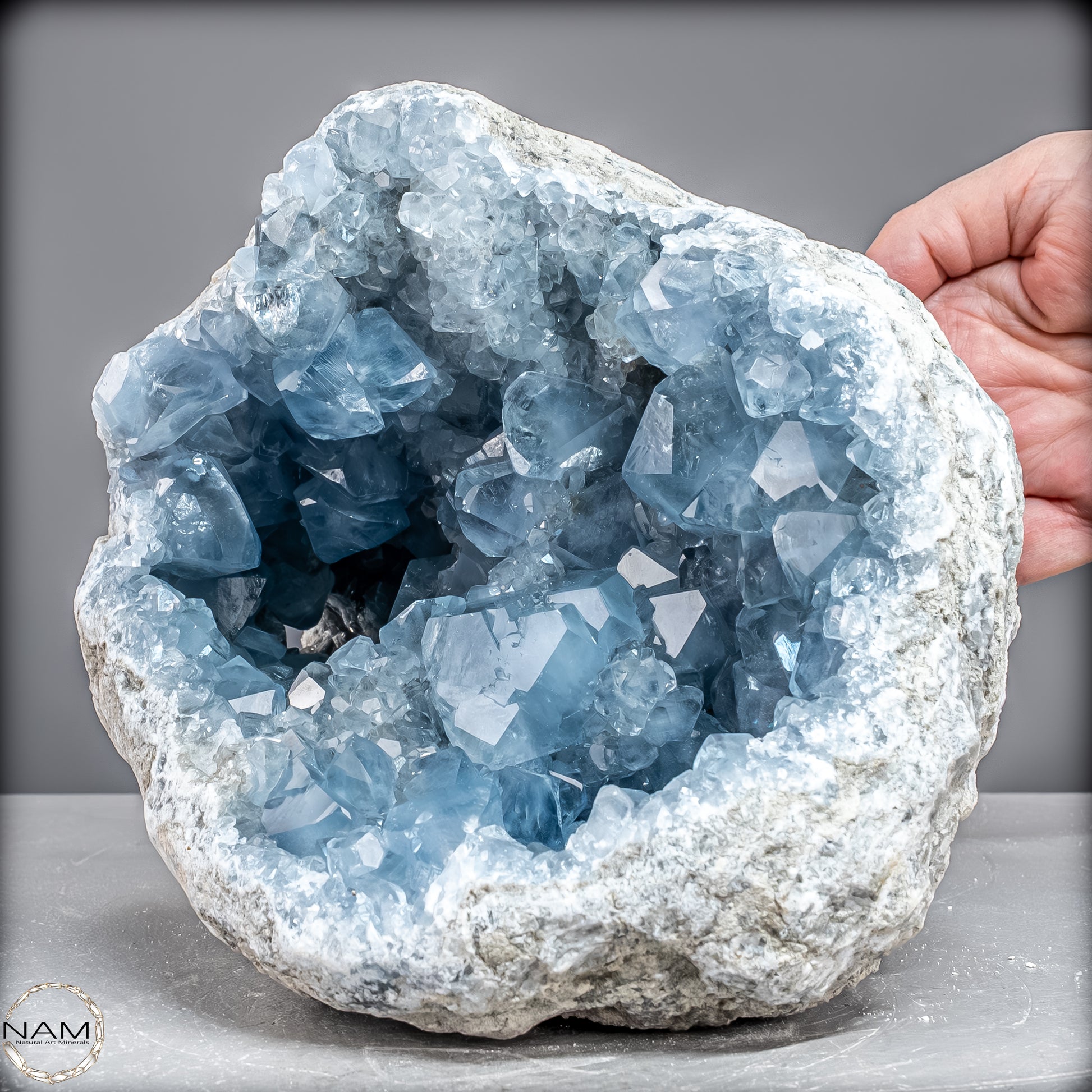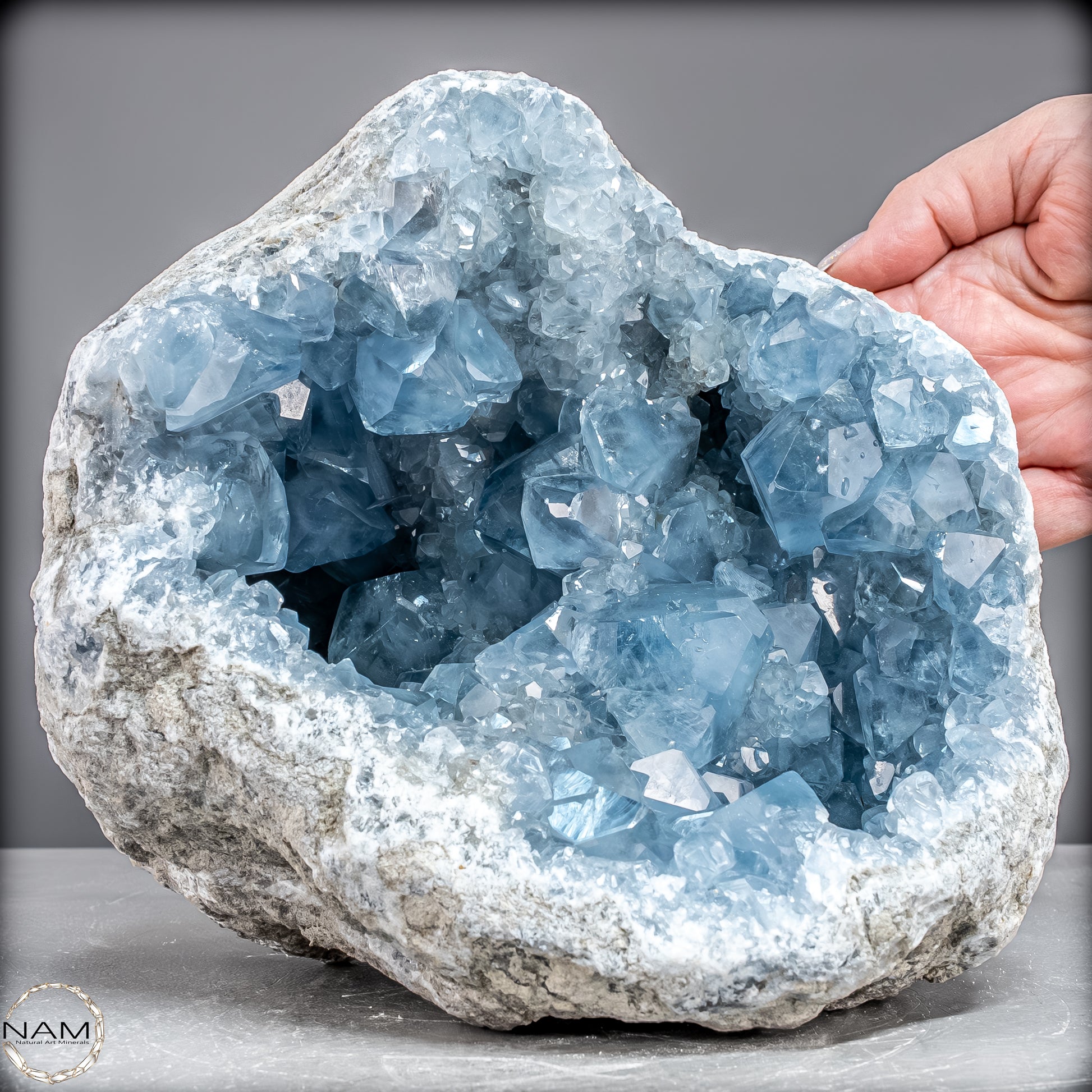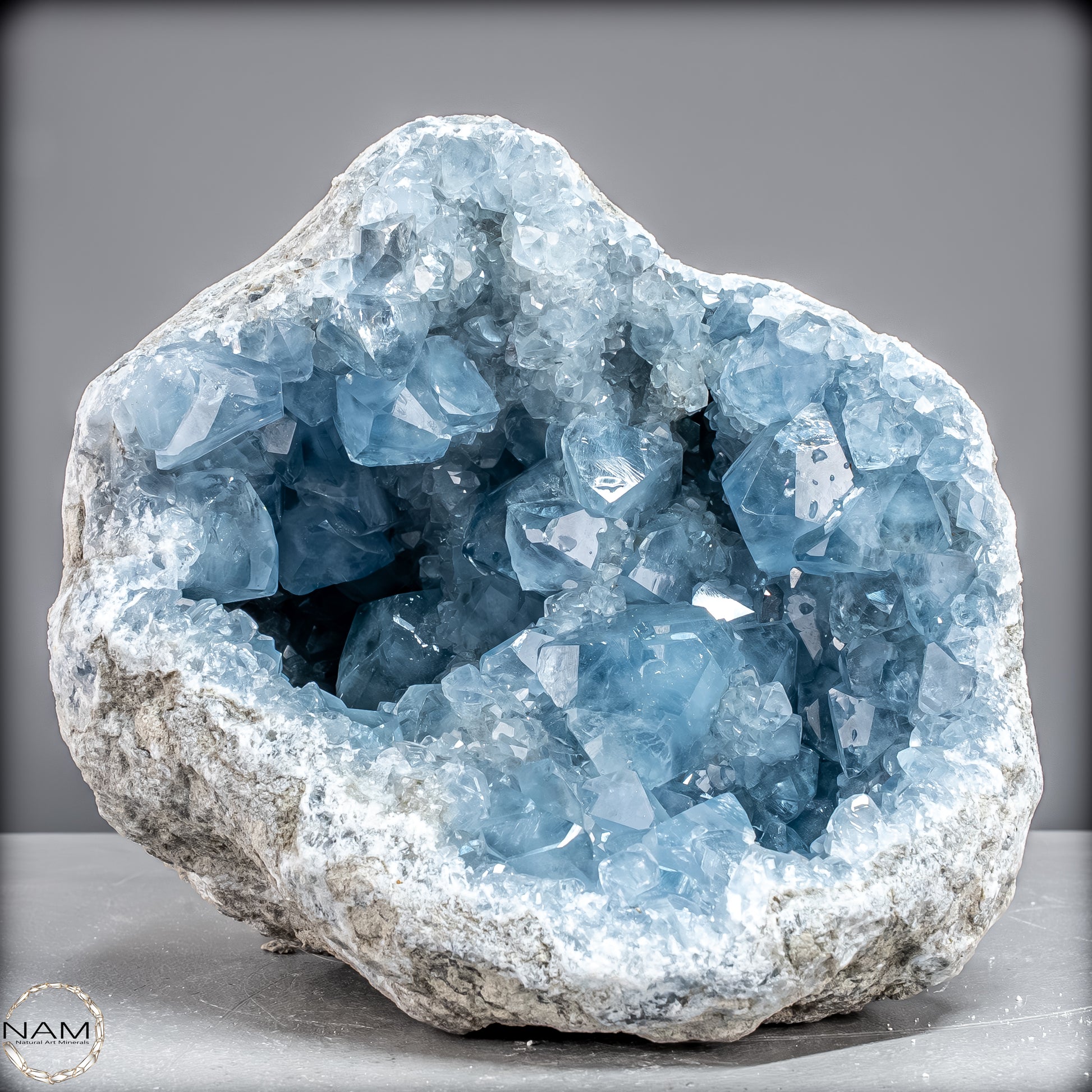 Celestite, auch bekannt als Celestine, ist ein wunderschöner himmelblauer Edelstein, der mit kraftvollen therapeutischen Schwingungen summt. Es kommt auf der ganzen Welt auf natürliche Weise vor und bietet Therapeuten und Meditierenden seit Jahrtausenden himmlische Schönheit. Der Stein hat eine Vielzahl mächtiger ätherischer Qualitäten, die es Ihnen ermöglichen, mit fernen Welten zu kommunizieren. Es ist bekannt für seinen zarten Farbton und seinen auffälligen Glanz.