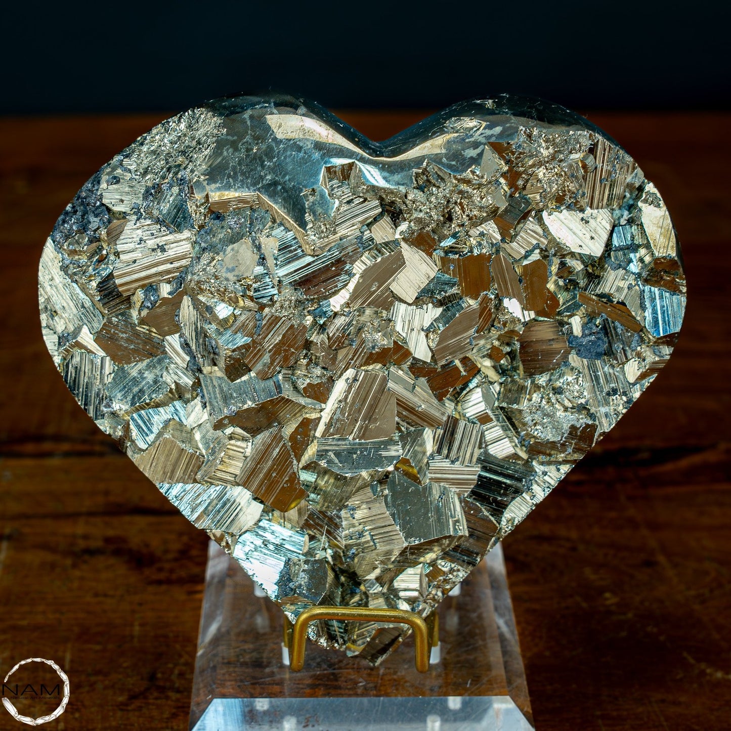 Als Symbol für Liebe und Beständigkeit verbindet dieses Herz die metaphysische Bedeutung von Pyrit – Schutz und Stärke – mit seiner atemberaubenden Ästhetik. Ein wahrhaft einzigartiges Stück, das die Schönheit der Natur in vollendeter Perfektion widerspiegelt.