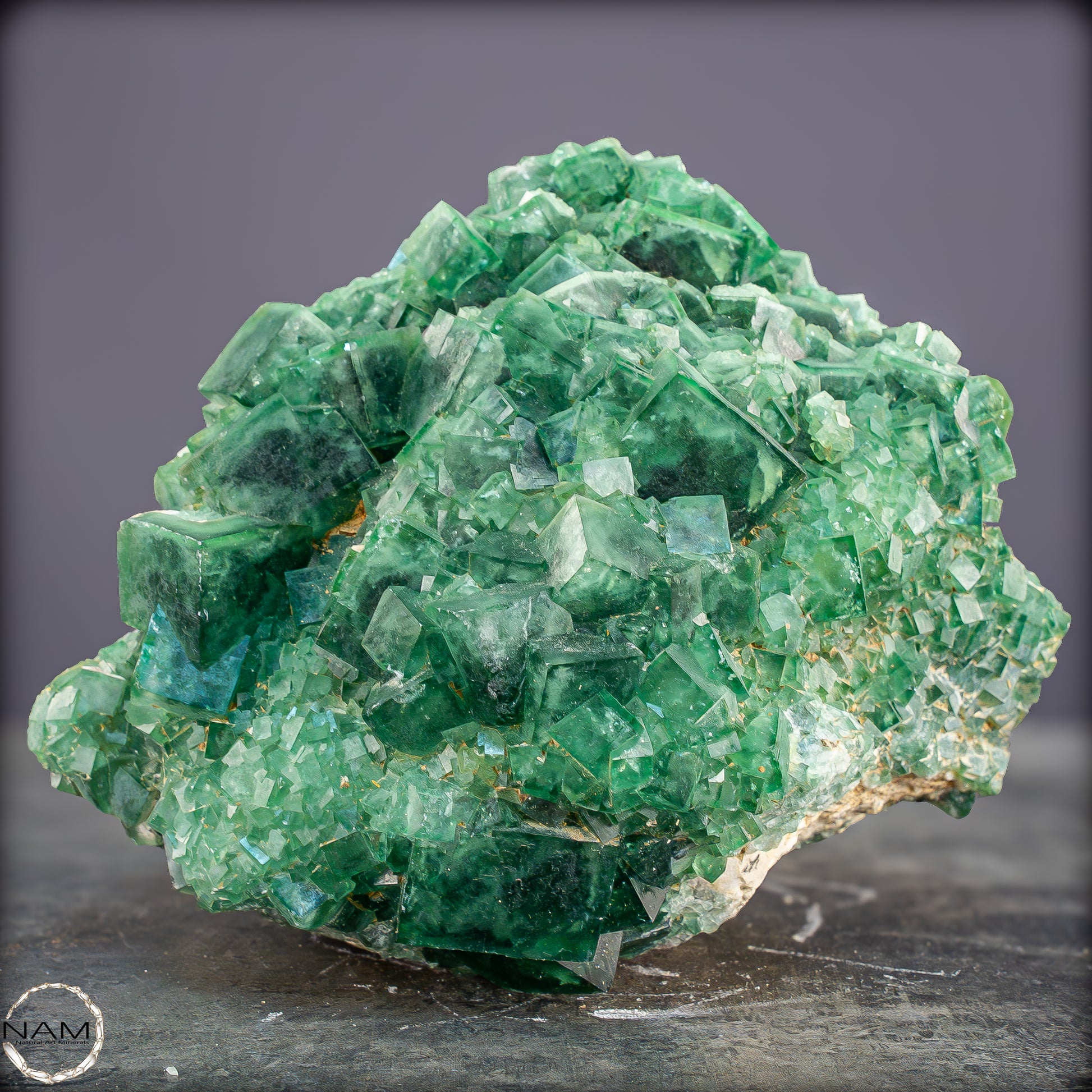 Fluorit mit so dicht stehenden, klar ausgebildeten Würfelkristallen und gleichzeitig kräftiger grüner Farbe gehört zu den besonders geschätzten Erscheinungsformen dieses Minerals und wirkt sowohl in einer Mineraliensammlung als auch als dekoratives Naturkunstwerk außergewöhnlich eindrucksvoll.