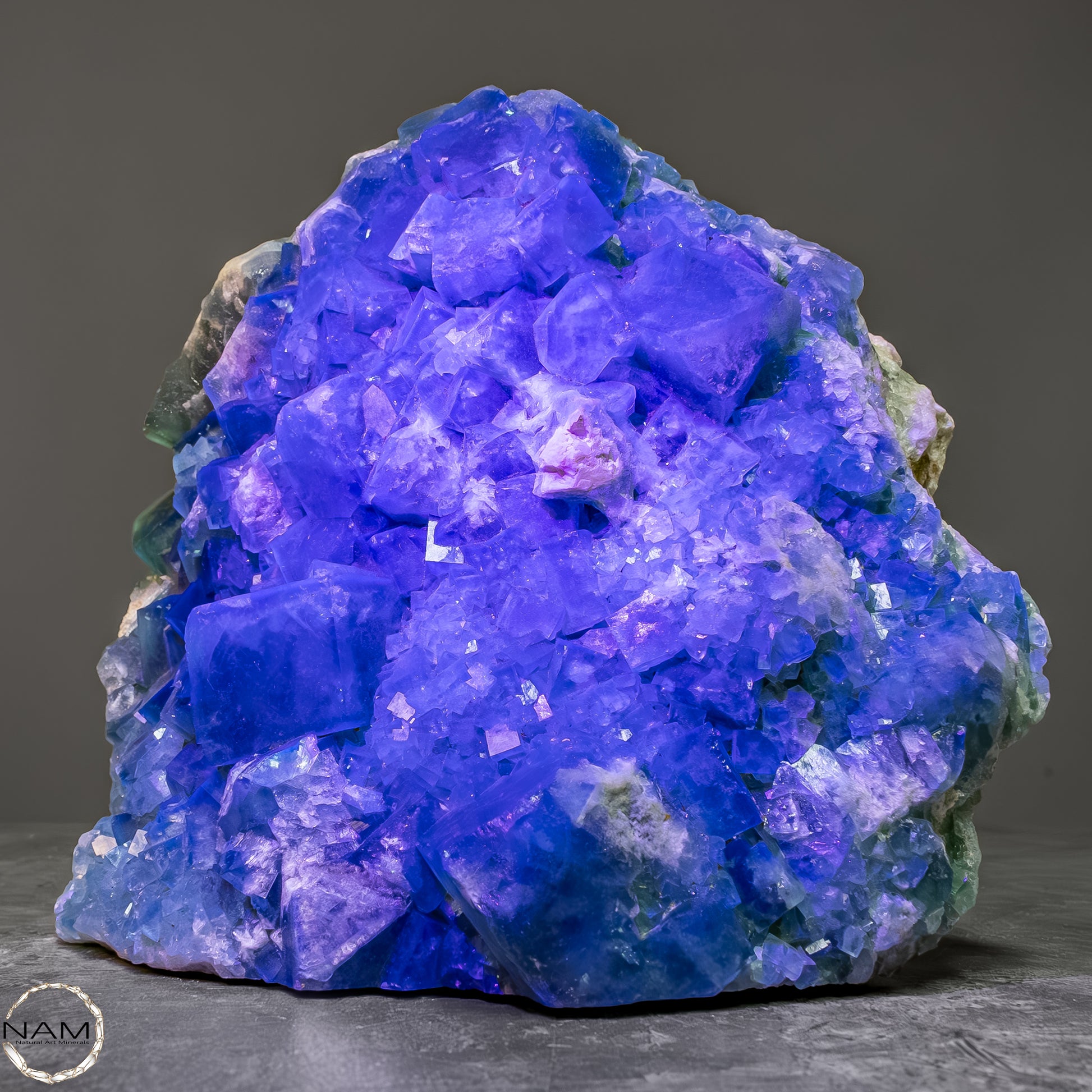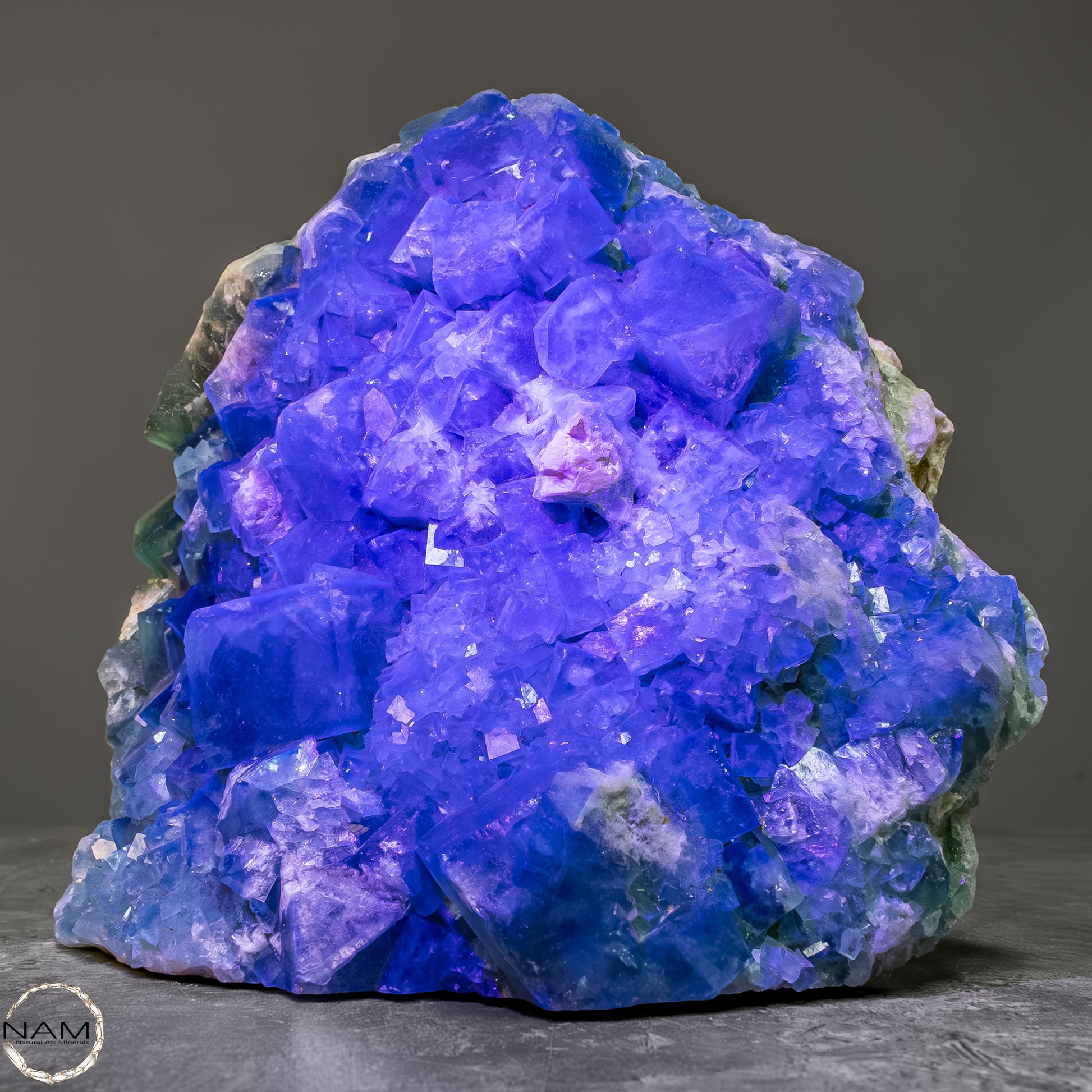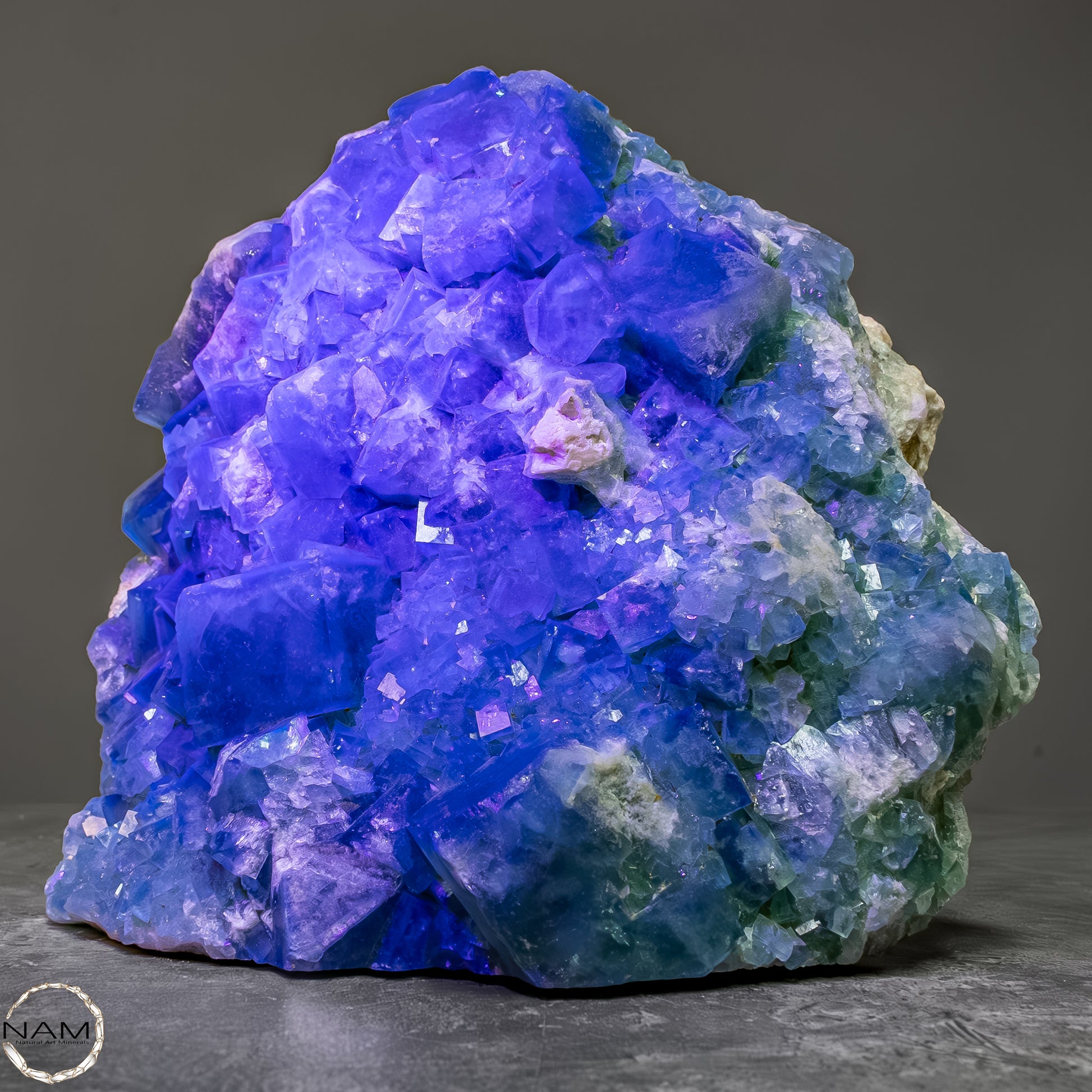 Dieses beeindruckende Stück zeigt einen seltenen "Sugarcube"-Fluorit auf Matrix. Die würfelförmigen Fluoritkristalle mit ihrer zarten, zuckerartigen Struktur sind in einem bezaubernden Grün gehalten und scheinen auf der Matrix zu schweben. Die Matrix selbst bietet einen spannenden Kontrast, der die kristallinen Details noch hervorhebt. Ein außergewöhnliches Sammlerstück, das die Vielfalt und Schönheit der Mineralienwelt perfekt repräsentiert.