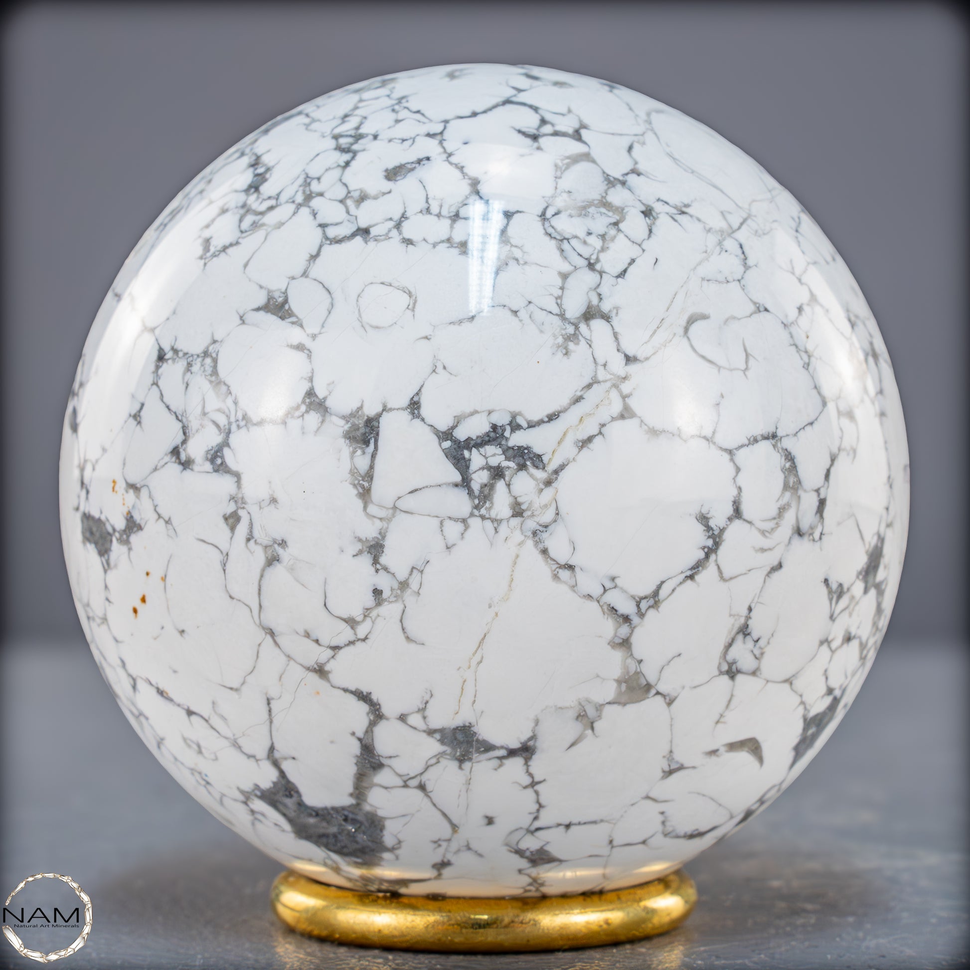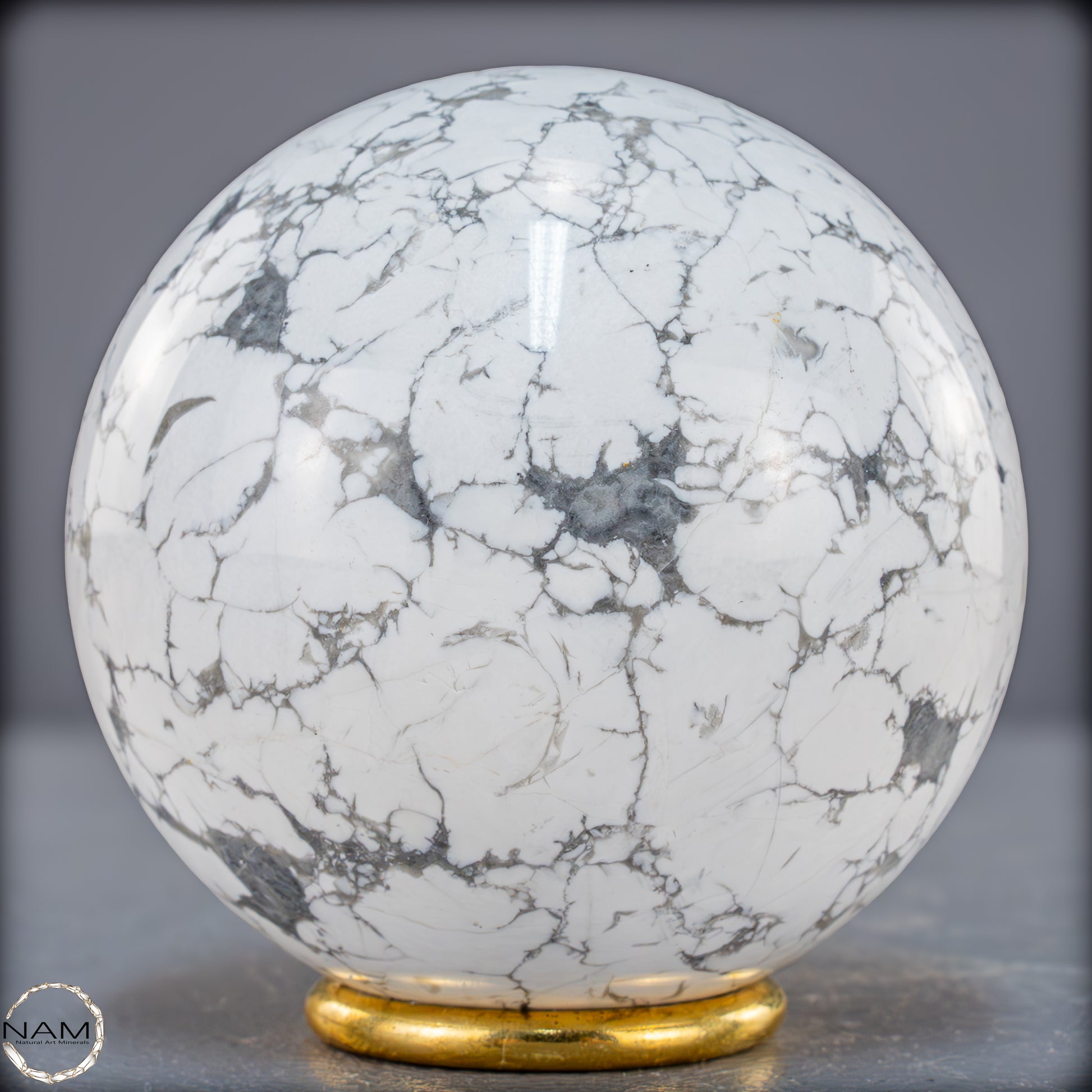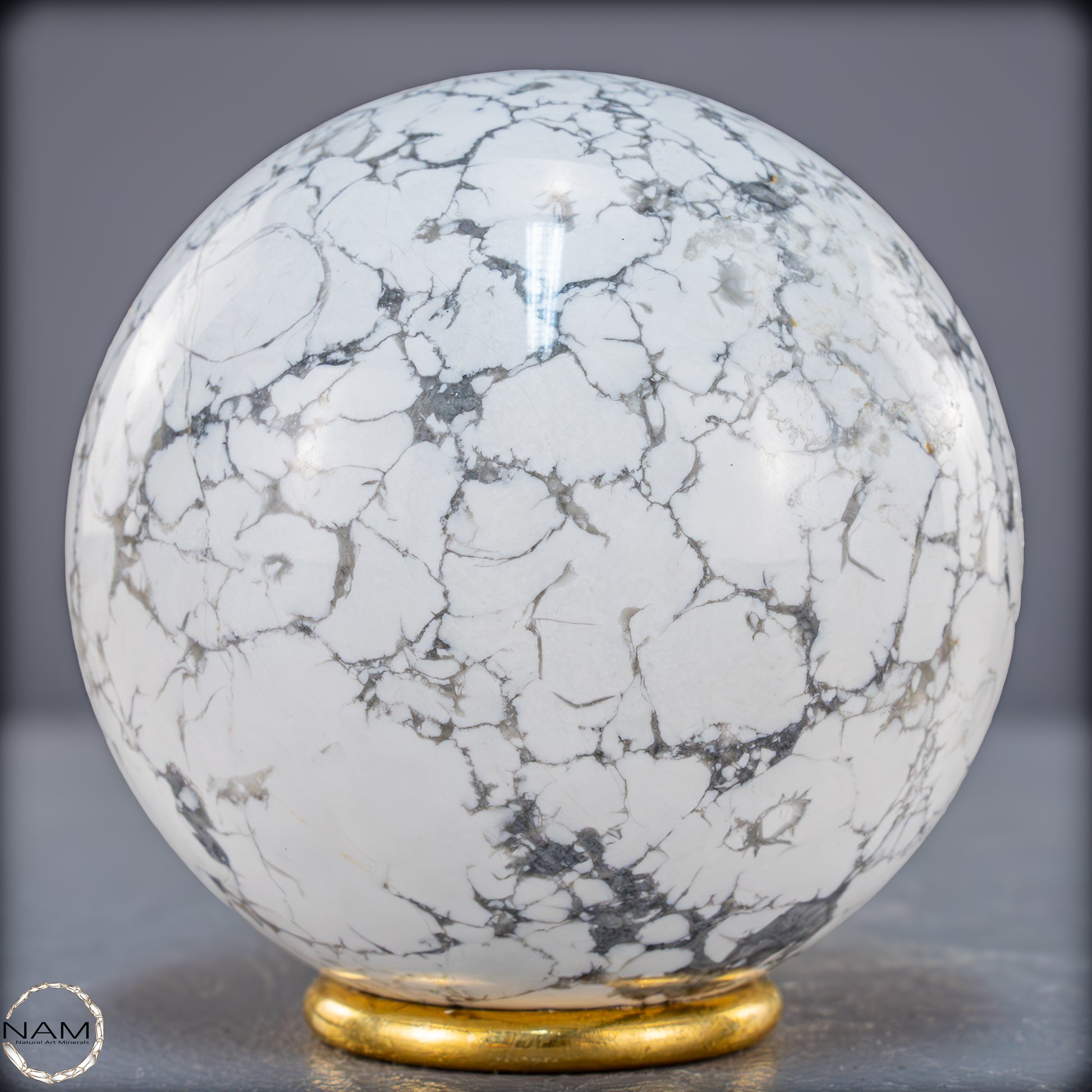 Howlit ist bekannt für seine beruhigende Ausstrahlung und wird wegen seiner klaren, puristischen Ästhetik geschätzt. In dieser perfekt polierten Kugelform entfaltet er eine zeitlose Eleganz, die sowohl in modernen als auch in naturverbundenen Sammlungen ein Highlight setzt.