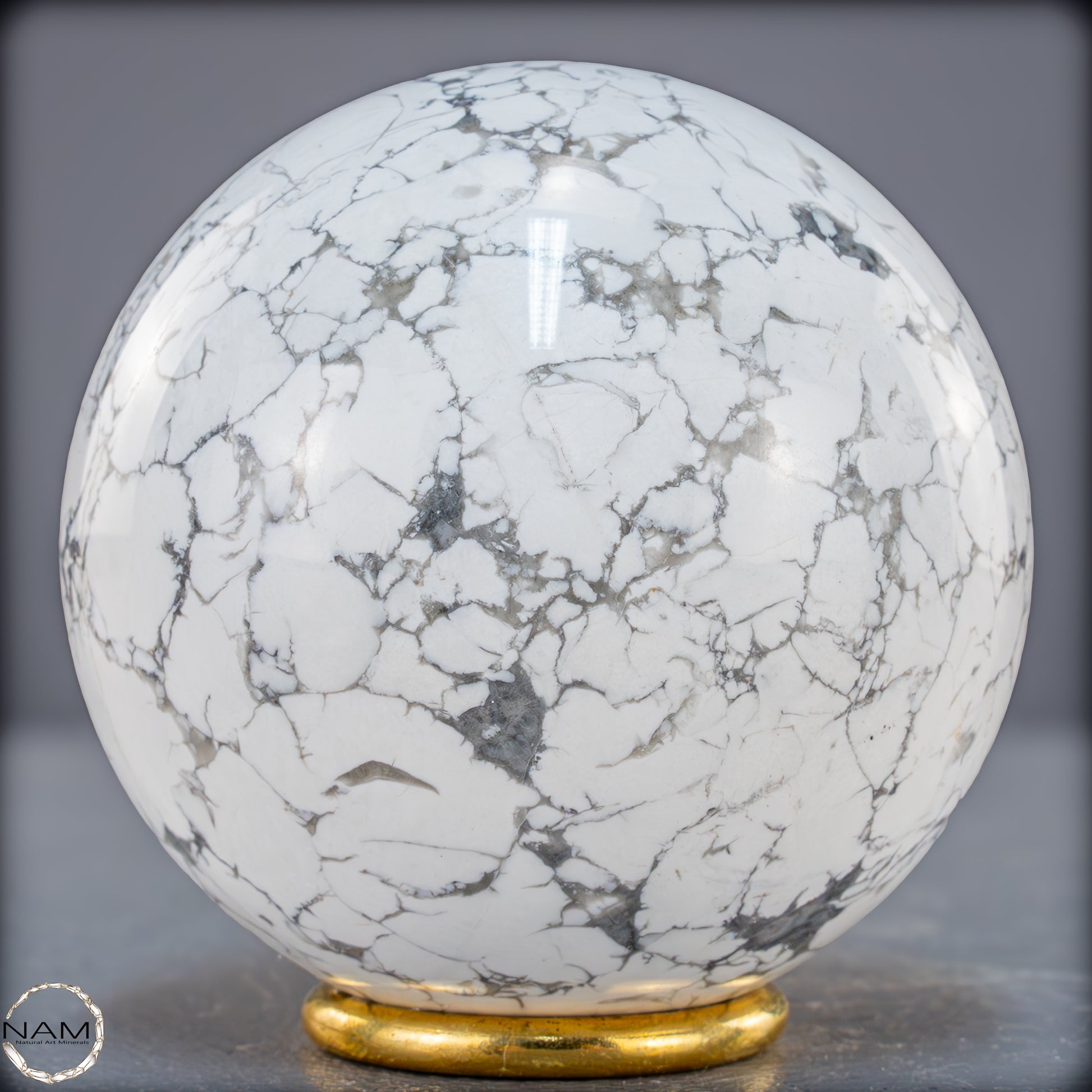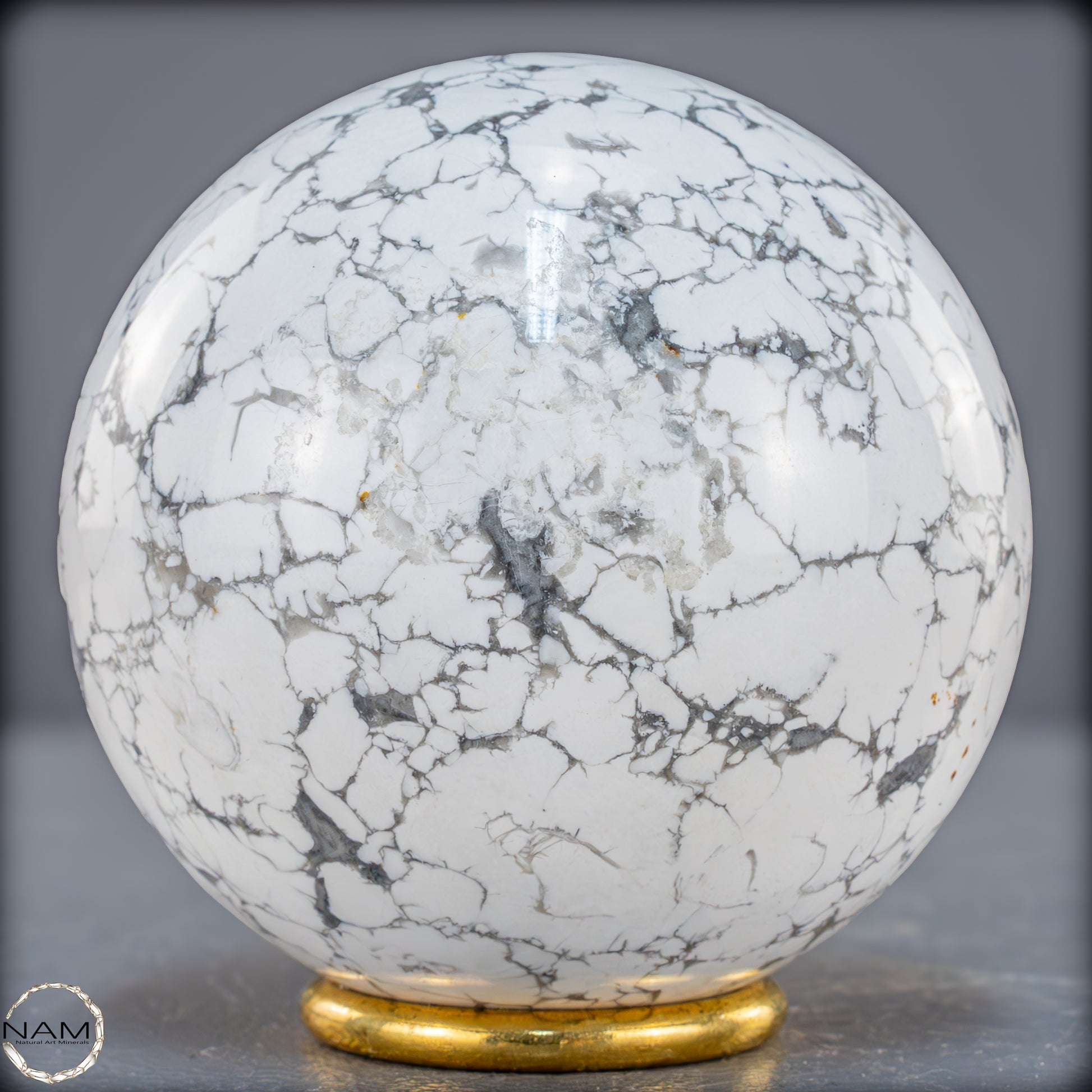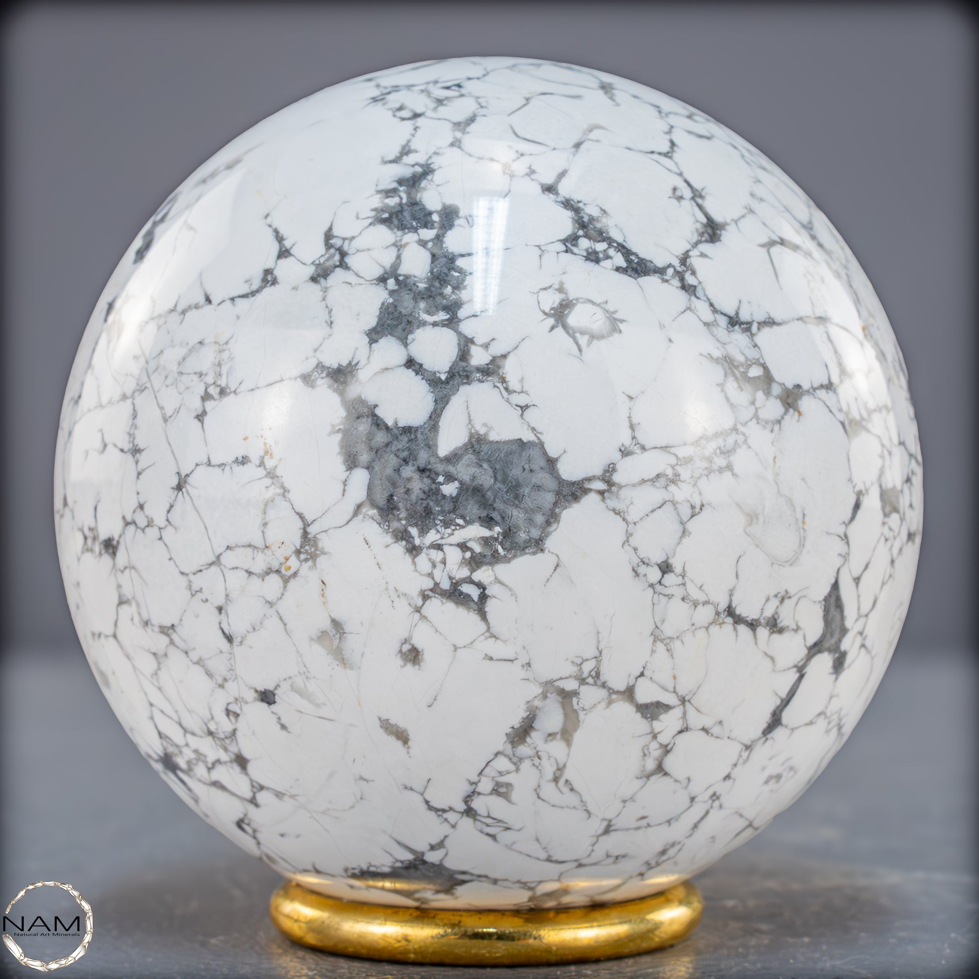 Howlit ist bekannt für seine beruhigende Ausstrahlung und wird wegen seiner klaren, puristischen Ästhetik geschätzt. In dieser perfekt polierten Kugelform entfaltet er eine zeitlose Eleganz, die sowohl in modernen als auch in naturverbundenen Sammlungen ein Highlight setzt.