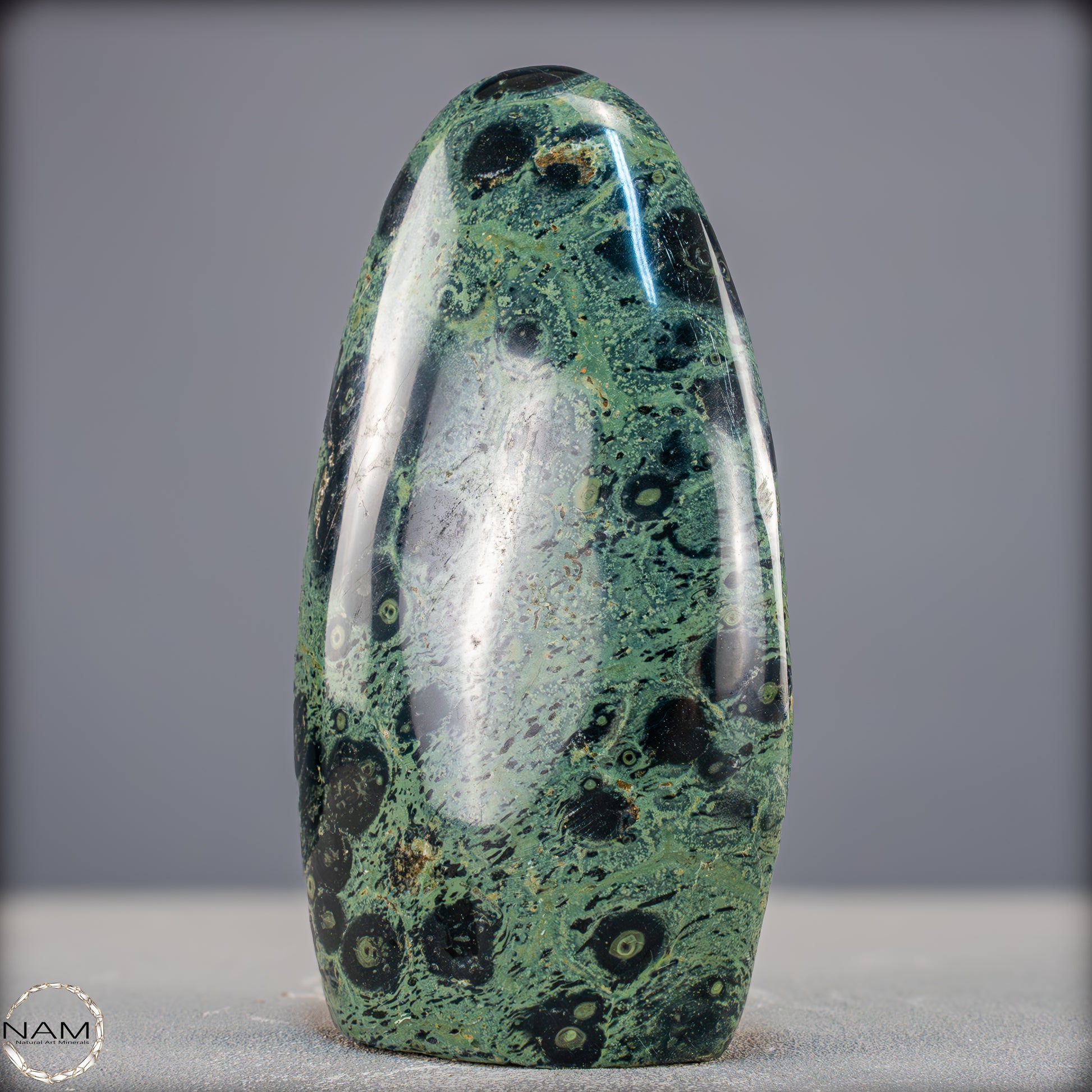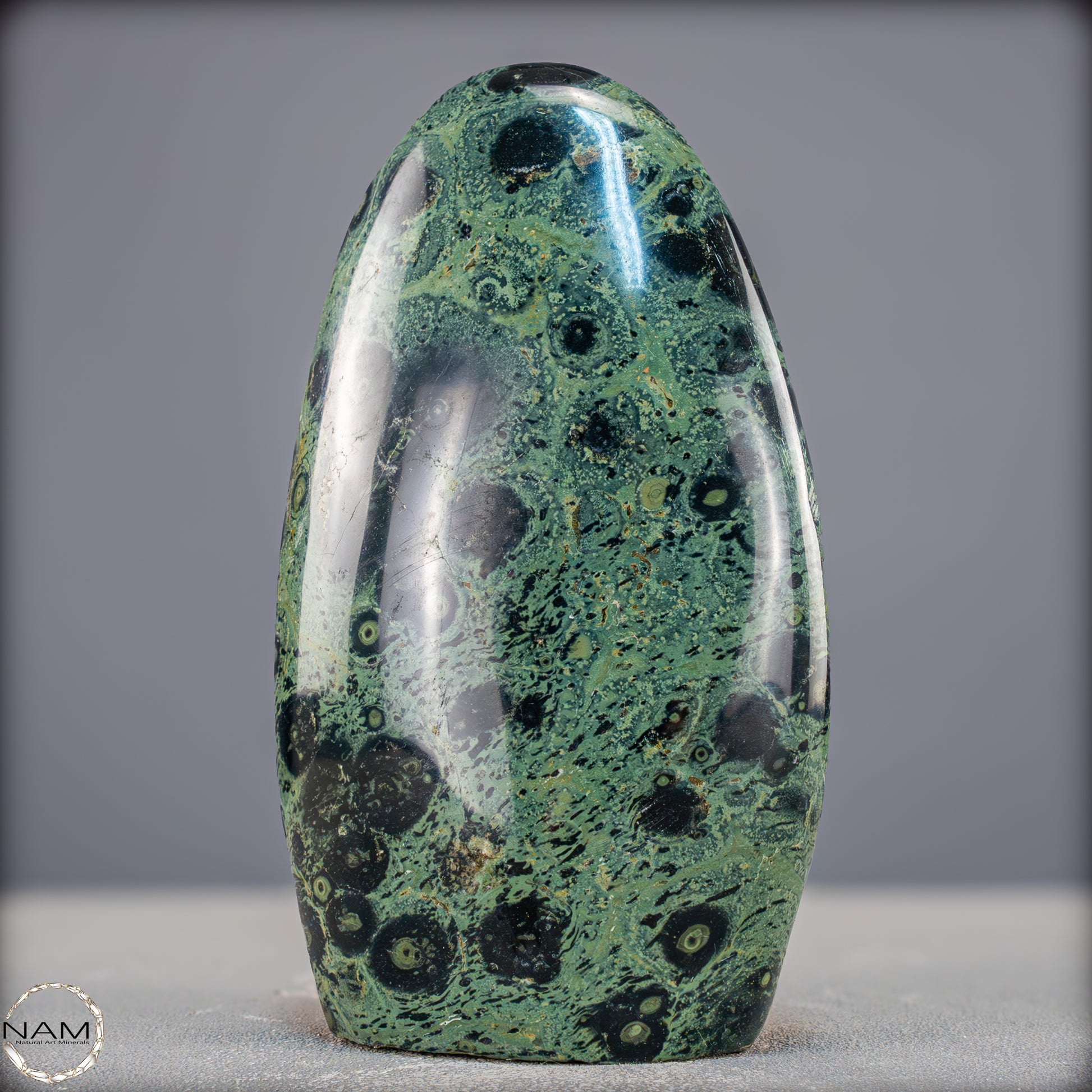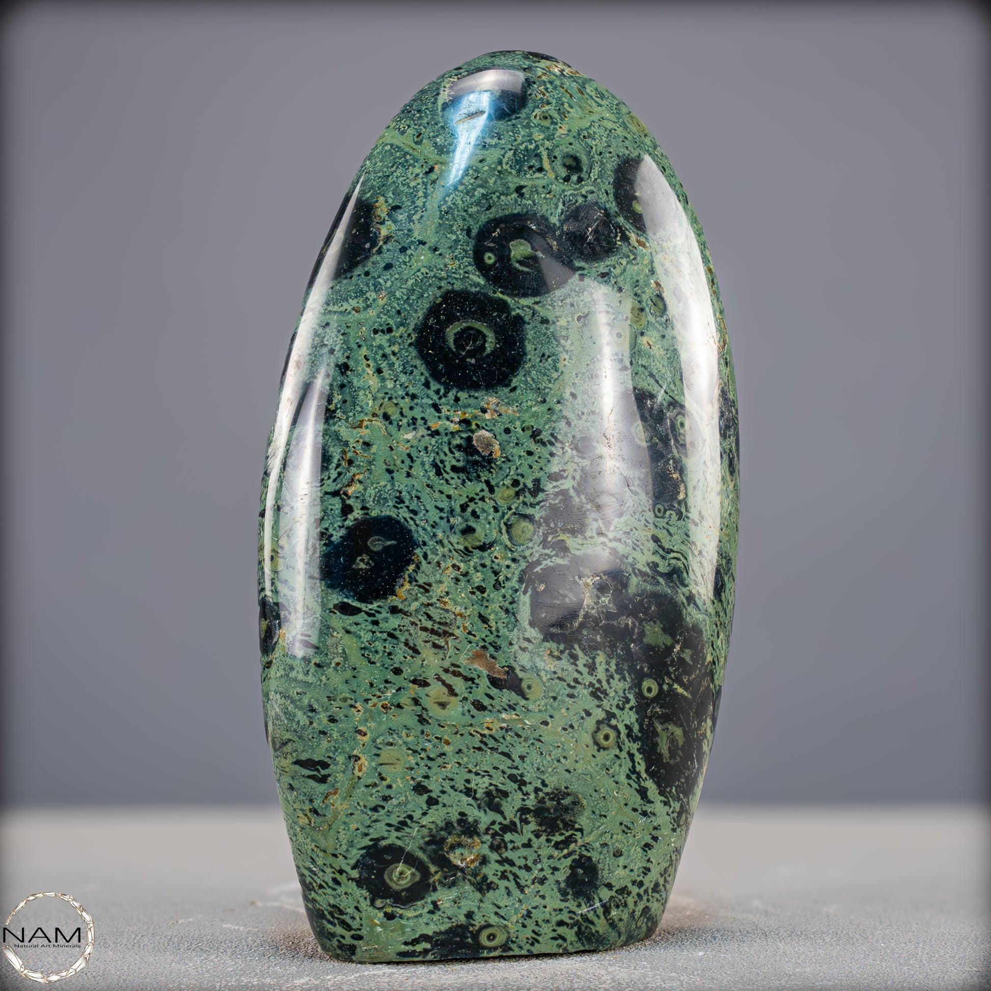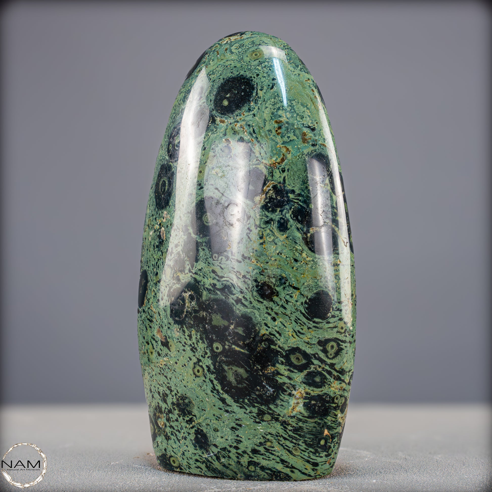 Große Kambaba-Jaspis-Freiformin der höchsten Qualität-Qualität. Dieses Beeindruckende Stück ist aus einem massiven Stück Kambaba-Jaspis handpoliert. Dieses Stück hat einen ausgezeichneten Glanz durch seine Perfekte Politur, ein erstaunliches Muster und ist ein Gesprächsstoff in jedem Raum. Kambaba-Jaspis wird manchmal auch als Krokodil-Jaspis oder Kambaba-Stein bezeichnet. Kambaba-Jaspis, eine Form des kugelförmigen Jaspis, ist auch als Stromatolith-Jaspis bekannt. Dieser seltene versteinerte Stramatolith-Jaspis wird hauptsächlich auf Madagaskar, einem Inselstaat im Indischen Ozean, gefunden. Kambaba-Jaspis enthält einige der ältesten Lebensformen, die wunderschön versteinert sind.