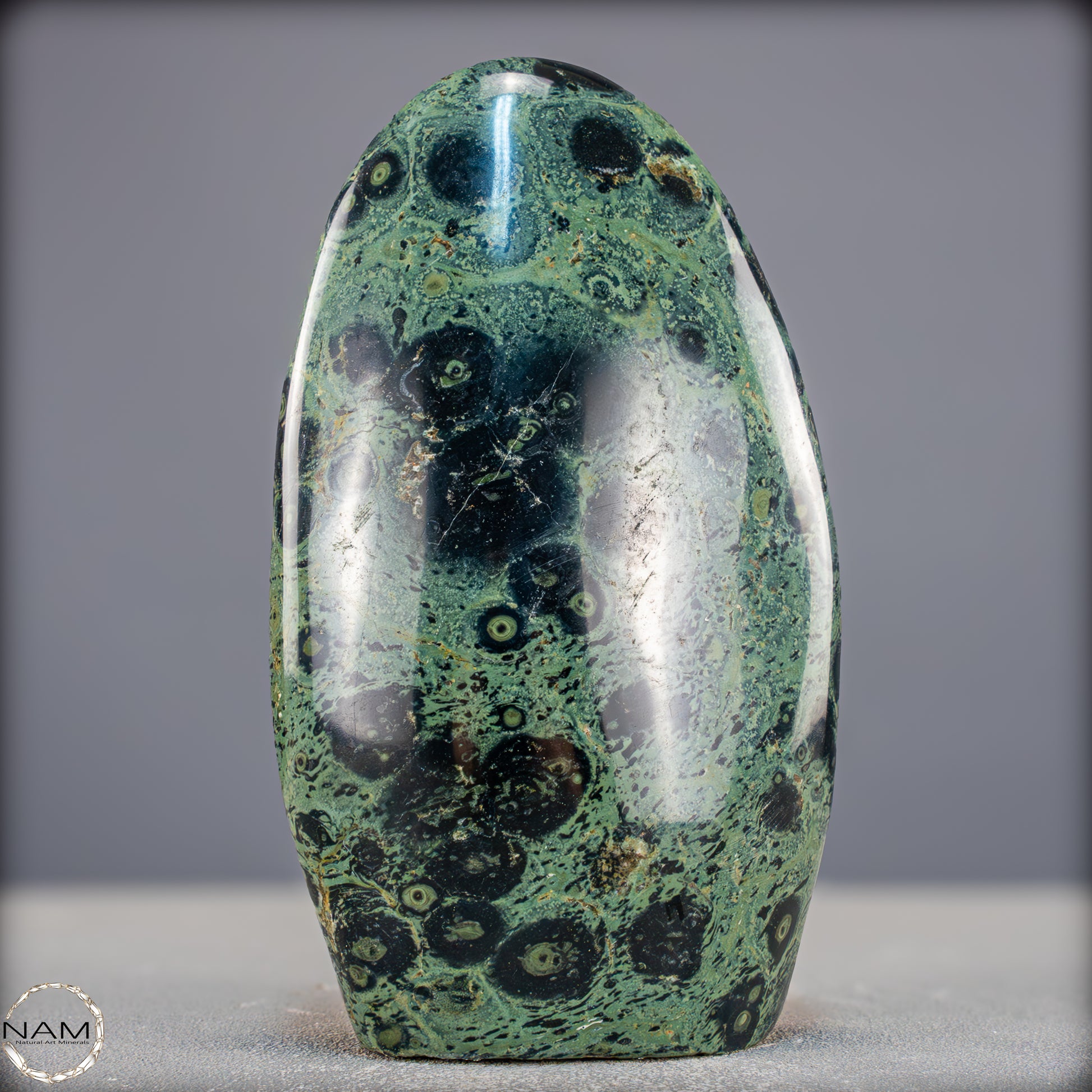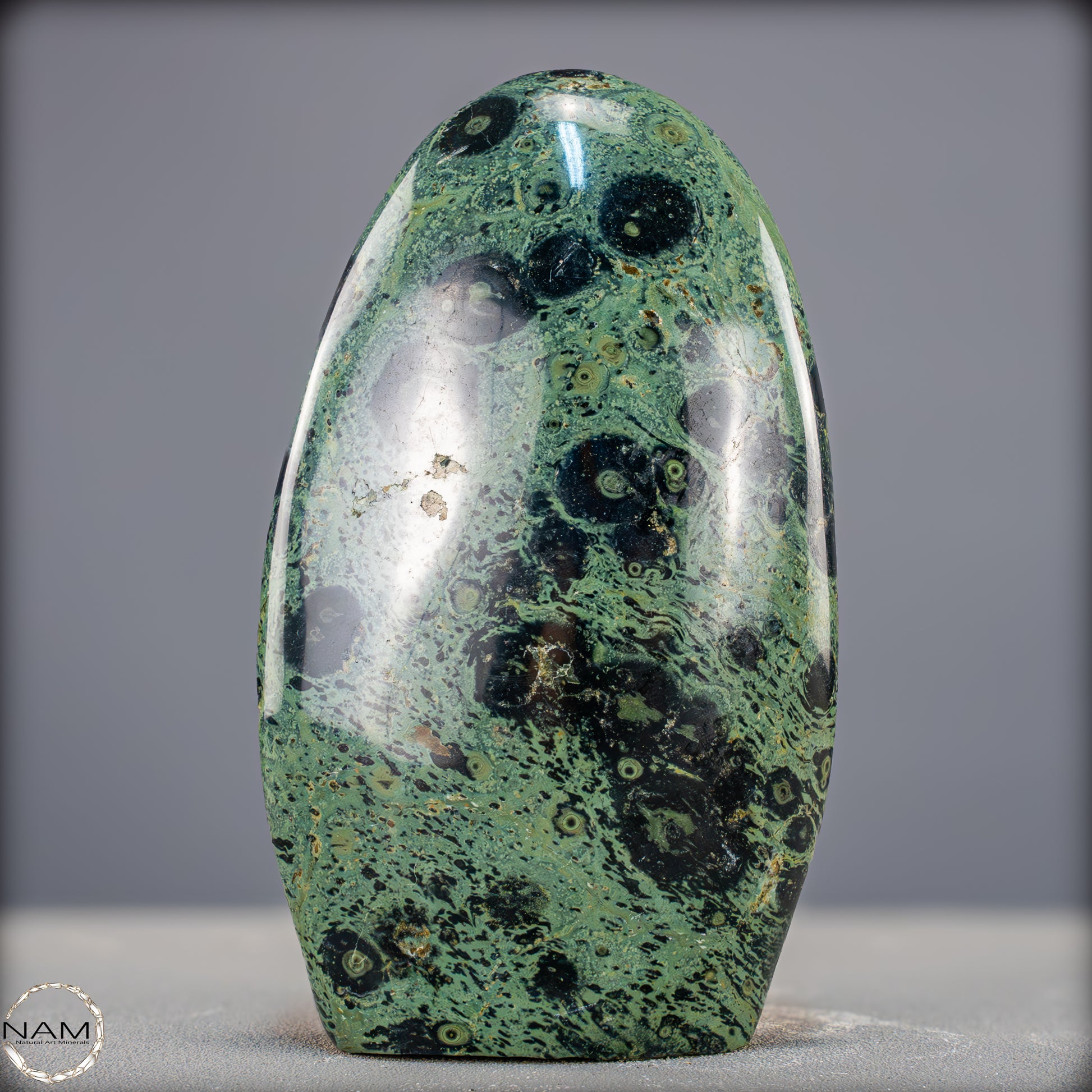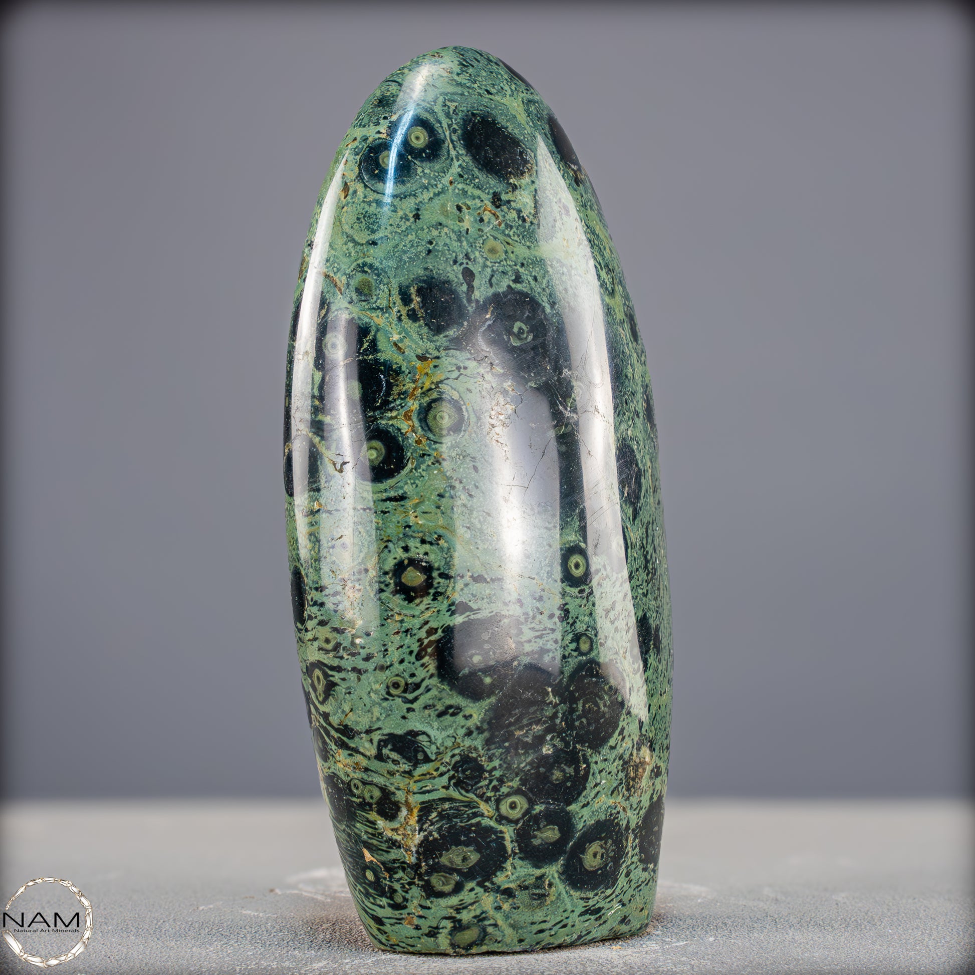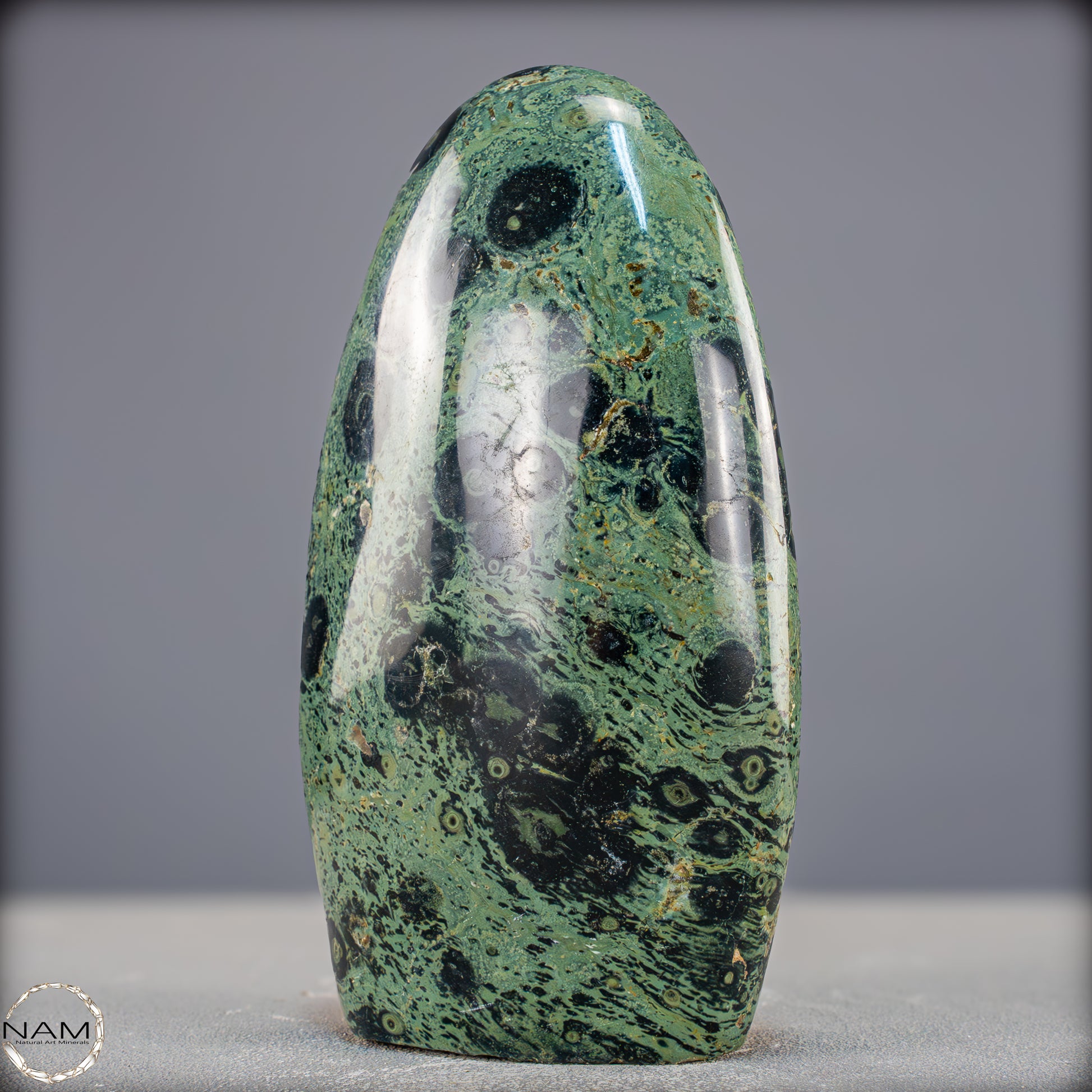 Große Kambaba-Jaspis-Freiformin der höchsten Qualität-Qualität. Dieses Beeindruckende Stück ist aus einem massiven Stück Kambaba-Jaspis handpoliert. Dieses Stück hat einen ausgezeichneten Glanz durch seine Perfekte Politur, ein erstaunliches Muster und ist ein Gesprächsstoff in jedem Raum. Kambaba-Jaspis wird manchmal auch als Krokodil-Jaspis oder Kambaba-Stein bezeichnet. Kambaba-Jaspis, eine Form des kugelförmigen Jaspis, ist auch als Stromatolith-Jaspis bekannt. Dieser seltene versteinerte Stramatolith-Jaspis wird hauptsächlich auf Madagaskar, einem Inselstaat im Indischen Ozean, gefunden. Kambaba-Jaspis enthält einige der ältesten Lebensformen, die wunderschön versteinert sind.
