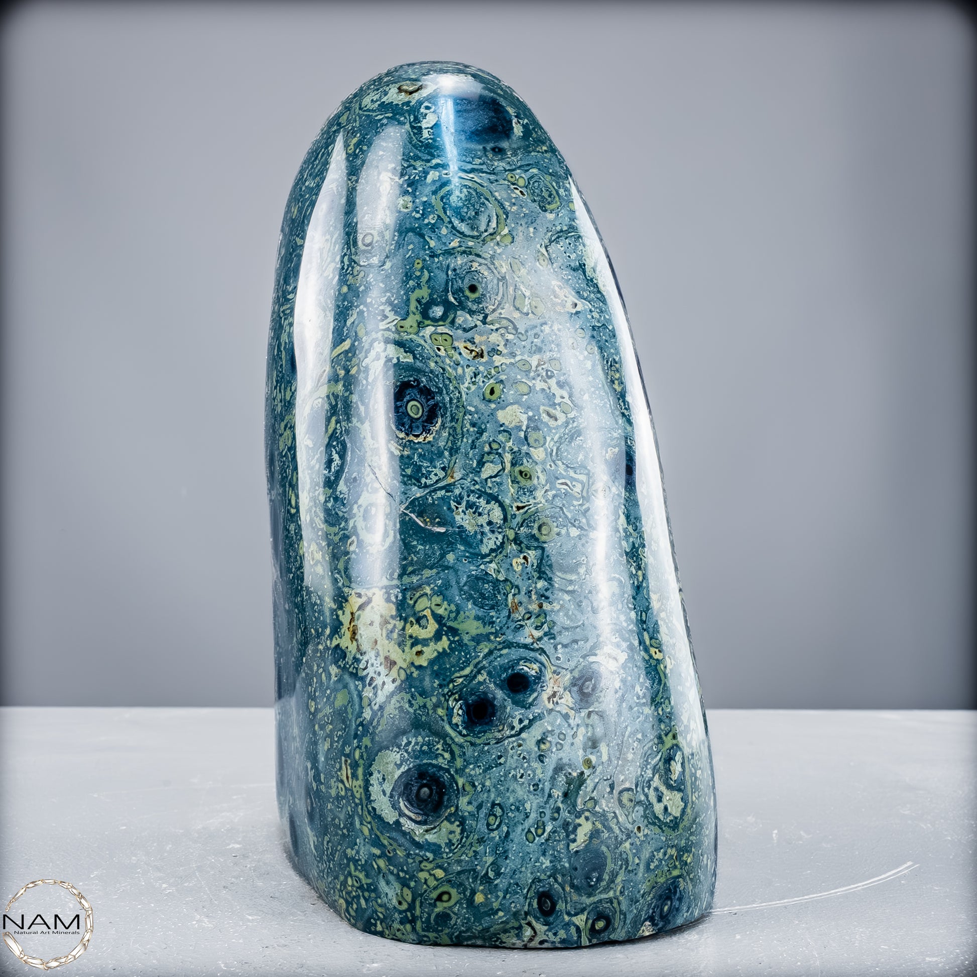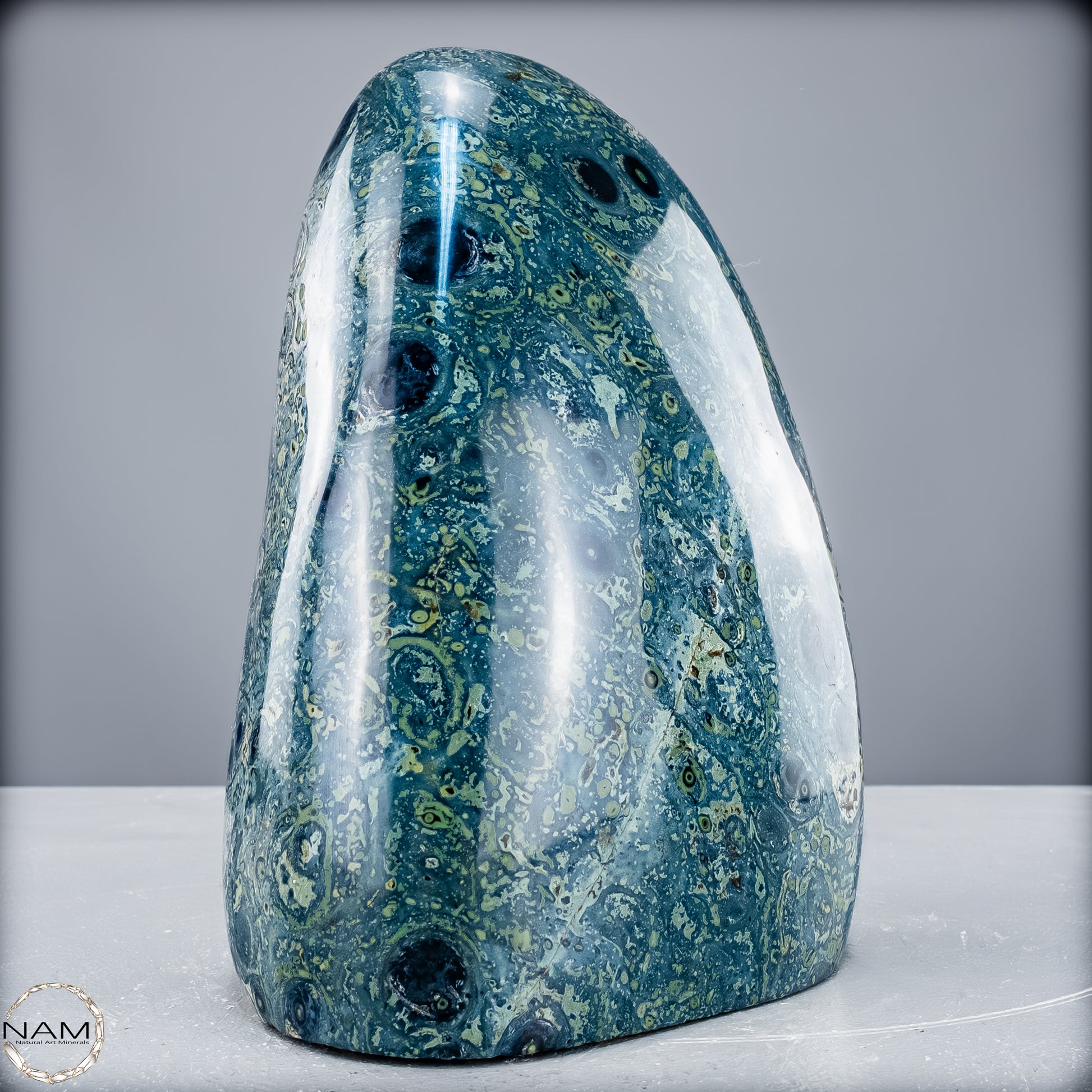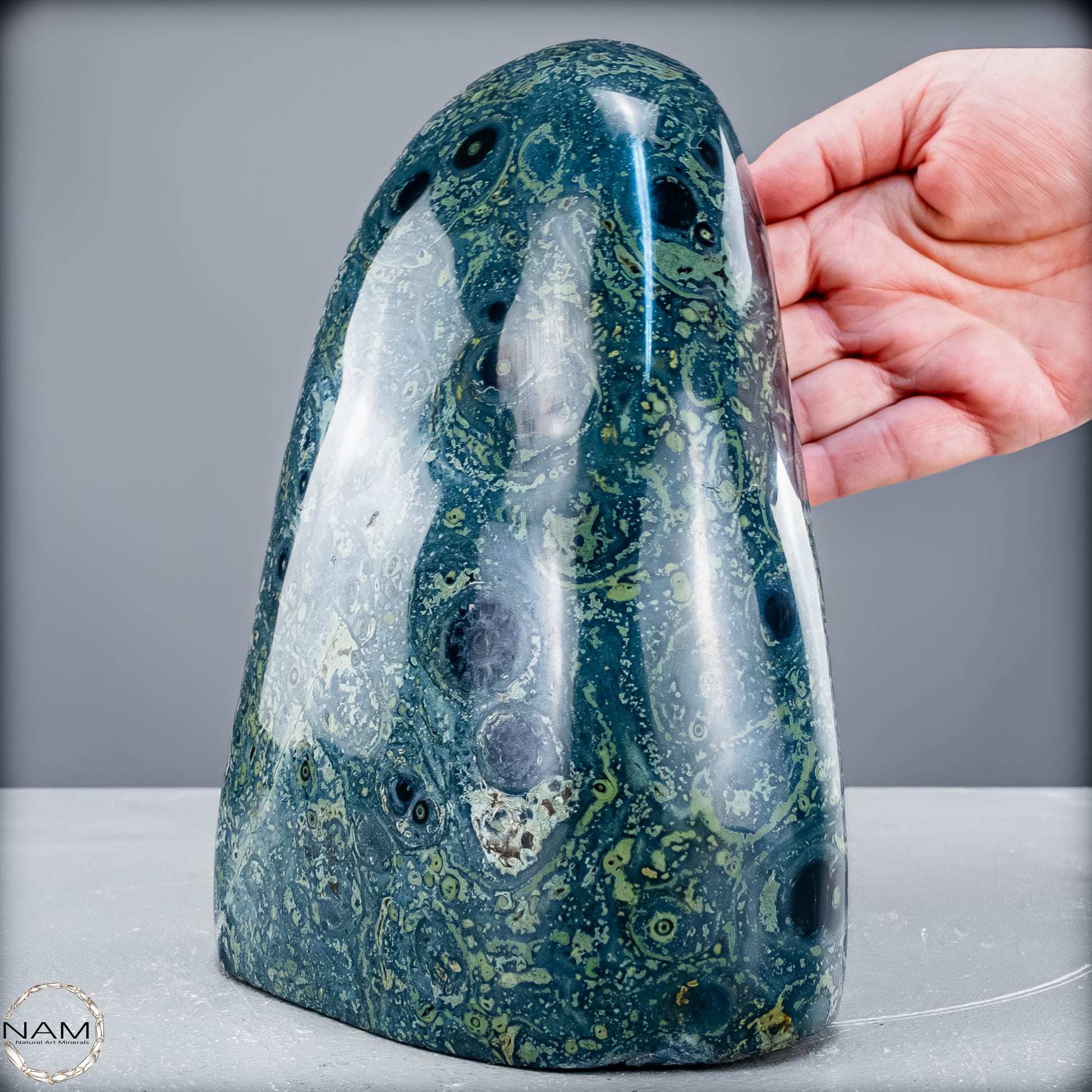 Große Kambaba-Jaspis-Freiformin der höchsten Qualität-Qualität. Dieses Beeindruckende Stück ist aus einem massiven Stück Kambaba-Jaspis handpoliert. Dieses Stück hat einen ausgezeichneten Glanz durch seine Perfekte Politur, ein erstaunliches Muster und ist ein Gesprächsstoff in jedem Raum. Kambaba-Jaspis wird manchmal auch als Krokodil-Jaspis oder Kambaba-Stein bezeichnet. Kambaba-Jaspis, eine Form des kugelförmigen Jaspis, ist auch als Stromatolith-Jaspis bekannt. Dieser seltene versteinerte Stramatolith-Jaspis wird hauptsächlich auf Madagaskar, einem Inselstaat im Indischen Ozean, gefunden. Kambaba-Jaspis enthält einige der ältesten Lebensformen, die wunderschön versteinert sind.