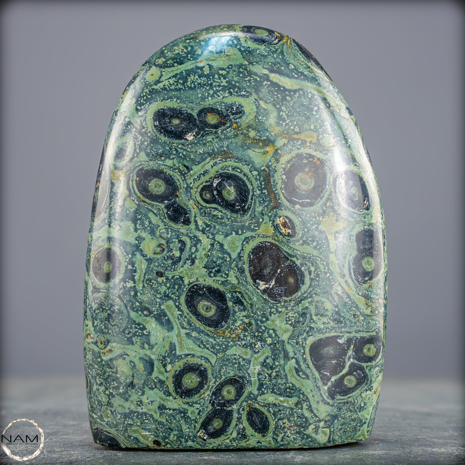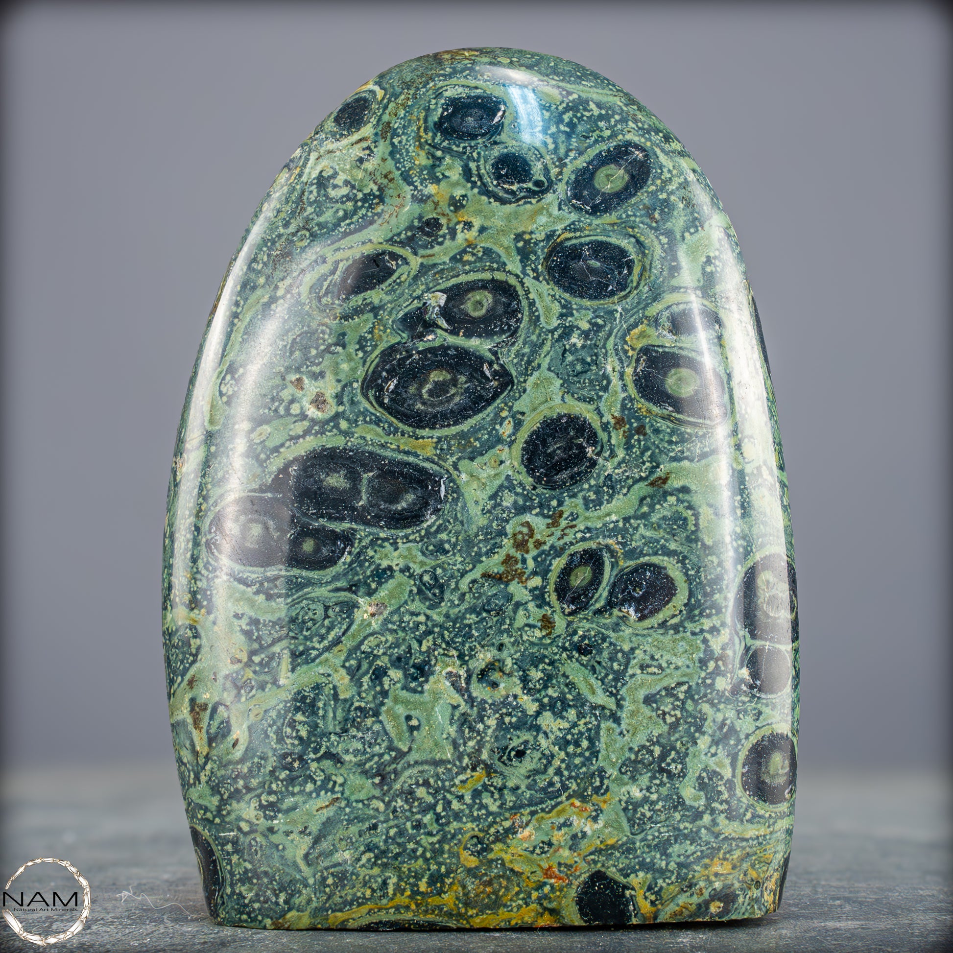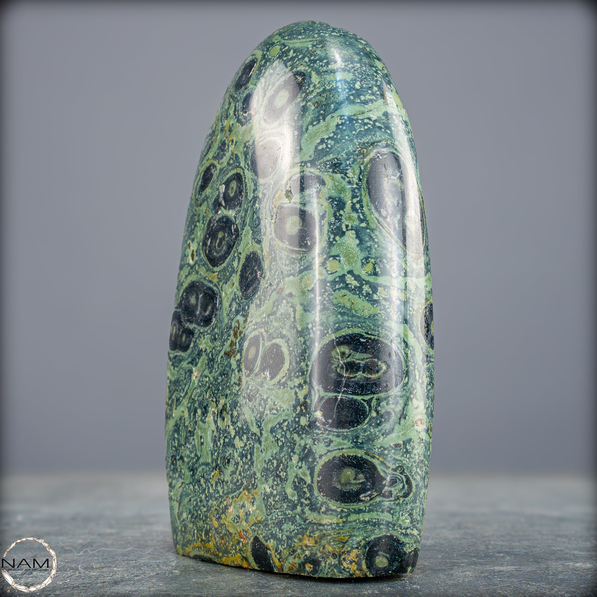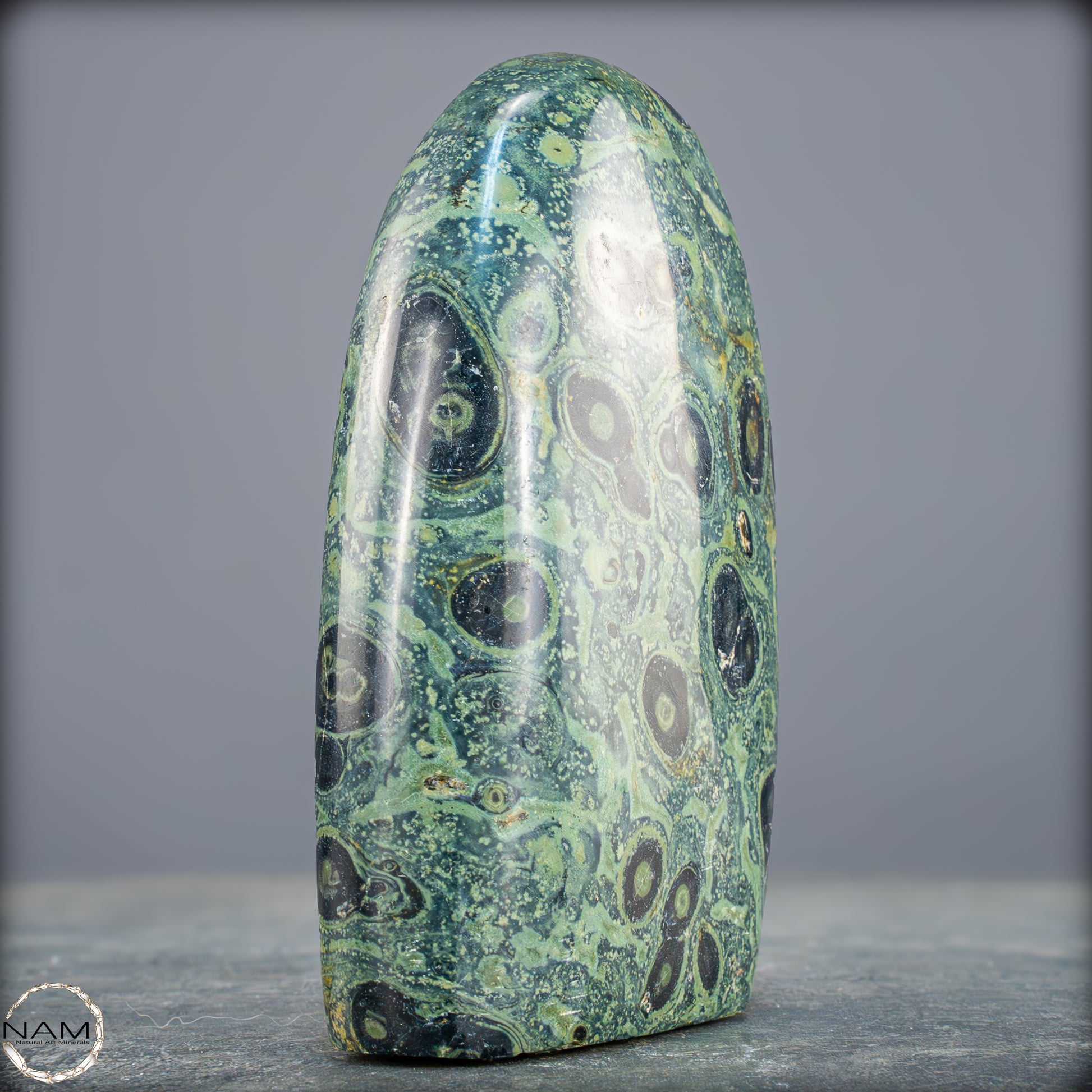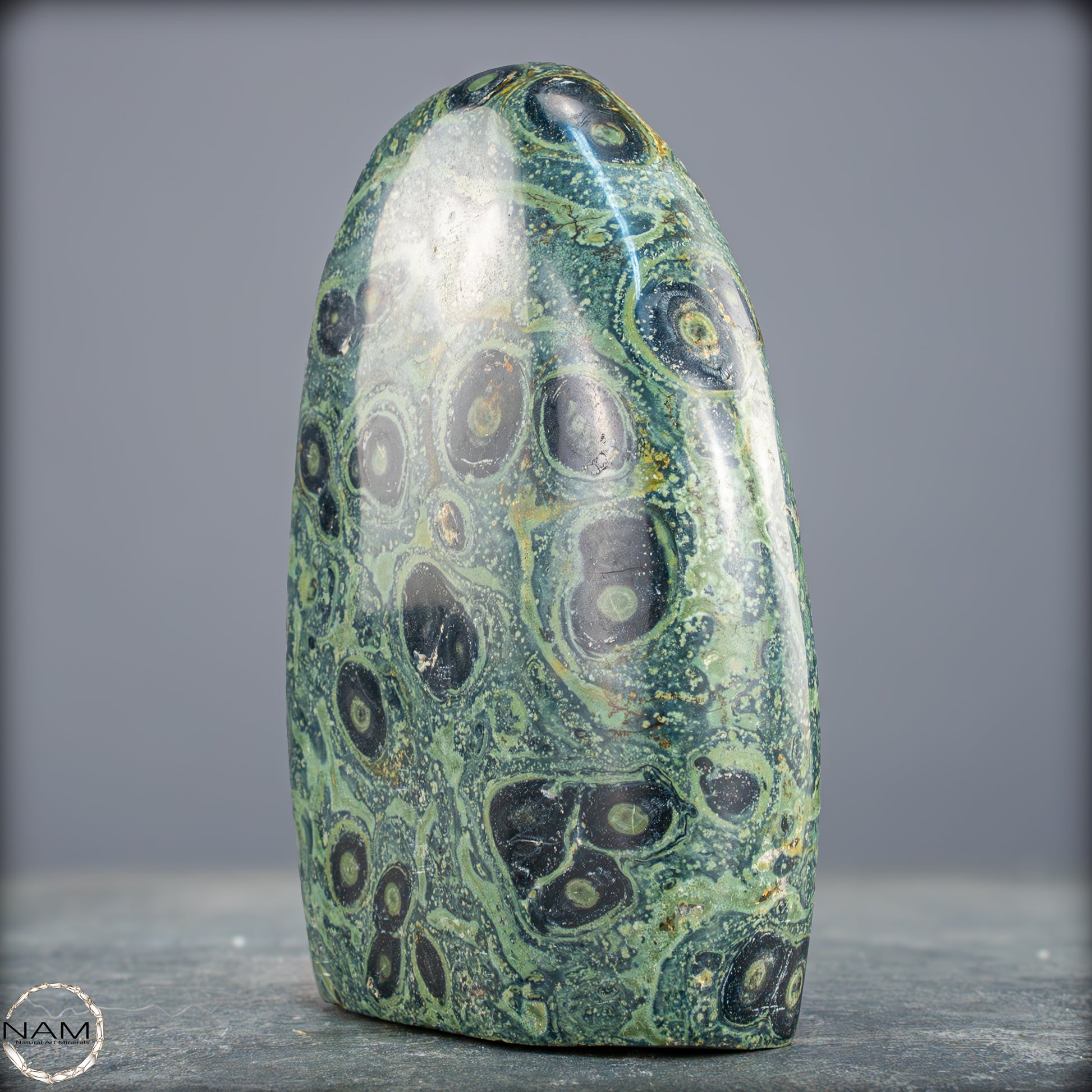 Große Kambaba-Jaspis-Freiformin der höchsten Qualität-Qualität. Dieses Beeindruckende Stück ist aus einem massiven Stück Kambaba-Jaspis handpoliert. Dieses Stück hat einen ausgezeichneten Glanz durch seine Perfekte Politur, ein erstaunliches Muster und ist ein Gesprächsstoff in jedem Raum. Kambaba-Jaspis wird manchmal auch als Krokodil-Jaspis oder Kambaba-Stein bezeichnet. Kambaba-Jaspis, eine Form des kugelförmigen Jaspis, ist auch als Stromatolith-Jaspis bekannt. Dieser seltene versteinerte Stramatolith-Jaspis wird hauptsächlich auf Madagaskar, einem Inselstaat im Indischen Ozean, gefunden. Kambaba-Jaspis enthält einige der ältesten Lebensformen, die wunderschön versteinert sind.