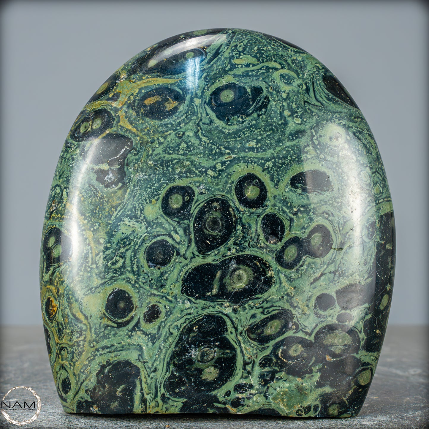 Große Kambaba-Jaspis-Freiformin der höchsten Qualität-Qualität. Dieses Beeindruckende Stück ist aus einem massiven Stück Kambaba-Jaspis handpoliert. Dieses Stück hat einen ausgezeichneten Glanz durch seine Perfekte Politur, ein erstaunliches Muster und ist ein Gesprächsstoff in jedem Raum. Kambaba-Jaspis wird manchmal auch als Krokodil-Jaspis oder Kambaba-Stein bezeichnet. Kambaba-Jaspis, eine Form des kugelförmigen Jaspis, ist auch als Stromatolith-Jaspis bekannt. Dieser seltene versteinerte Stramatolith-Jaspis wird hauptsächlich auf Madagaskar, einem Inselstaat im Indischen Ozean, gefunden. Kambaba-Jaspis enthält einige der ältesten Lebensformen, die wunderschön versteinert sind.