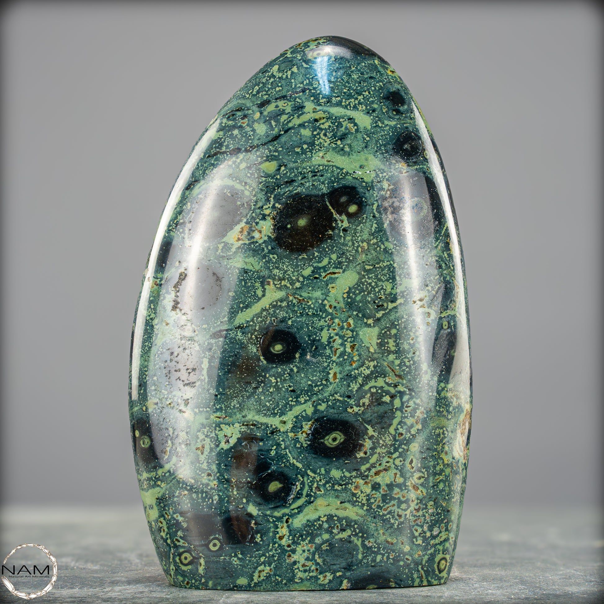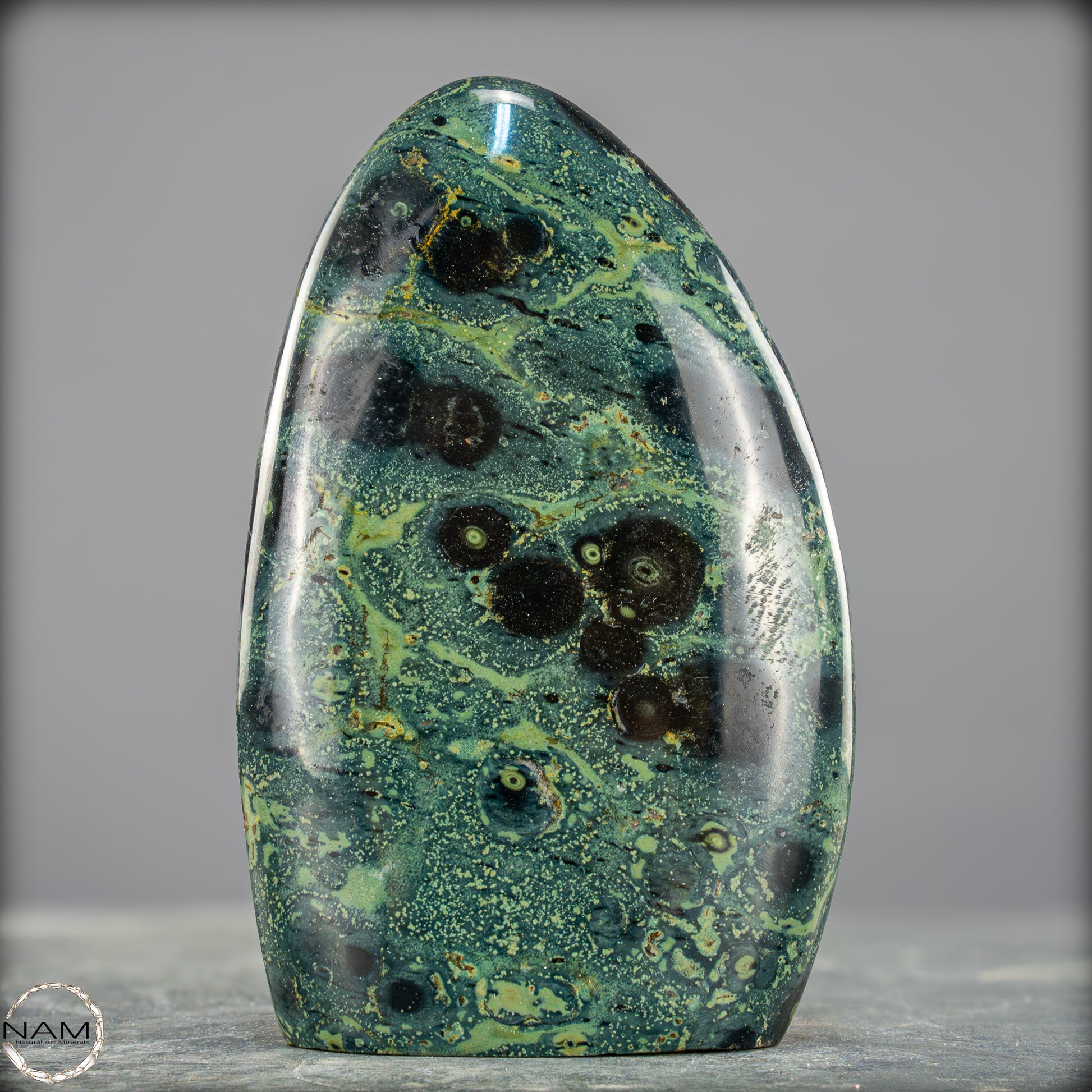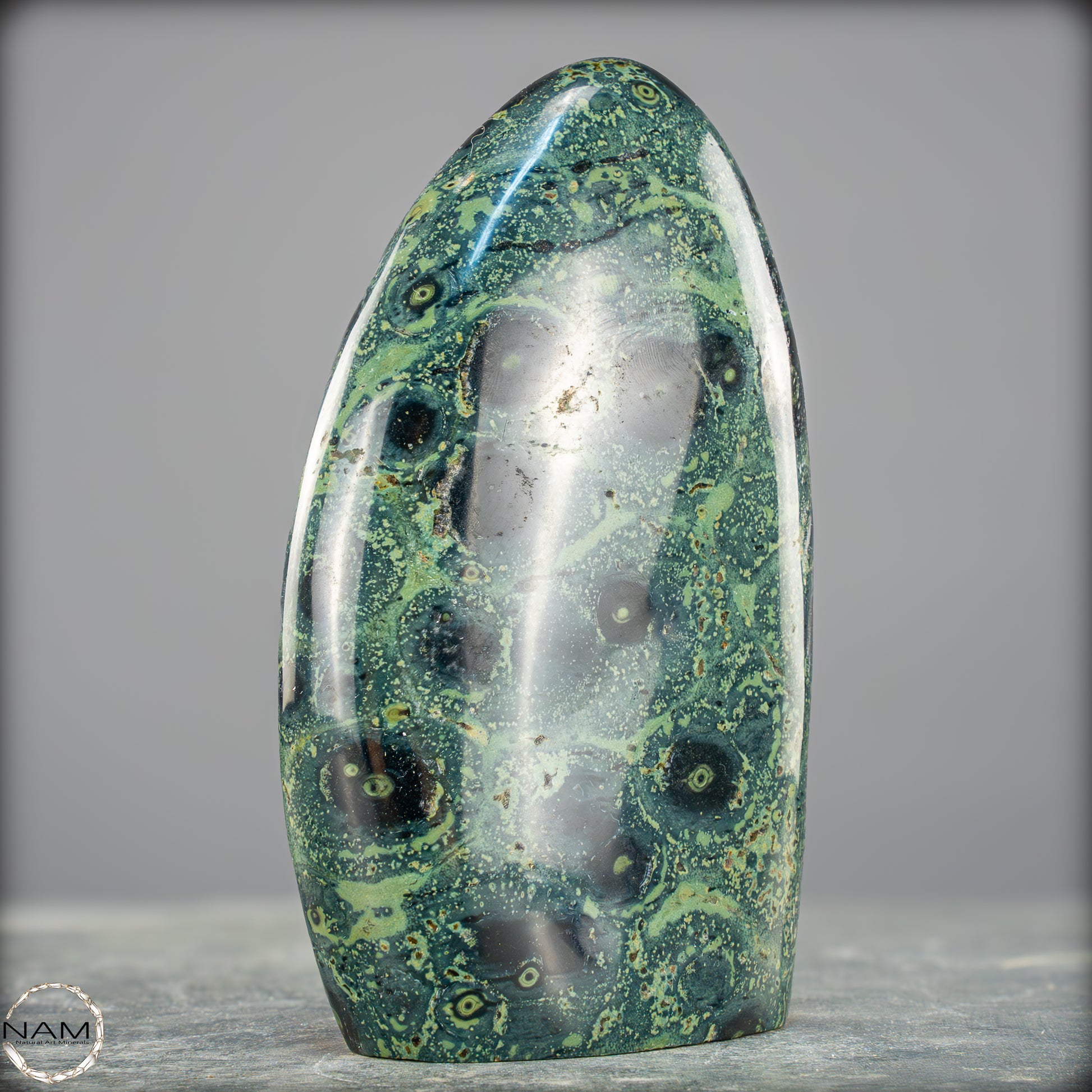 Große Kambaba-Jaspis-Freiformin der höchsten Qualität-Qualität. Dieses Beeindruckende Stück ist aus einem massiven Stück Kambaba-Jaspis handpoliert. Dieses Stück hat einen ausgezeichneten Glanz durch seine Perfekte Politur, ein erstaunliches Muster und ist ein Gesprächsstoff in jedem Raum. Kambaba-Jaspis wird manchmal auch als Krokodil-Jaspis oder Kambaba-Stein bezeichnet. Kambaba-Jaspis, eine Form des kugelförmigen Jaspis, ist auch als Stromatolith-Jaspis bekannt. Dieser seltene versteinerte Stramatolith-Jaspis wird hauptsächlich auf Madagaskar, einem Inselstaat im Indischen Ozean, gefunden. Kambaba-Jaspis enthält einige der ältesten Lebensformen, die wunderschön versteinert sind.