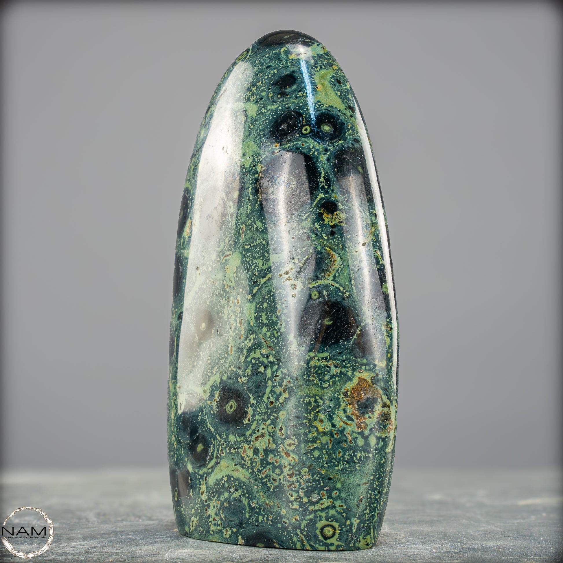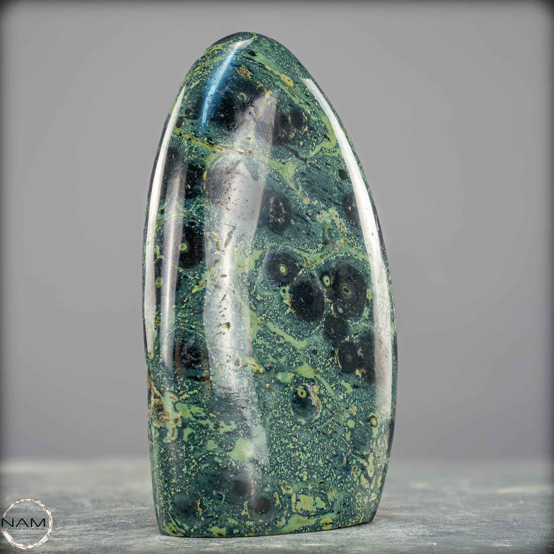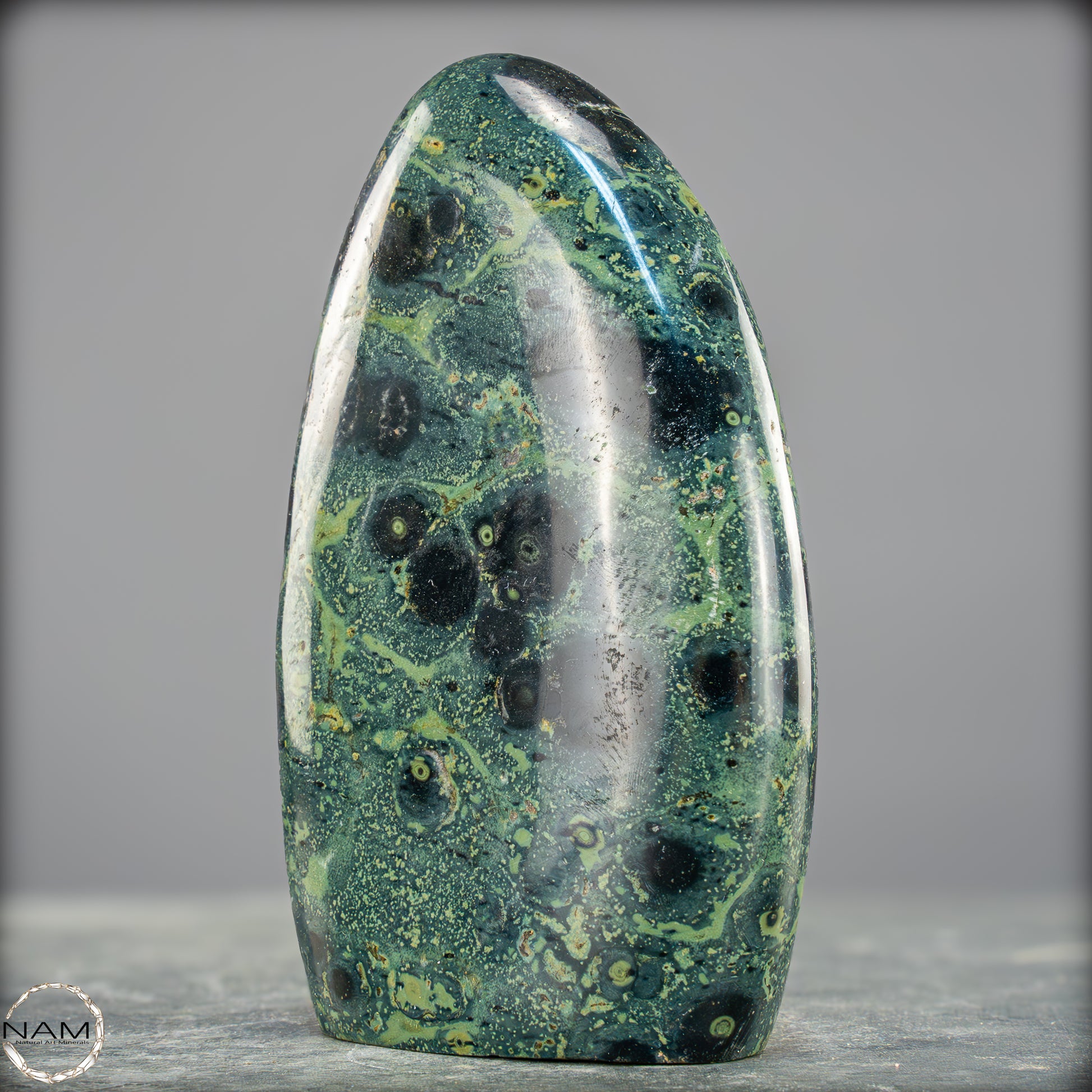 Große Kambaba-Jaspis-Freiformin der höchsten Qualität-Qualität. Dieses Beeindruckende Stück ist aus einem massiven Stück Kambaba-Jaspis handpoliert. Dieses Stück hat einen ausgezeichneten Glanz durch seine Perfekte Politur, ein erstaunliches Muster und ist ein Gesprächsstoff in jedem Raum. Kambaba-Jaspis wird manchmal auch als Krokodil-Jaspis oder Kambaba-Stein bezeichnet. Kambaba-Jaspis, eine Form des kugelförmigen Jaspis, ist auch als Stromatolith-Jaspis bekannt. Dieser seltene versteinerte Stramatolith-Jaspis wird hauptsächlich auf Madagaskar, einem Inselstaat im Indischen Ozean, gefunden. Kambaba-Jaspis enthält einige der ältesten Lebensformen, die wunderschön versteinert sind.