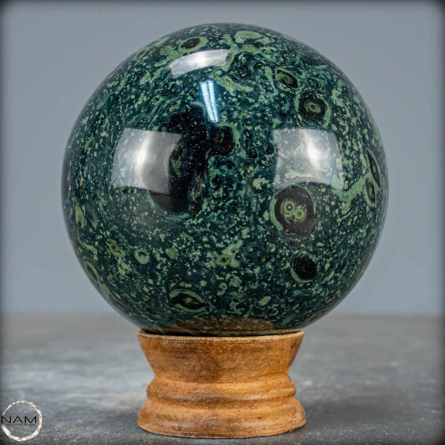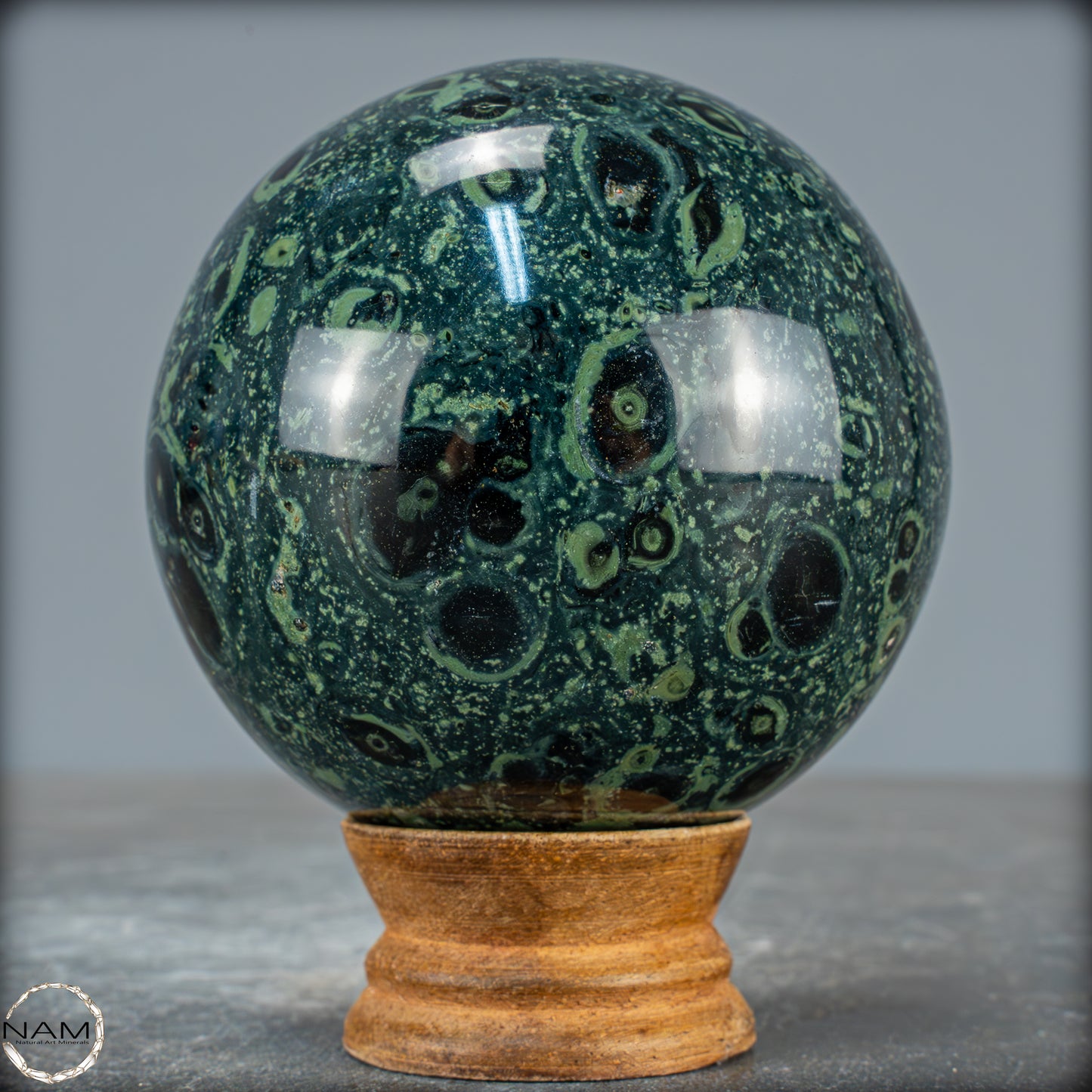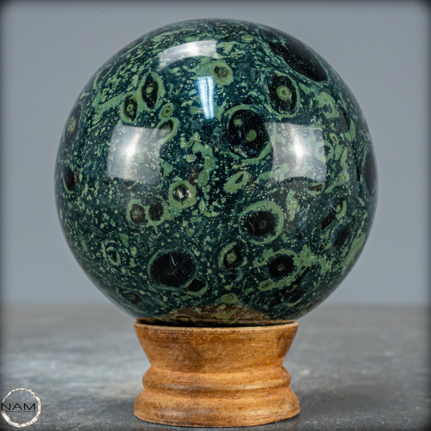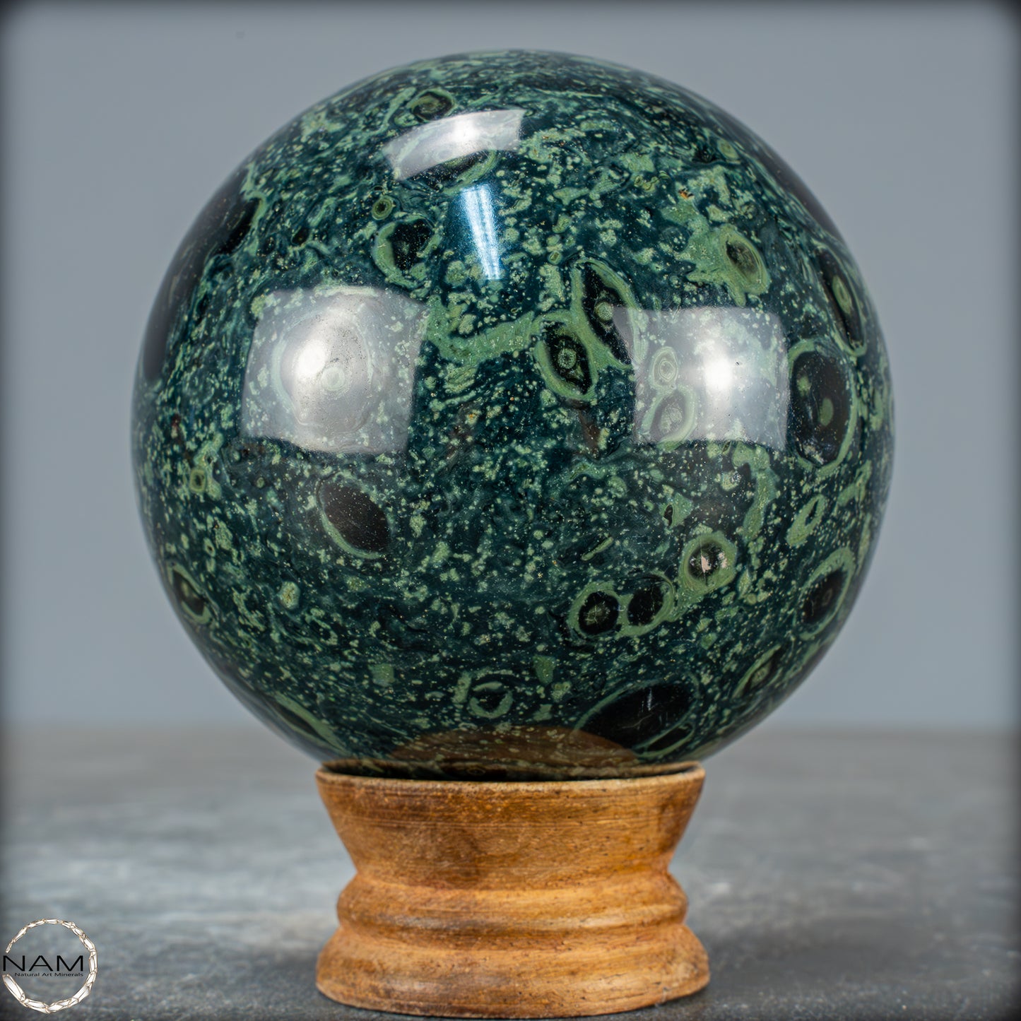 Kambaba-Jaspis-Kugel in der höchsten Qualität-Qualität. Dieses Beeindruckende Stück ist aus einem massiven Stück Kambaba-Jaspis handpoliert. Dieses Stück hat einen ausgezeichneten Glanz durch seine Perfekte Politur, ein erstaunliches Muster und ist ein Gesprächsstoff in jedem Raum. Kambaba-Jaspis wird manchmal auch als Krokodil-Jaspis oder Kambaba-Stein bezeichnet. Kambaba-Jaspis, eine Form des kugelförmigen Jaspis, ist auch als Stromatolith-Jaspis bekannt. Dieser seltene versteinerte Stramatolith-Jaspis wird hauptsächlich auf Madagaskar, einem Inselstaat im Indischen Ozean, gefunden. Kambaba-Jaspis enthält einige der ältesten Lebensformen, die wunderschön versteinert sind.