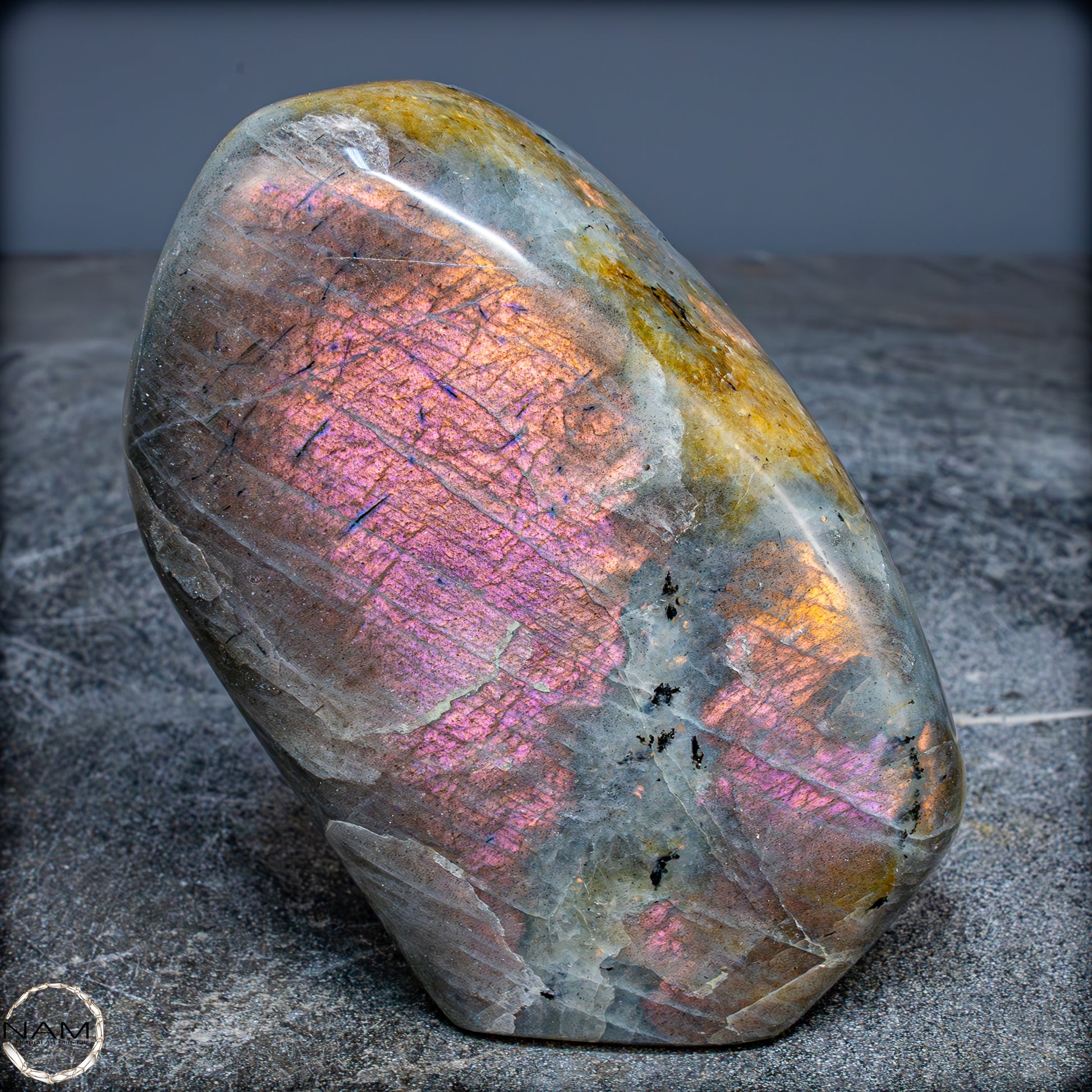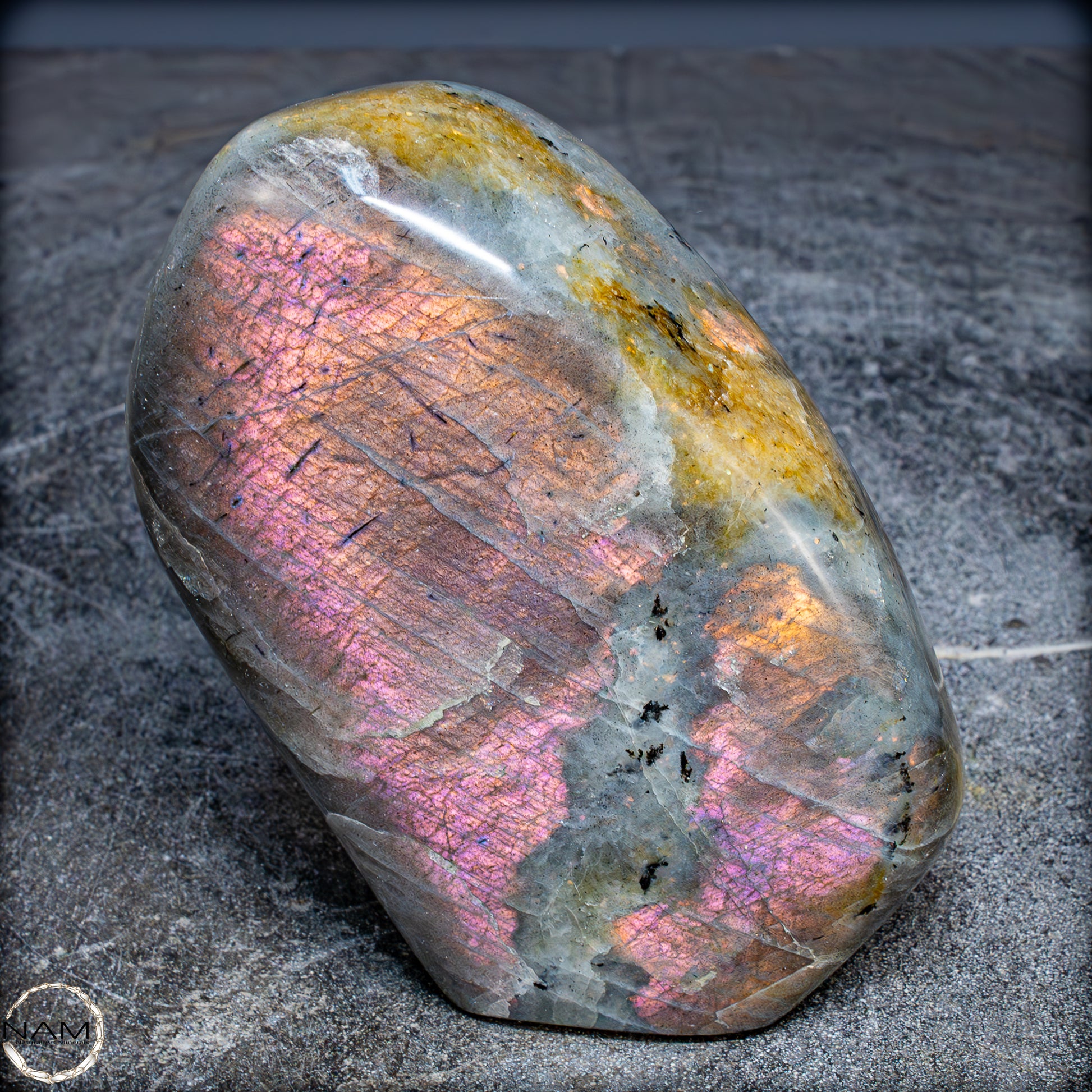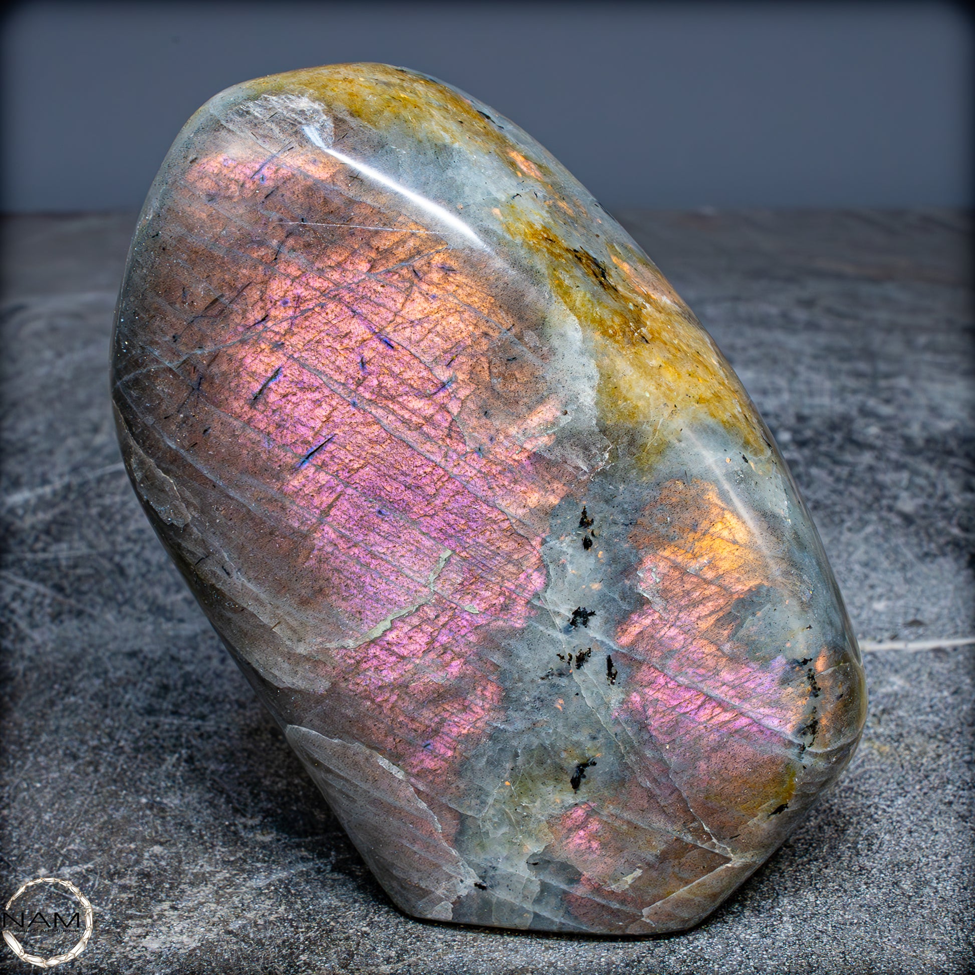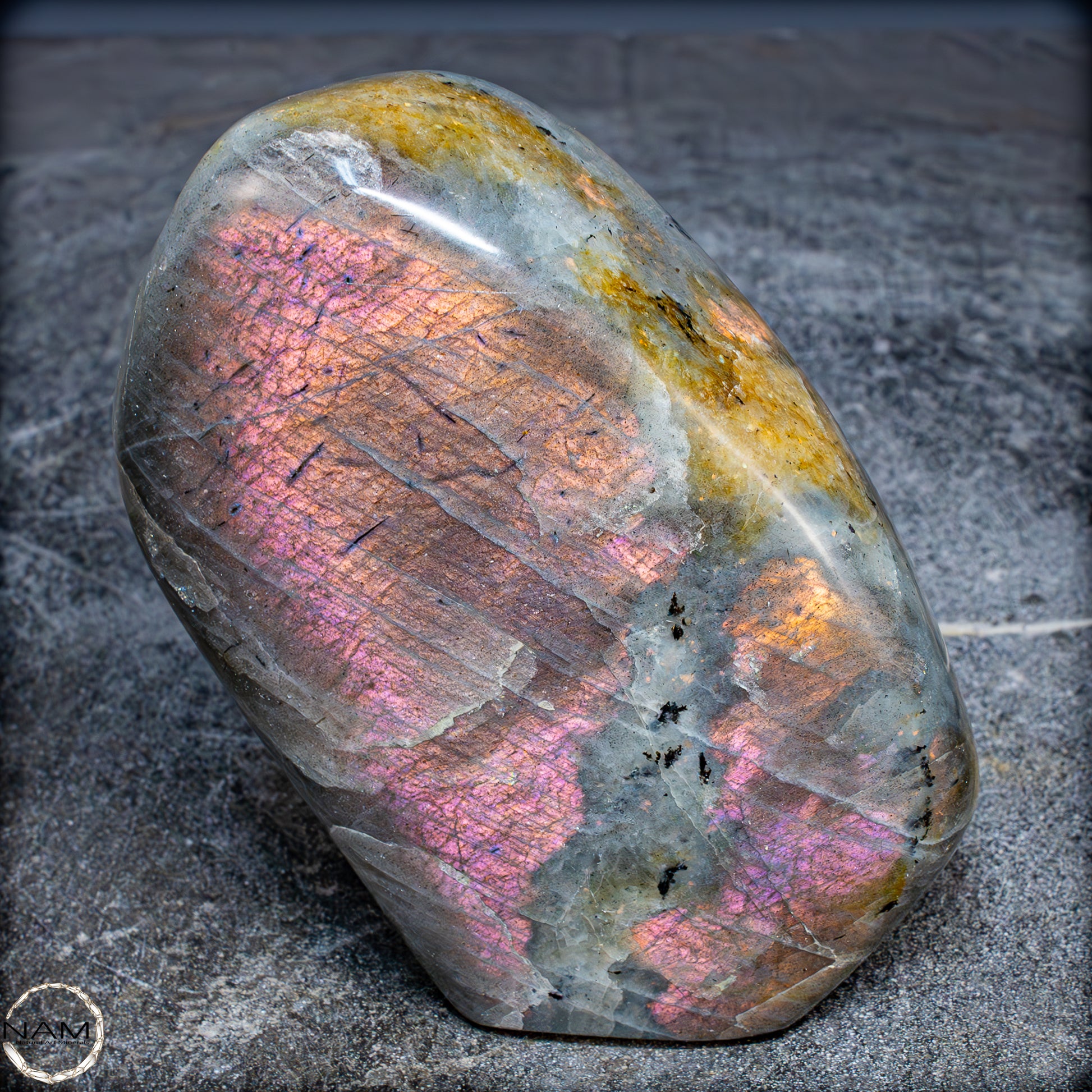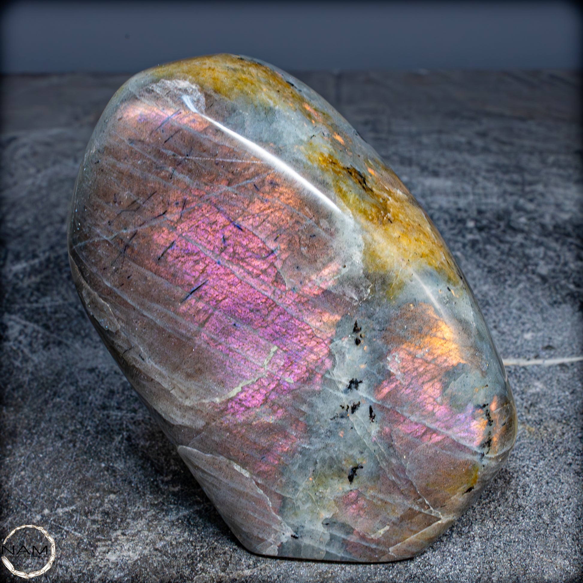 Das magische Farbenspiel des Labradorits wird auch Labradorisieren genannt. Das natürliche Licht bricht an den Kristallen auf der Oberfläche des Edelsteins. Die in ihm enthaltenen Mineralien reflektieren blau,gelb, gold, orange und grün. Einer Inuit-Legende zufolge schlug ein Krieger mit seinem Schwert auf ein großes Stück Labradorit ein. Die vielen Farben stiegen in den Himmel hinauf. So wurden die Nordlichter geboren.