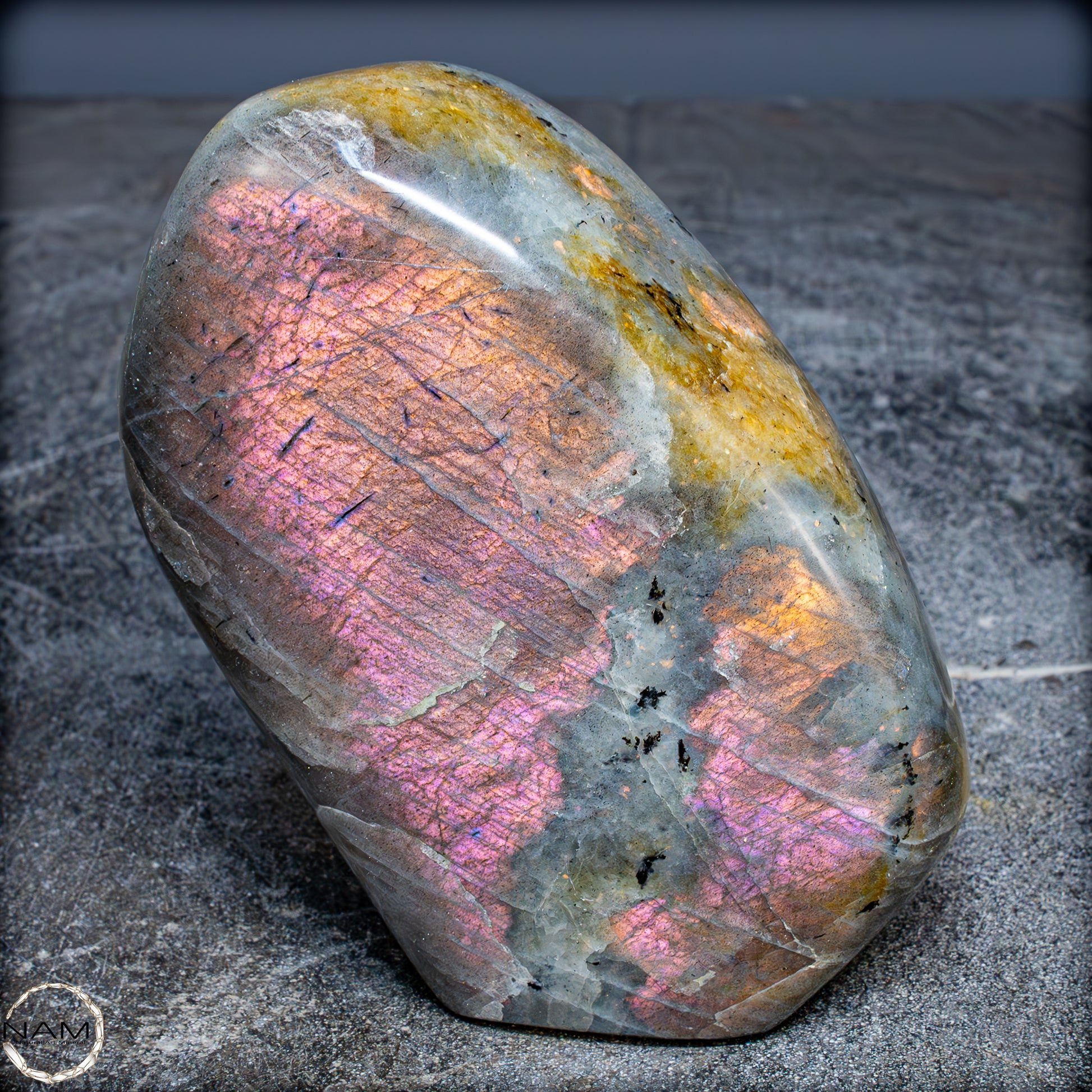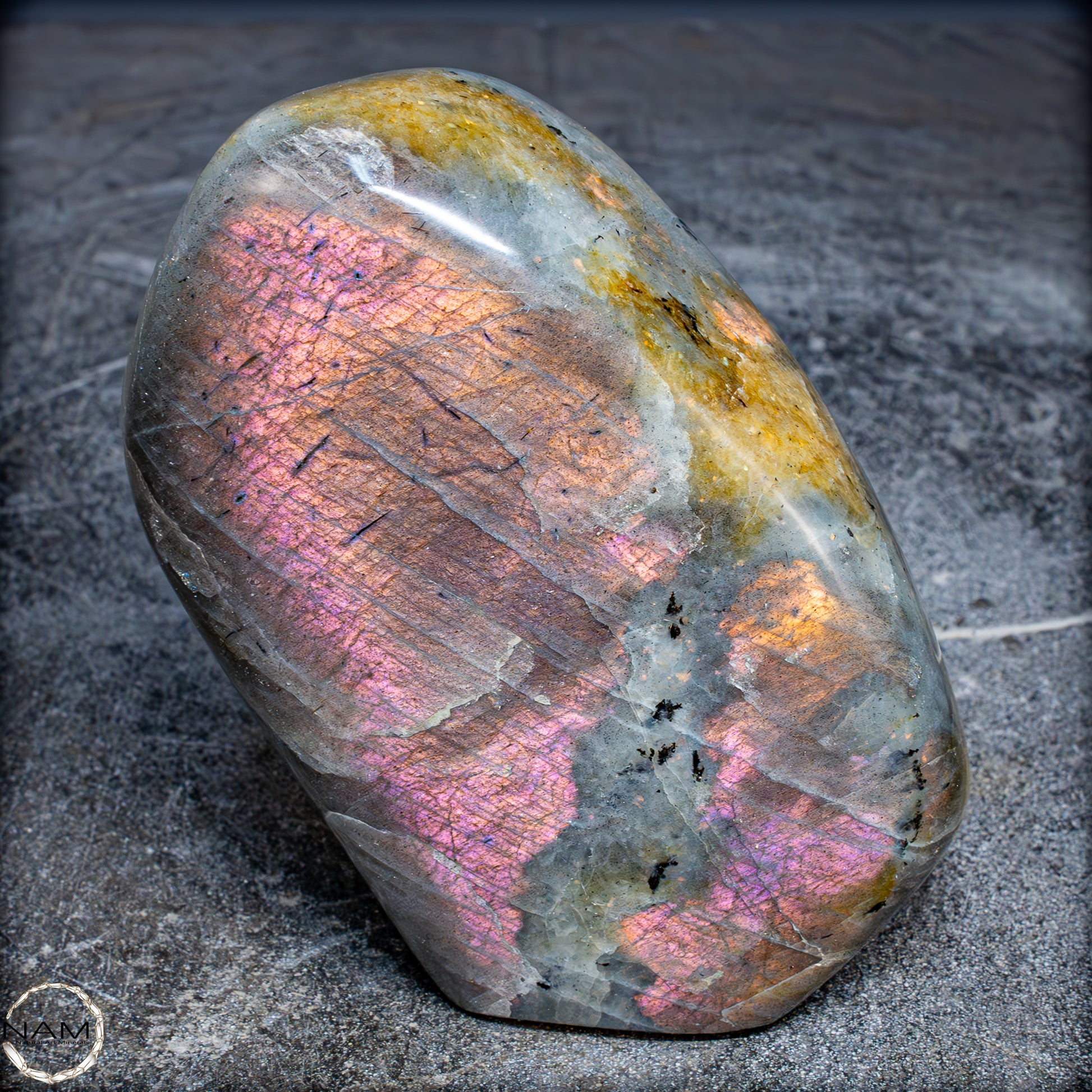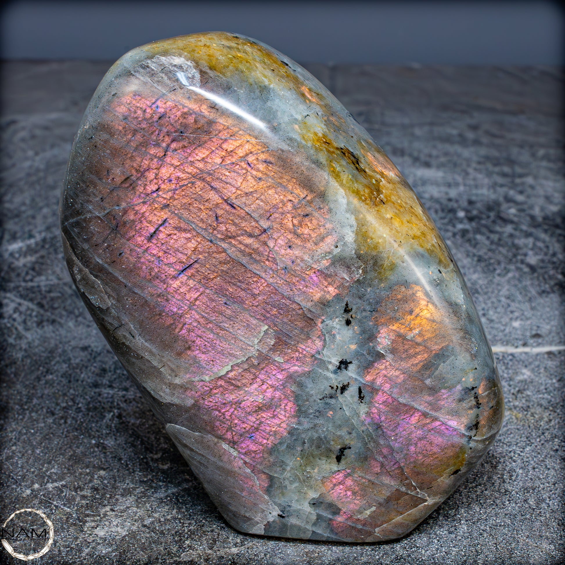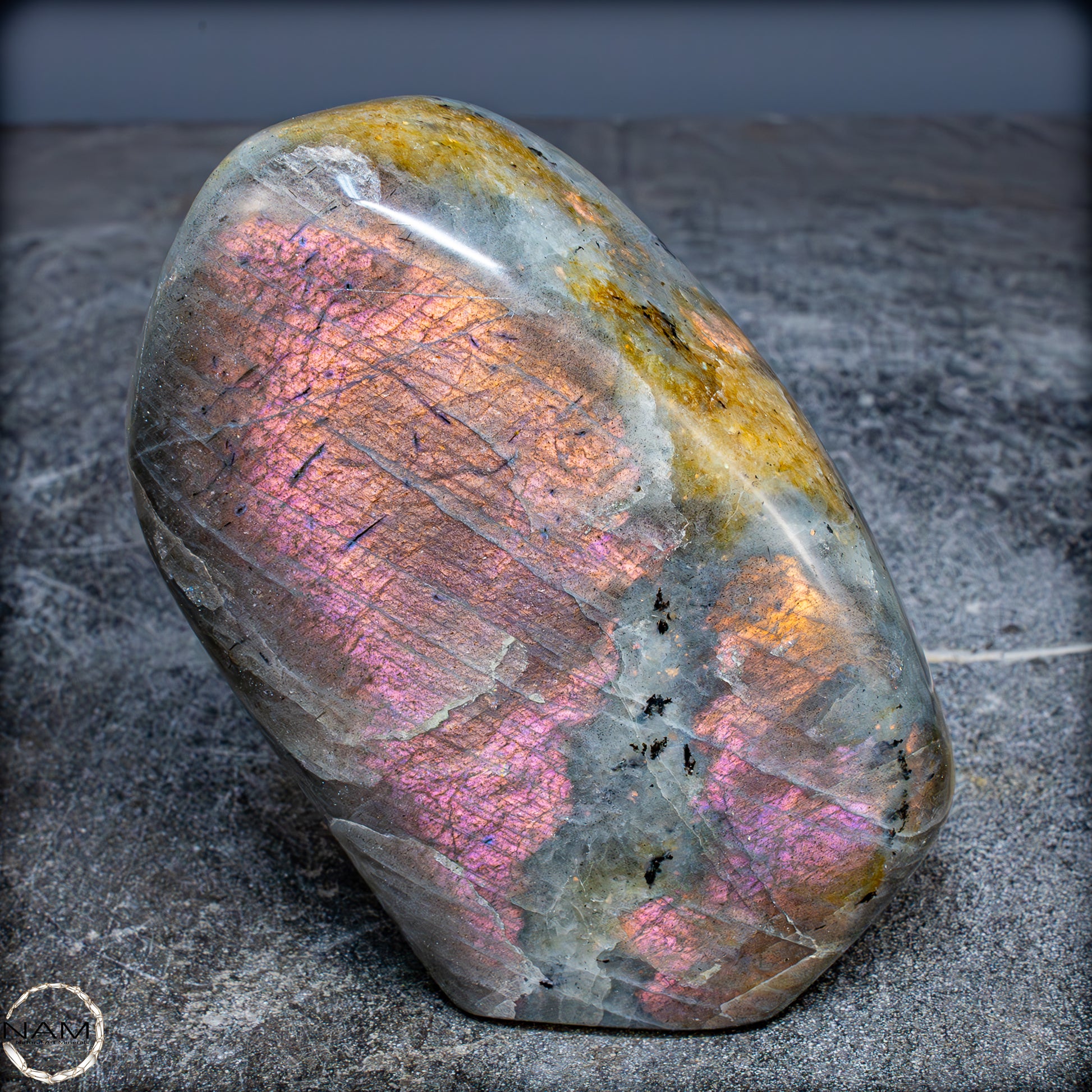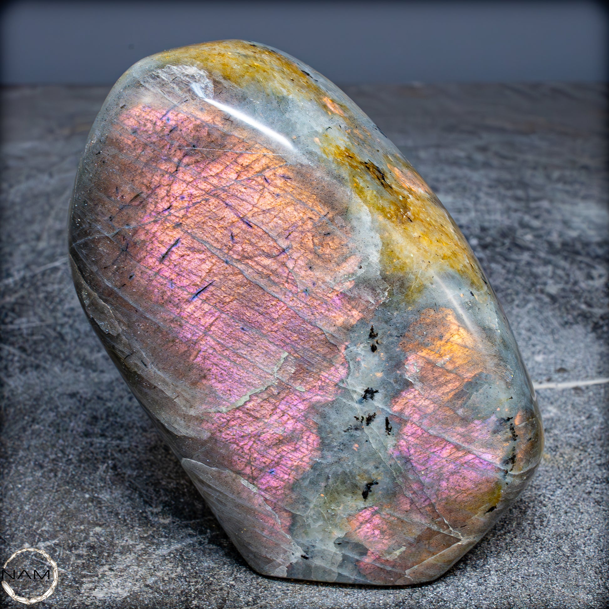 Das magische Farbenspiel des Labradorits wird auch Labradorisieren genannt. Das natürliche Licht bricht an den Kristallen auf der Oberfläche des Edelsteins. Die in ihm enthaltenen Mineralien reflektieren blau,gelb, gold, orange und grün. Einer Inuit-Legende zufolge schlug ein Krieger mit seinem Schwert auf ein großes Stück Labradorit ein. Die vielen Farben stiegen in den Himmel hinauf. So wurden die Nordlichter geboren.