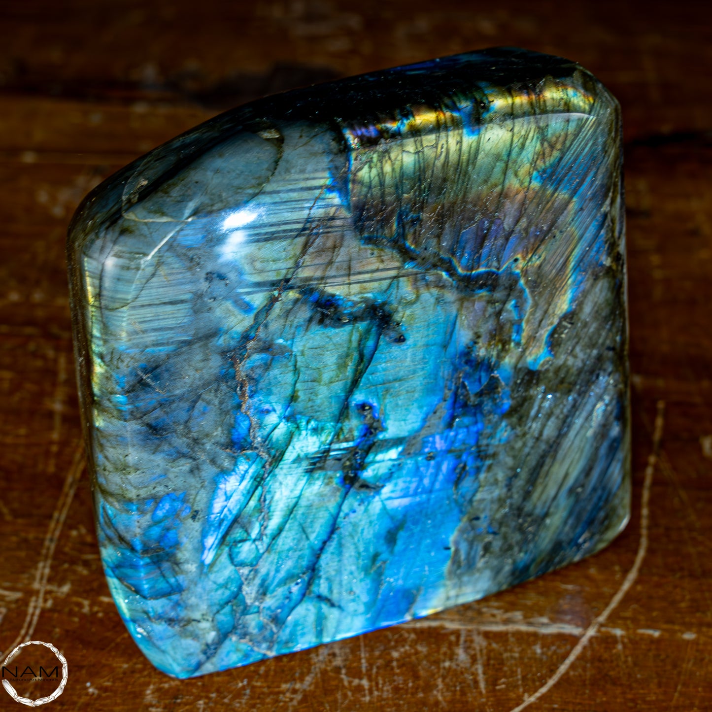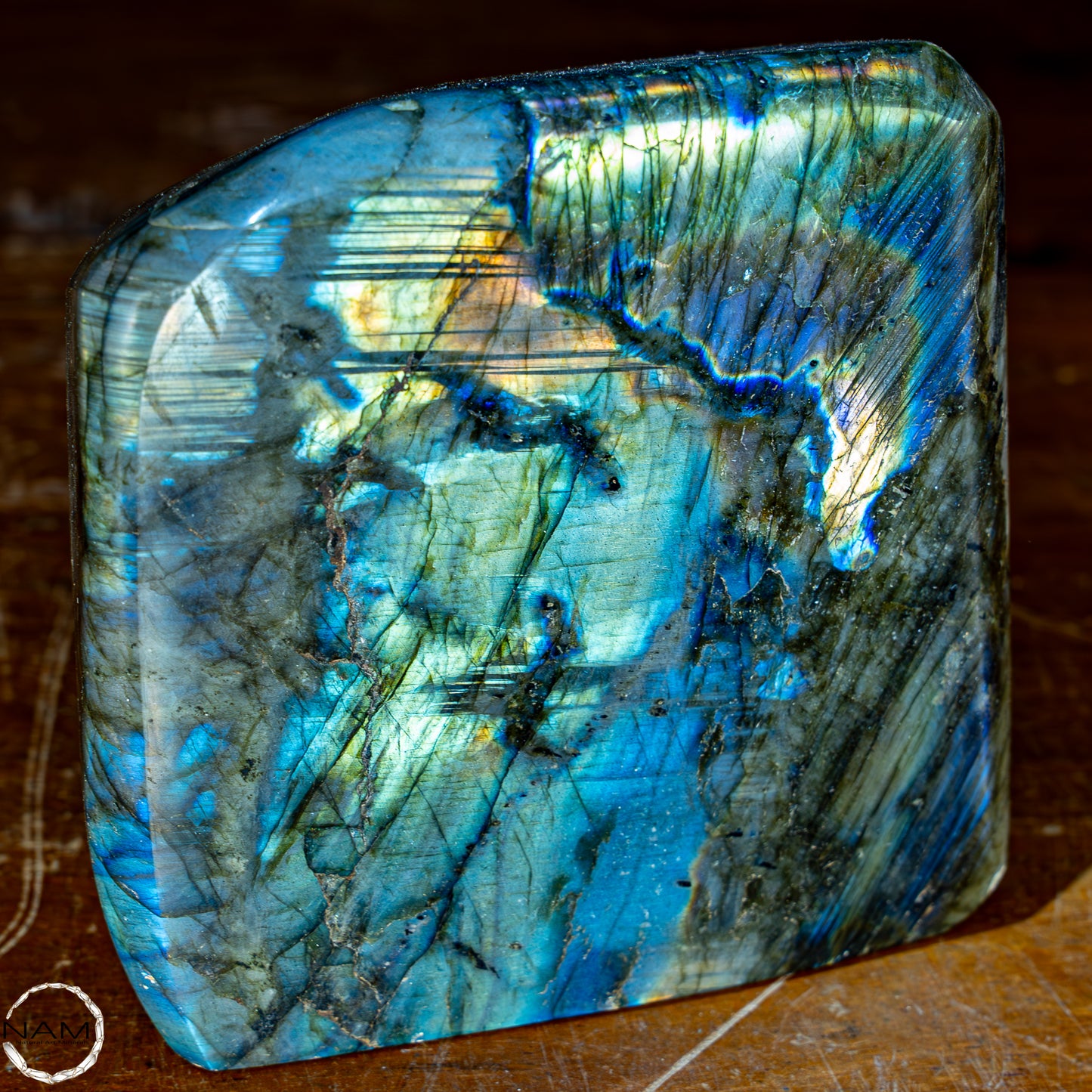 Das magische Farbenspiel des Labradorits wird auch Labradorisieren genannt. Das natürliche Licht bricht an den Kristallen auf der Oberfläche des Edelsteins. Die in ihm enthaltenen Mineralien reflektieren blau,gelb, gold, orange und grün. Einer Inuit-Legende zufolge schlug ein Krieger mit seinem Schwert auf ein großes Stück Labradorit ein. Die vielen Farben stiegen in den Himmel hinauf. So wurden die Nordlichter geboren.