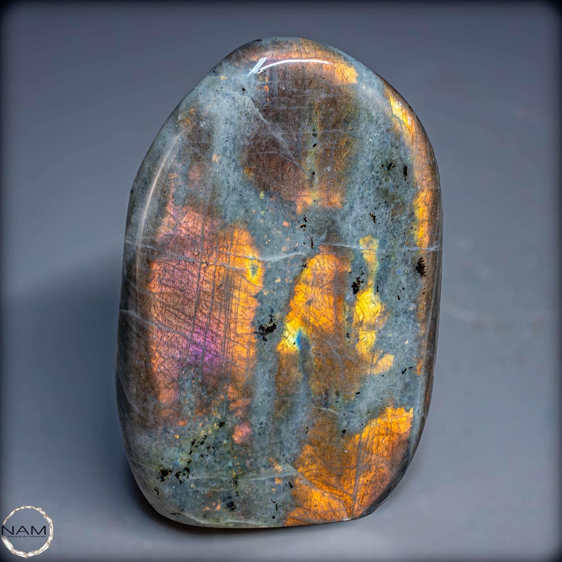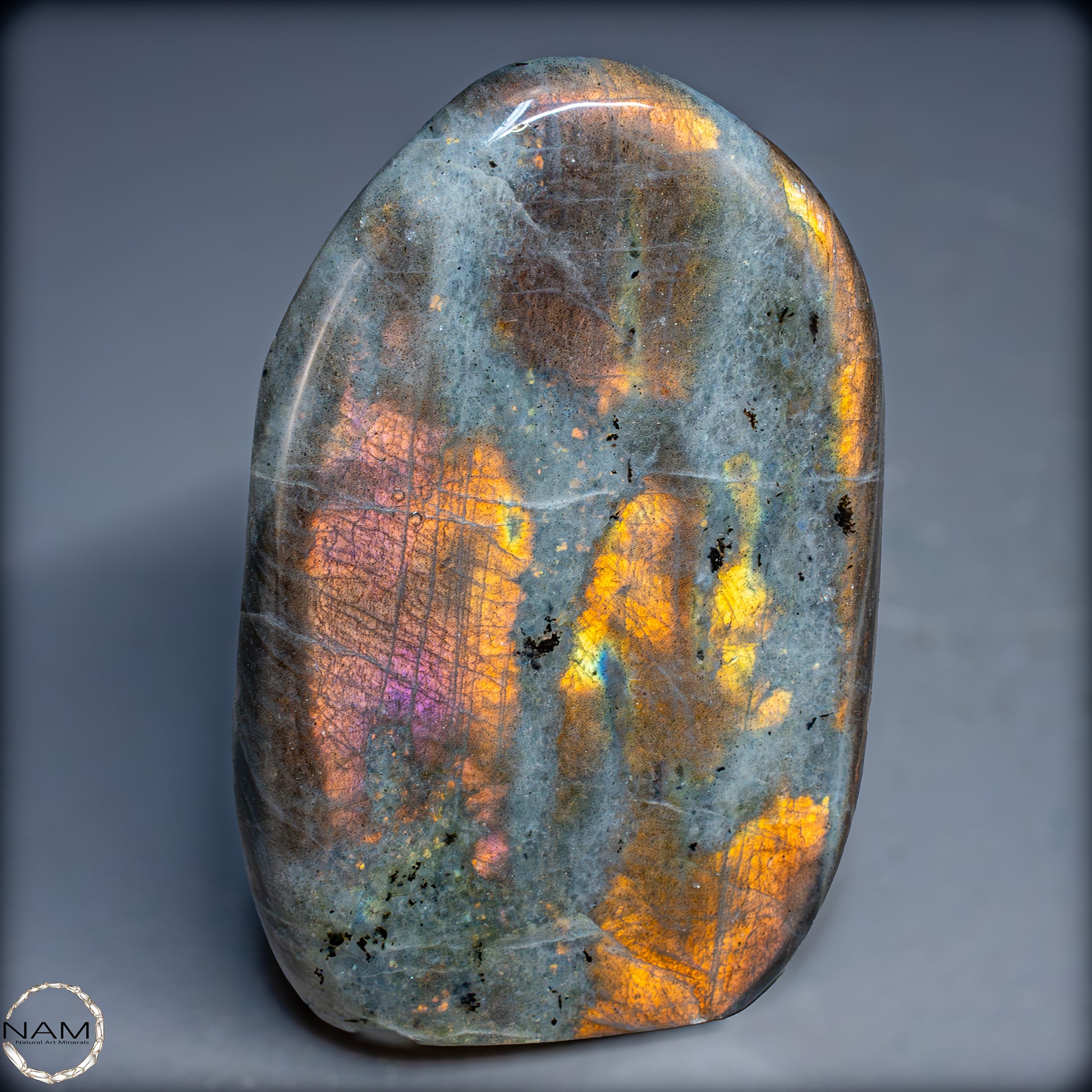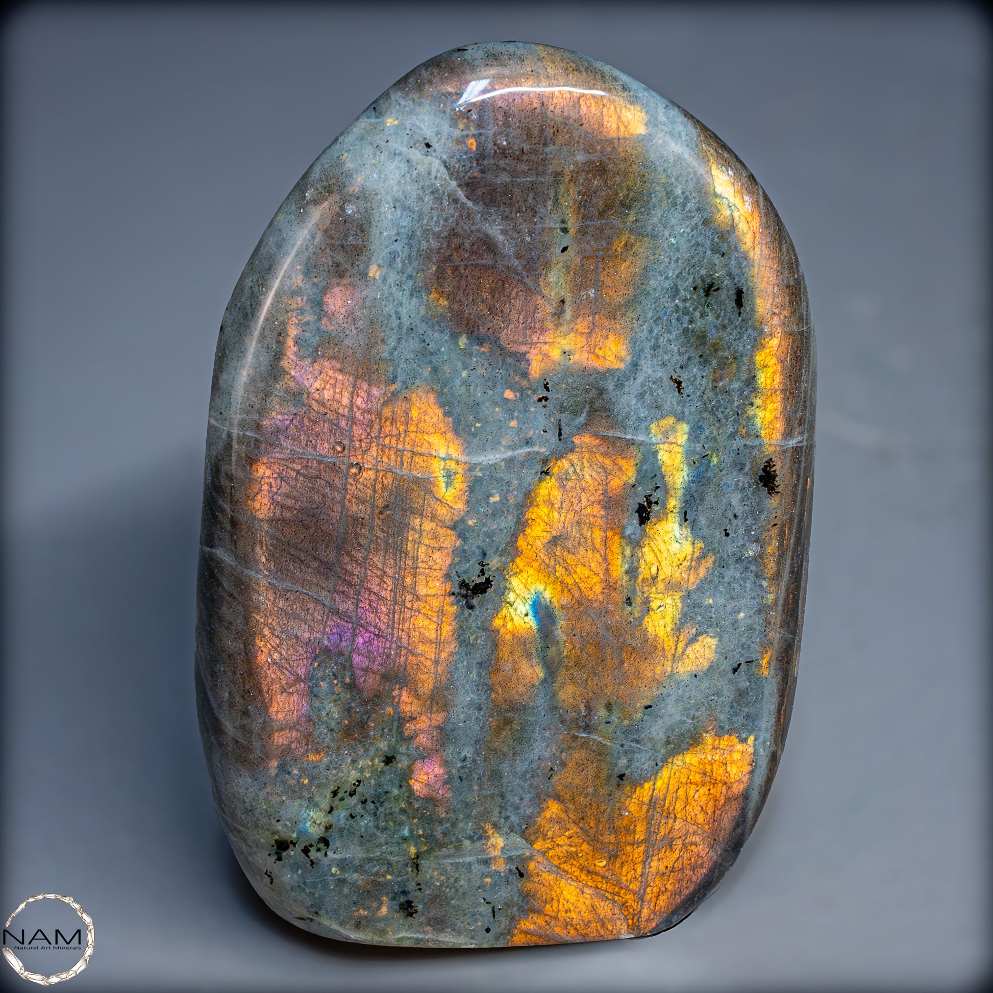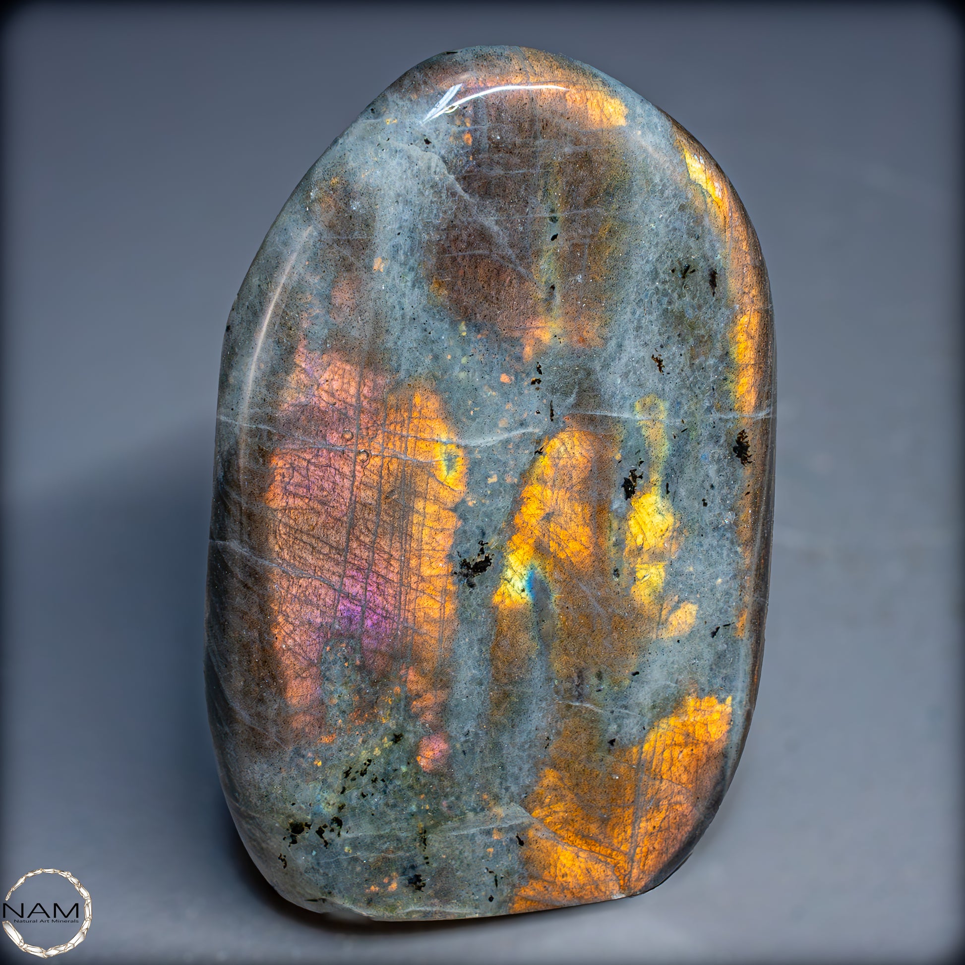 Das magische Farbenspiel des Labradorits wird auch Labradorisieren genannt. Das natürliche Licht bricht an den Kristallen auf der Oberfläche des Edelsteins. Die in ihm enthaltenen Mineralien reflektieren blau,gelb, gold, orange und grün. Einer Inuit-Legende zufolge schlug ein Krieger mit seinem Schwert auf ein großes Stück Labradorit ein. Die vielen Farben stiegen in den Himmel hinauf. So wurden die Nordlichter geboren.
