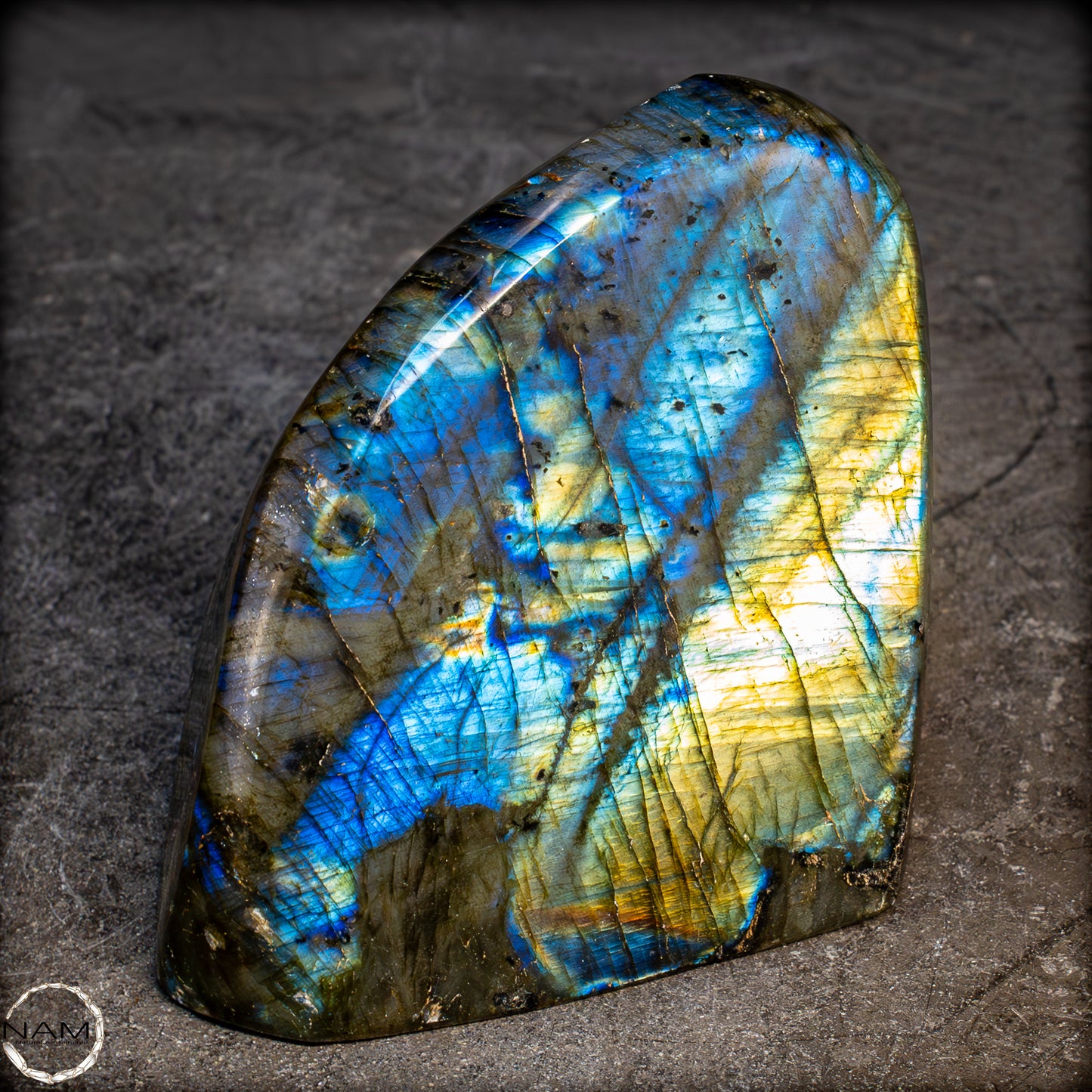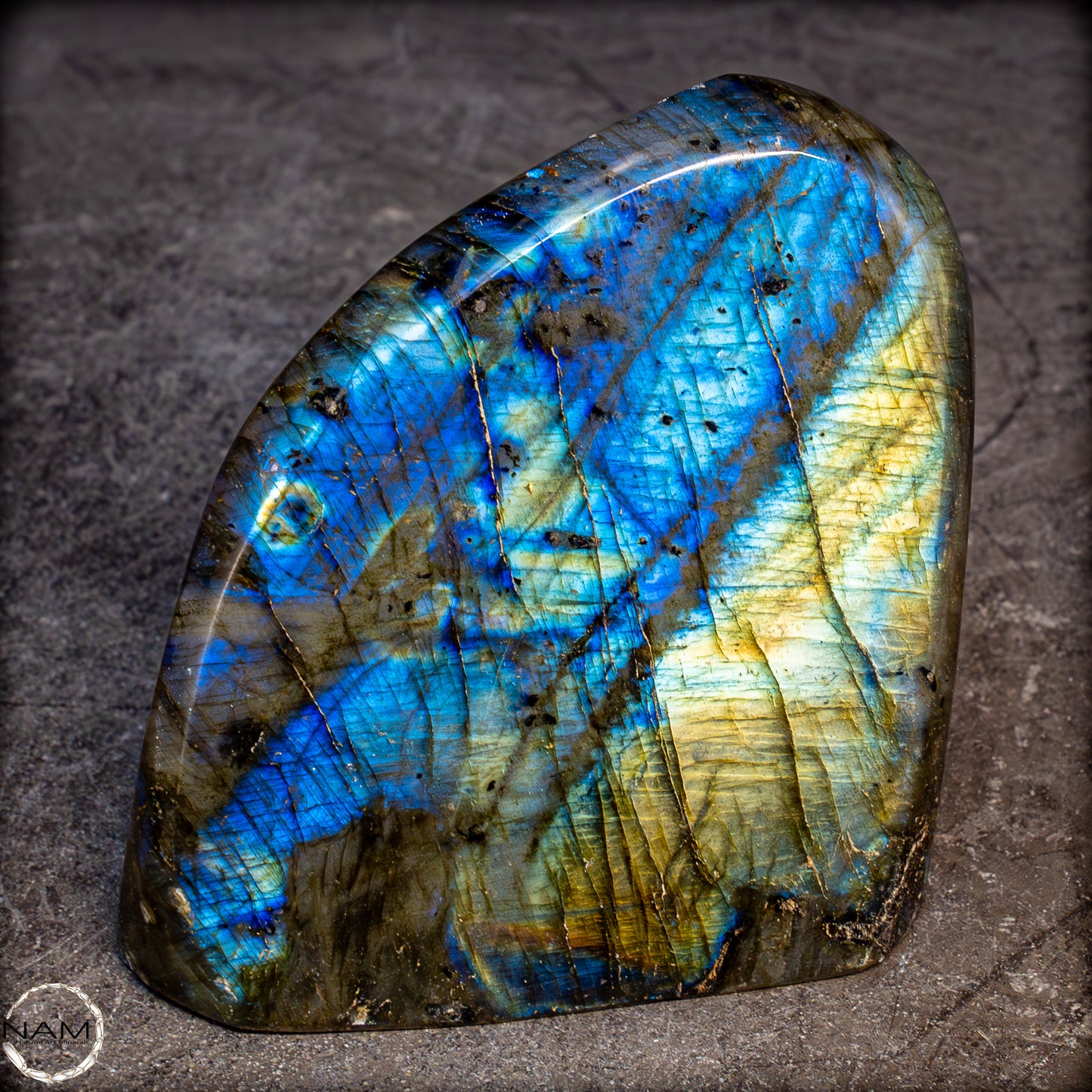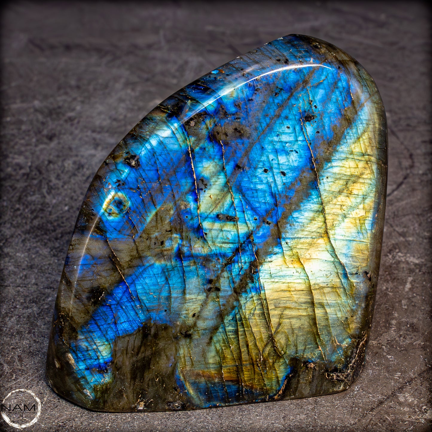 Das magische Farbenspiel des Labradorits wird auch Labradorisieren genannt. Das natürliche Licht bricht an den Kristallen auf der Oberfläche des Edelsteins. Die in ihm enthaltenen Mineralien reflektieren blau,gelb, gold, orange und grün. Einer Inuit-Legende zufolge schlug ein Krieger mit seinem Schwert auf ein großes Stück Labradorit ein. Die vielen Farben stiegen in den Himmel hinauf. So wurden die Nordlichter geboren.
