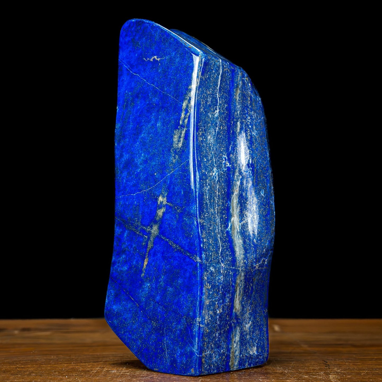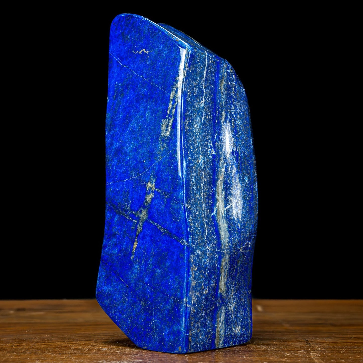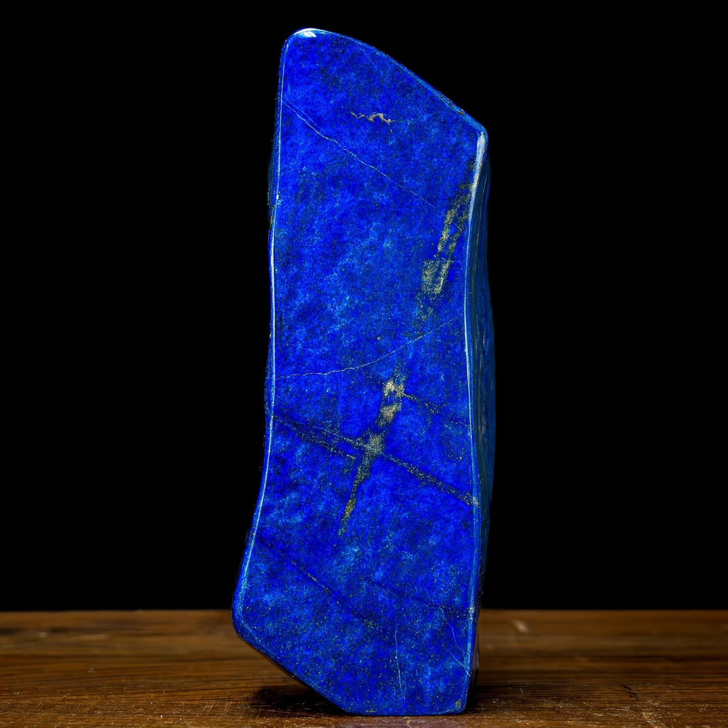 Diese exquisite Freiform aus natürlichem Lapis Lazuli stammt aus Pakistan und präsentiert sich in höchster Qualität. Der intensive blaue Farbton des Lapis Lazuli, durchsetzt mit feinen goldenen Pyrit-Adern und zarten weißen Calcit-Einschlüssen, macht dieses Stück zu einem echten Blickfang.