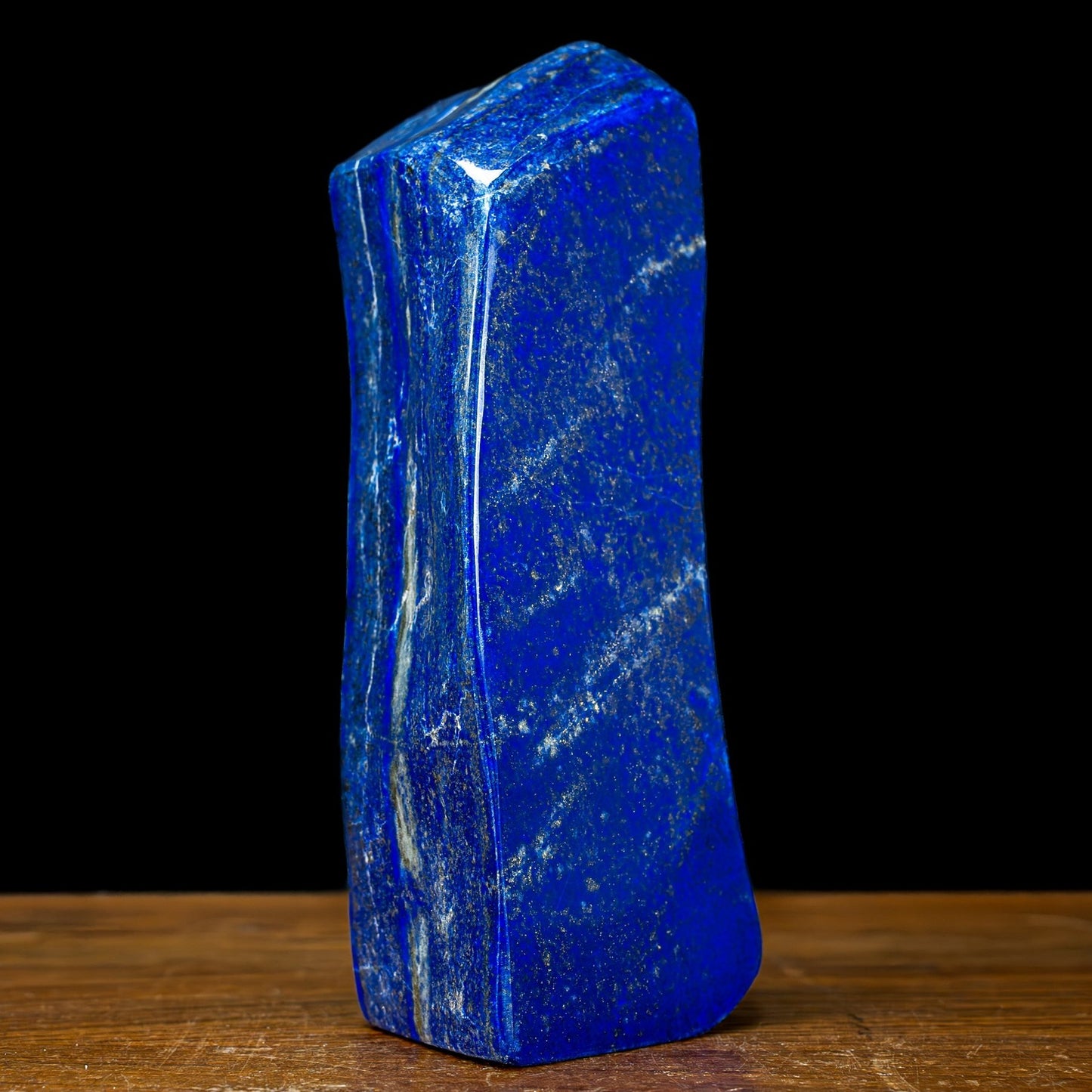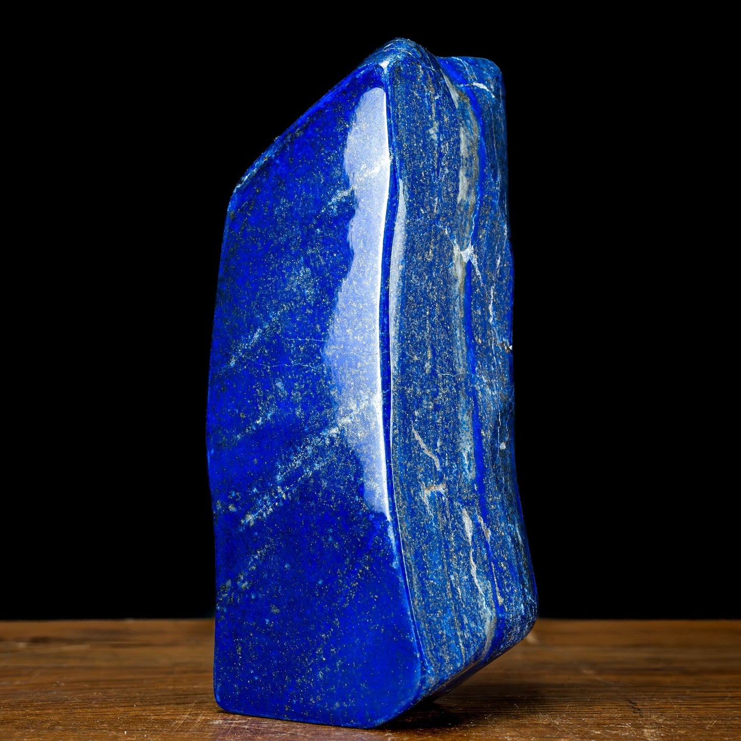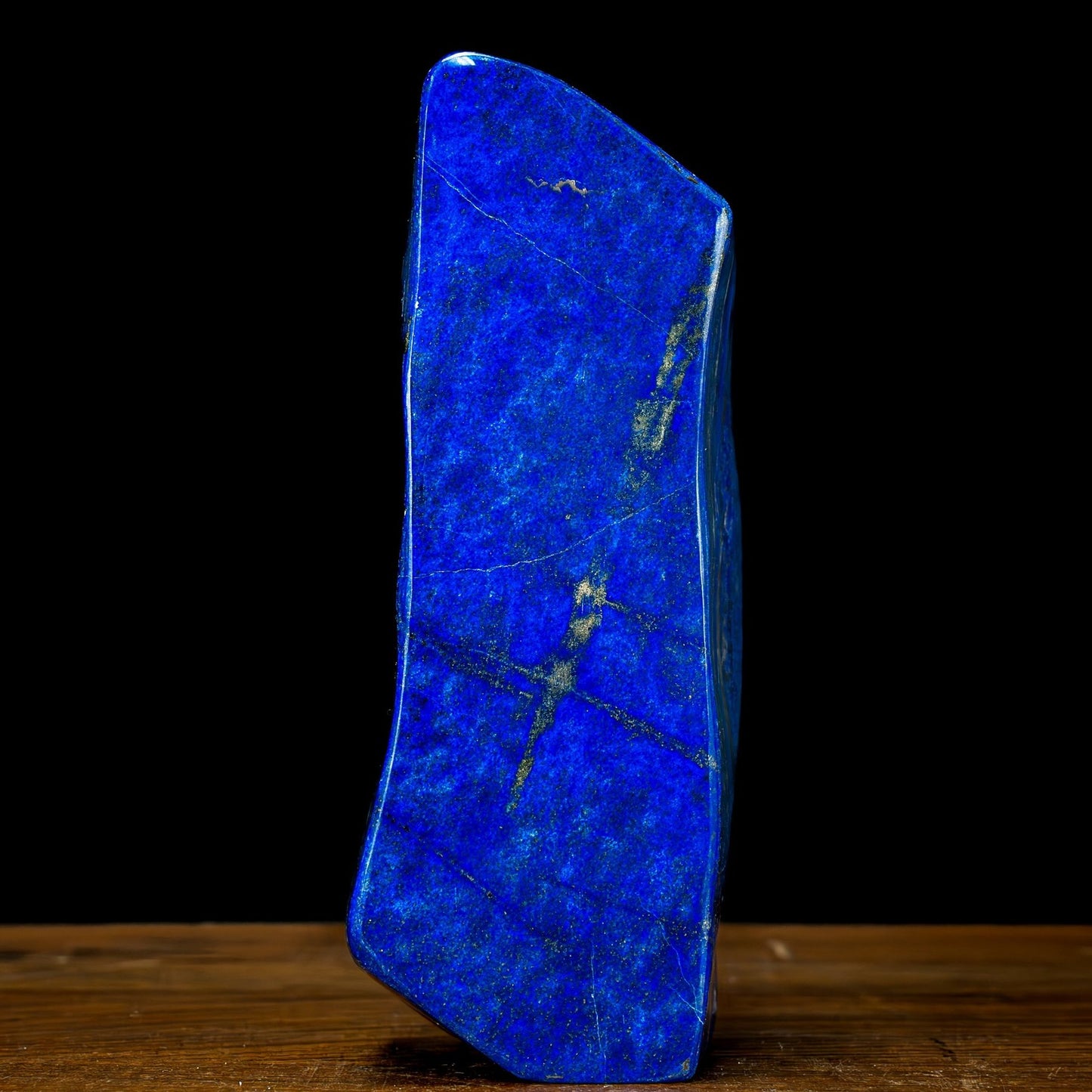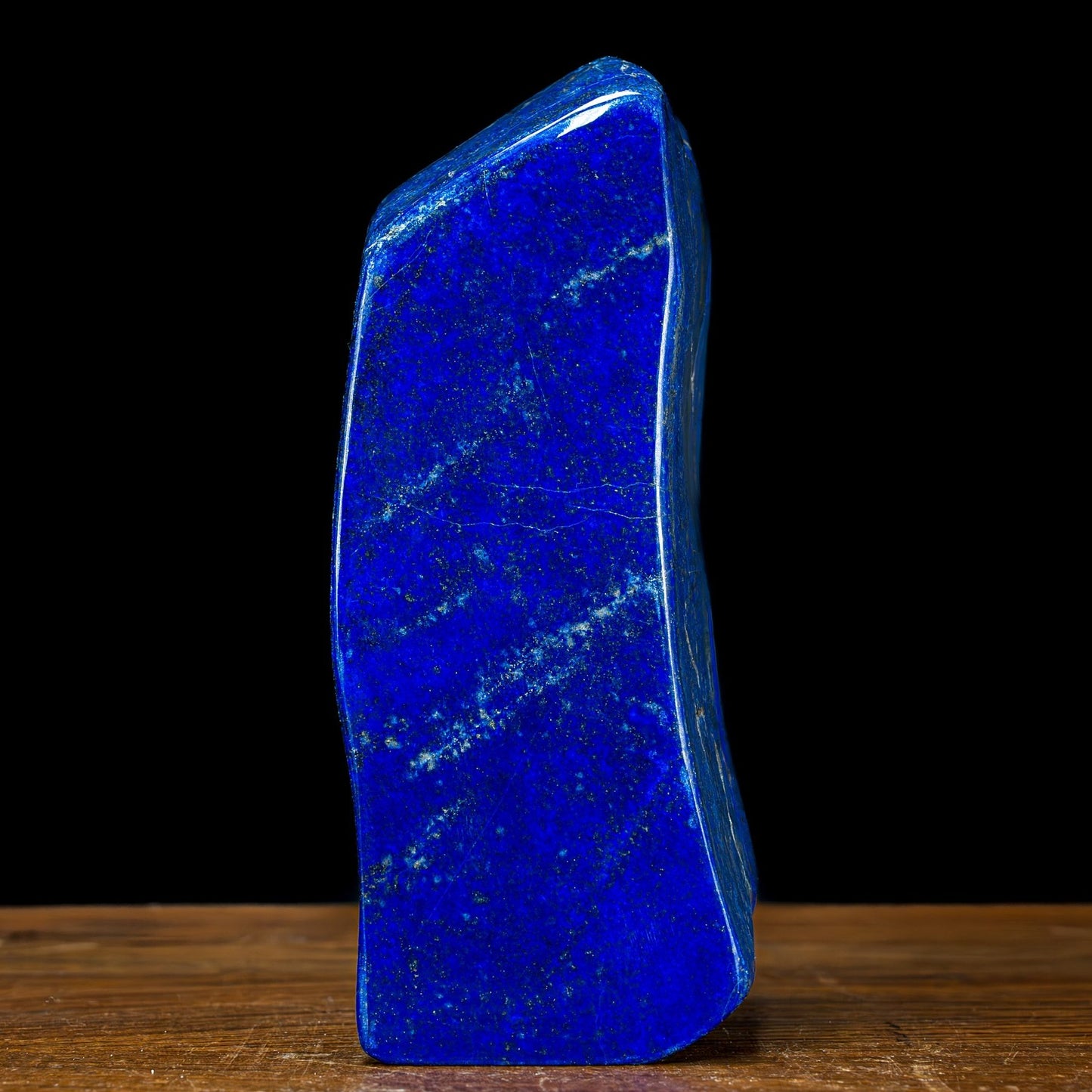 Diese exquisite Freiform aus natürlichem Lapis Lazuli stammt aus Pakistan und präsentiert sich in höchster Qualität. Der intensive blaue Farbton des Lapis Lazuli, durchsetzt mit feinen goldenen Pyrit-Adern und zarten weißen Calcit-Einschlüssen, macht dieses Stück zu einem echten Blickfang.