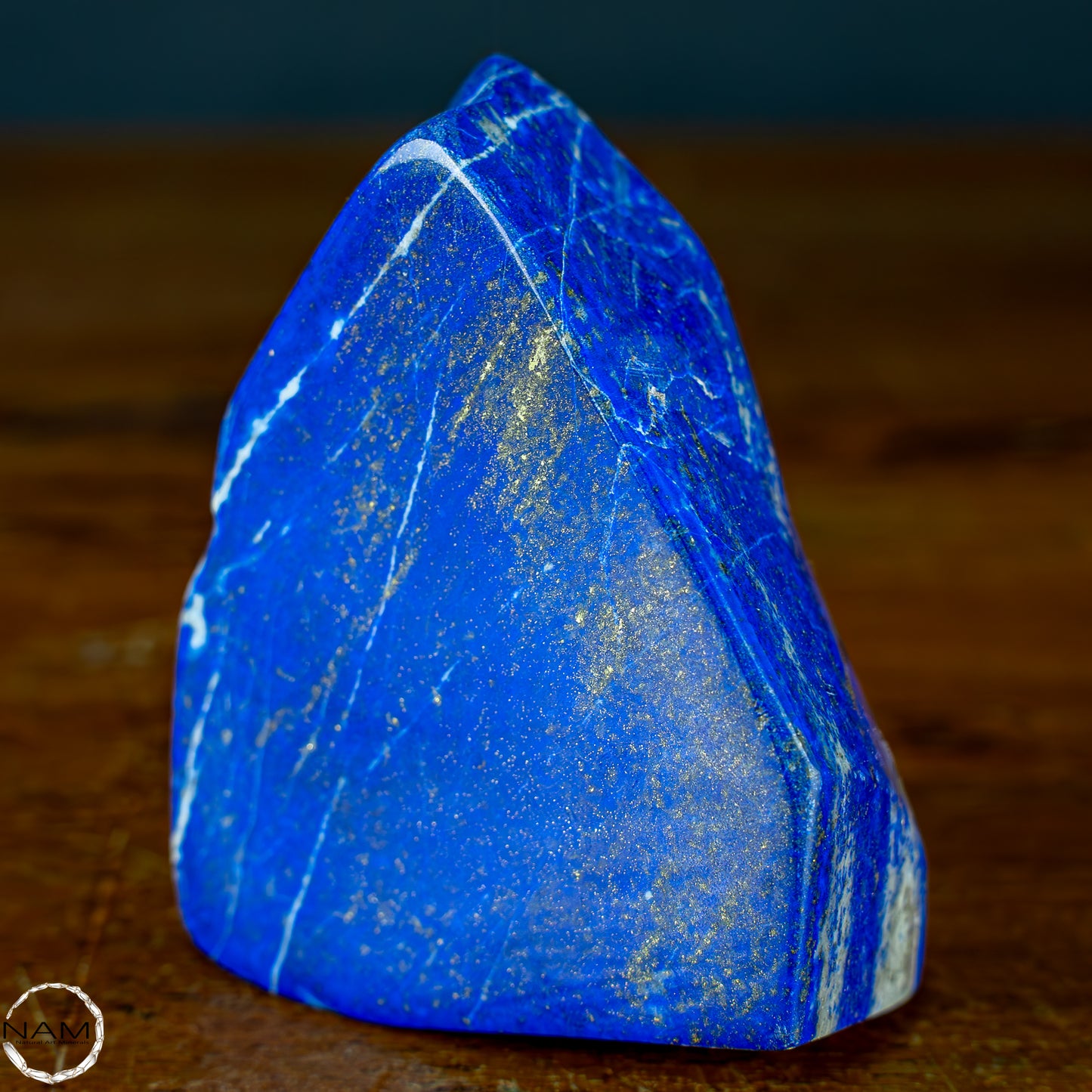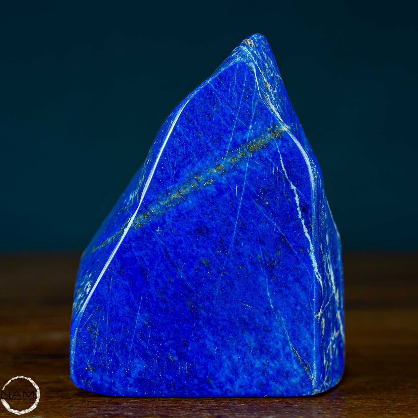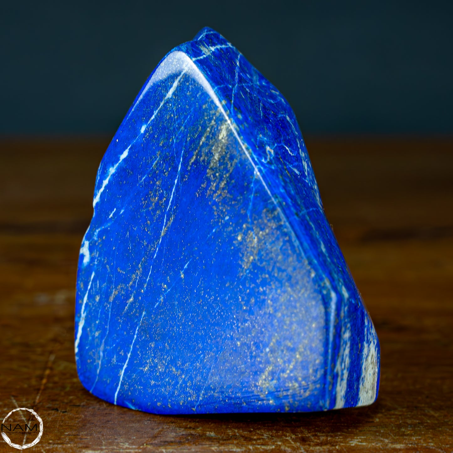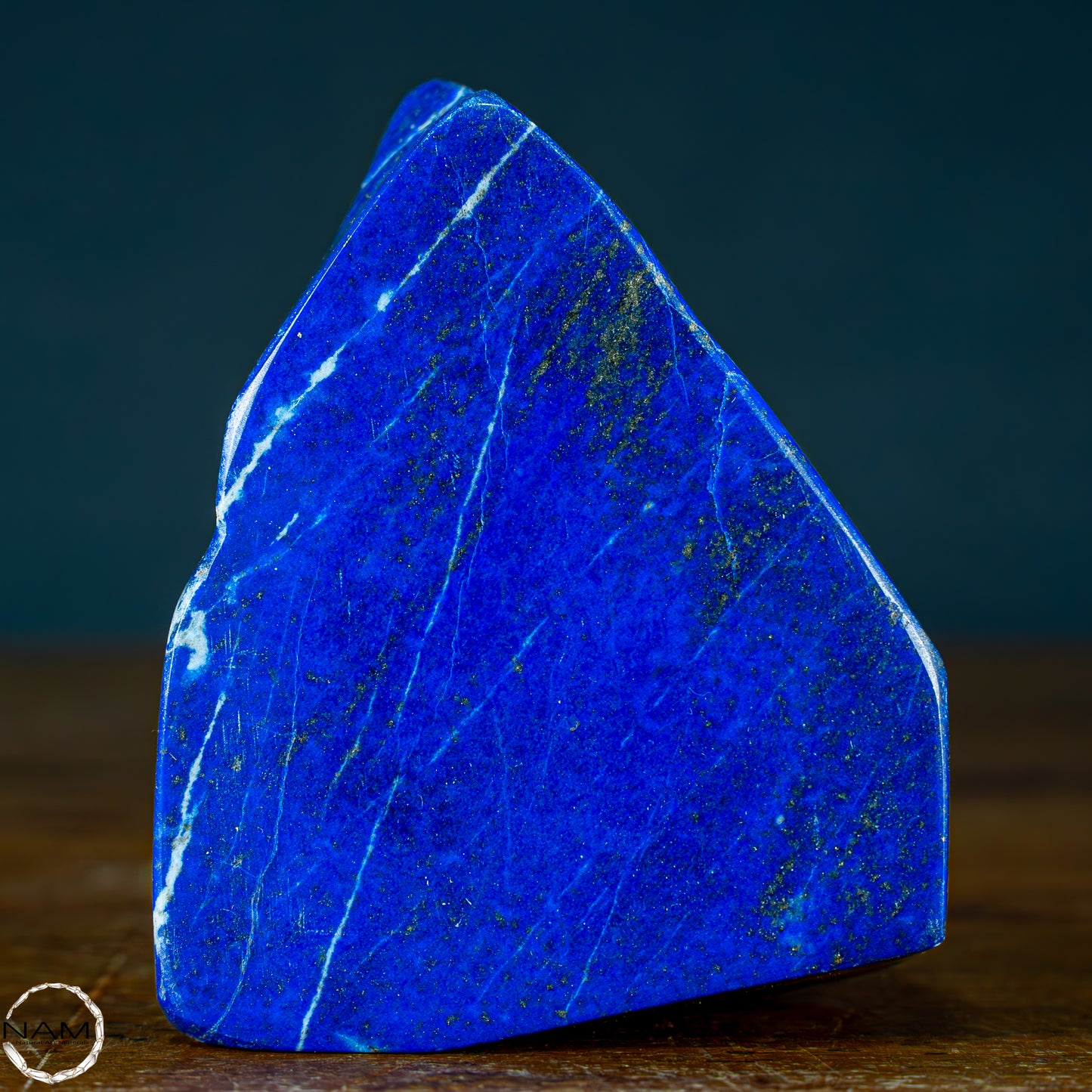 Ein traumhaftes Exemplar Lapis-Lazuli, bei dem sich die Farben der darin enthaltenen Mineralien abwechseln und einzigartige Farbkombinationen entstehen.