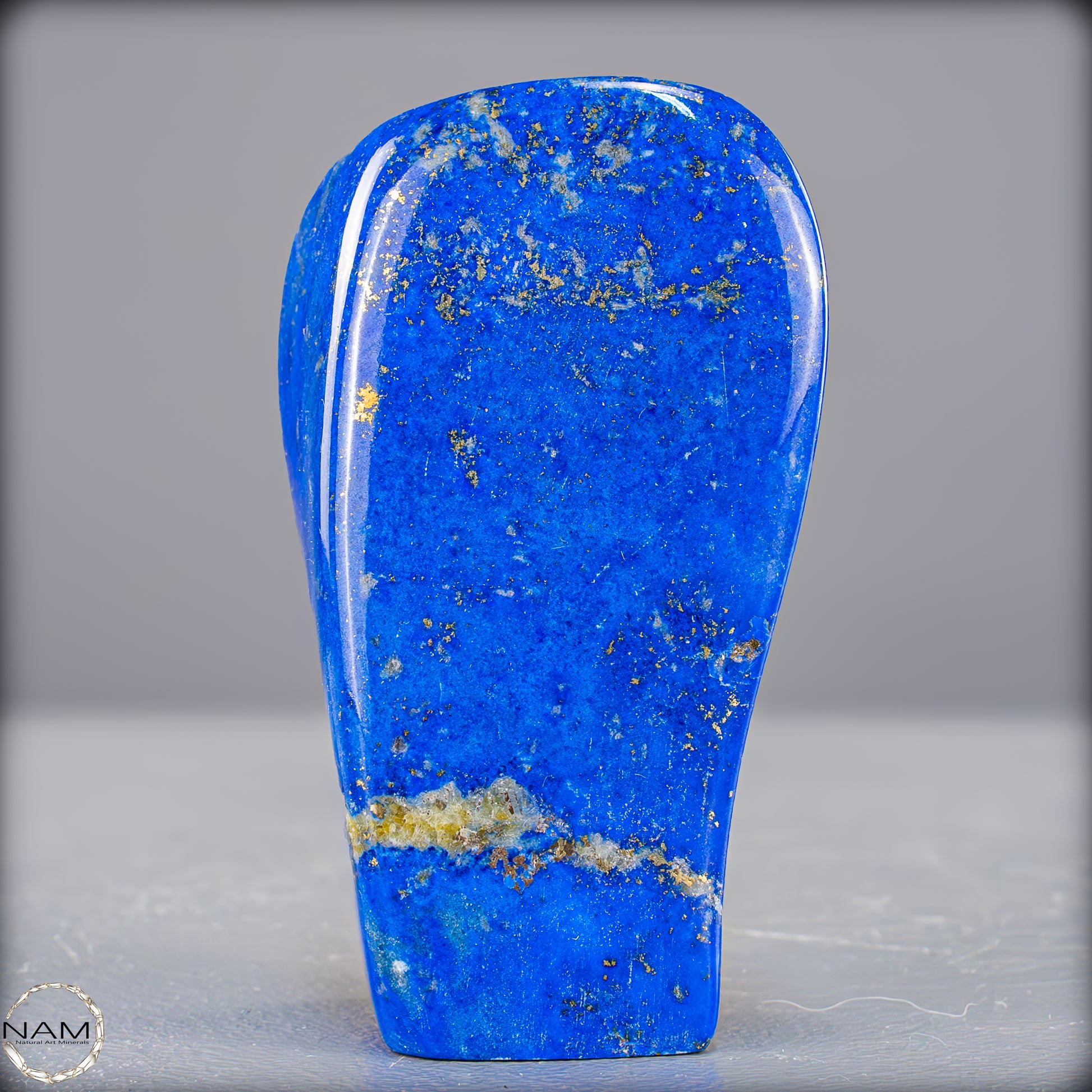 Ein traumhaftes Exemplar von Lapis-Lazuli, bei dem sich die Farben der darin enthaltenen Mineralien abwechseln und einzigartige Farbkombinationen entstehen.