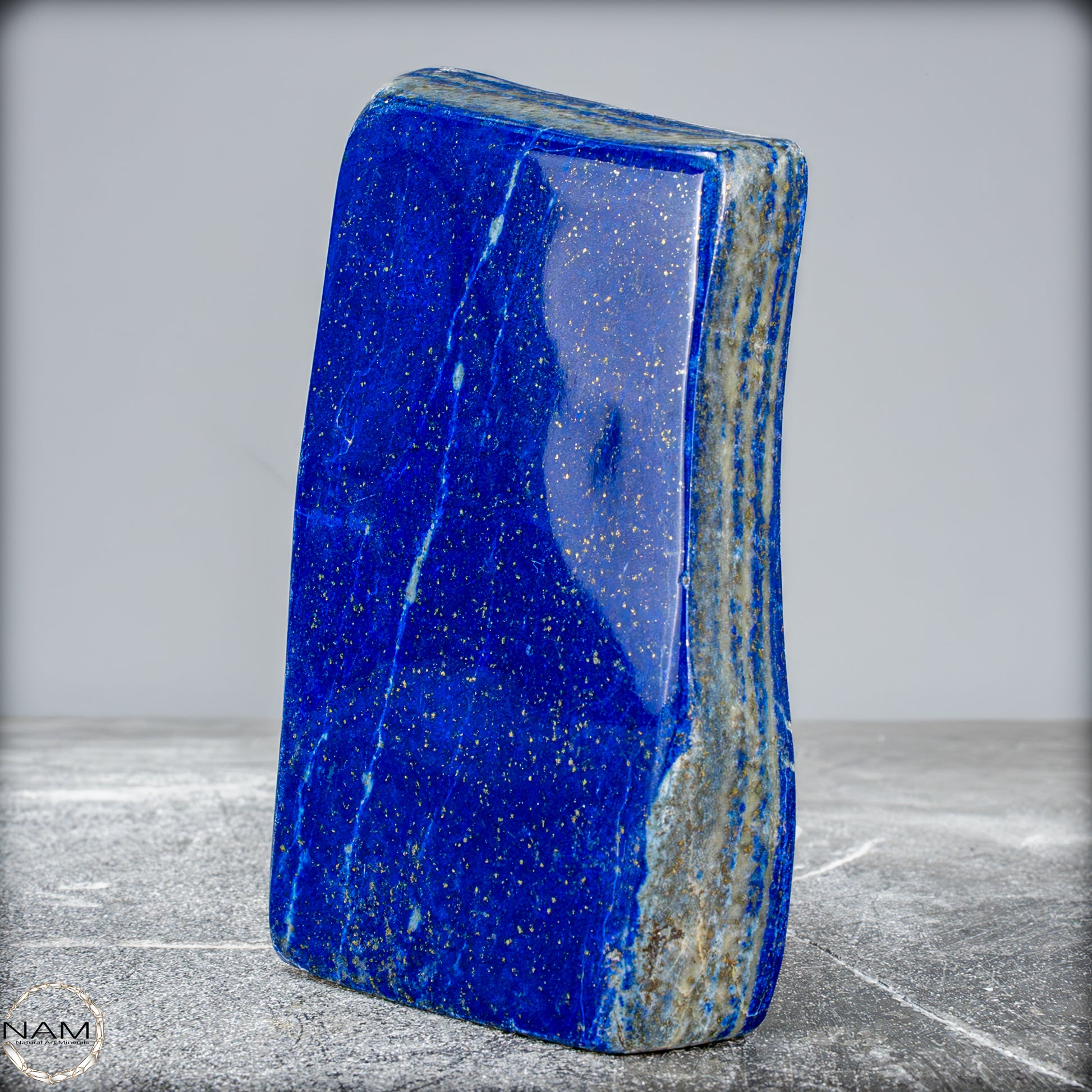 Ein traumhaftes Exemplar von Lapis-Lazuli, bei dem sich die Farben der darin enthaltenen Mineralien abwechseln und einzigartige Farbkombinationen entstehen.