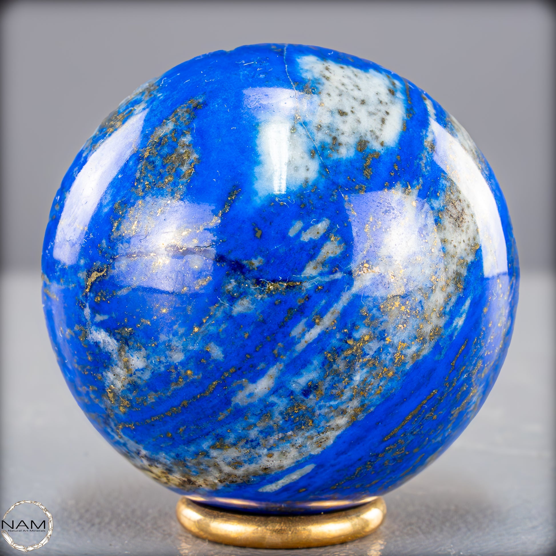 Traumhafte Qualitäts-Lapis-Sphäre bietet einen außergewöhnlichen Blick mit ihrer einzigartigen Maserung sowie Farbwechsel zwischen Königsblau und hellem Azur. Ihre Oberfläche zeigt außergewöhnliche Flecken, die einen atemberaubenden Kontrast zu Adern mit üppigem goldenem Pyrit bilden. Obwohl viele Lapis-Sphären auf dem Markt erhältlich sind, sehen wir uns in der Verantwortung, nur mit den schönsten Merkmalen und ungewöhnlichen Farbspielen auszuwählen, und diese Sphäre verkörpert dieses Ziel in Perfektion.