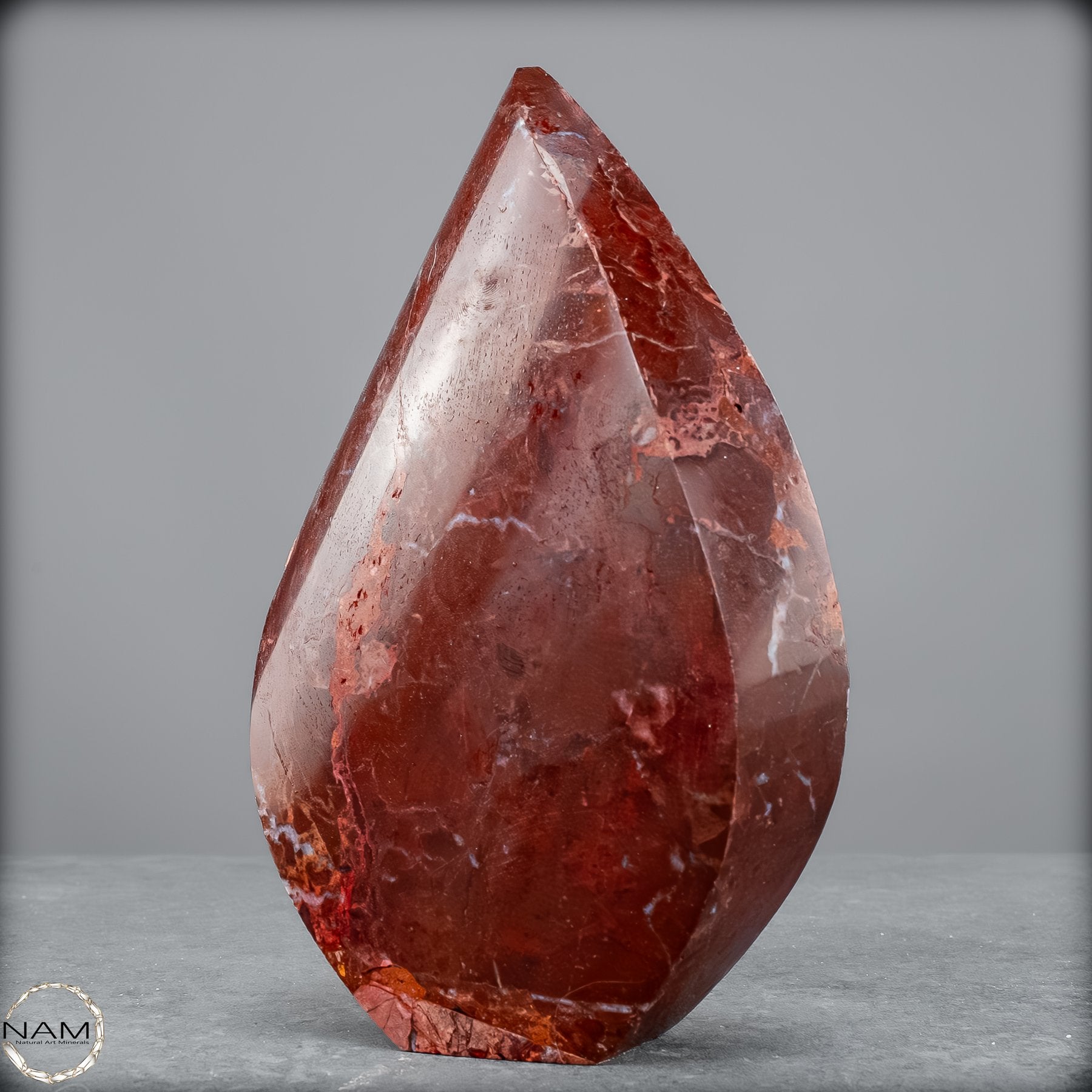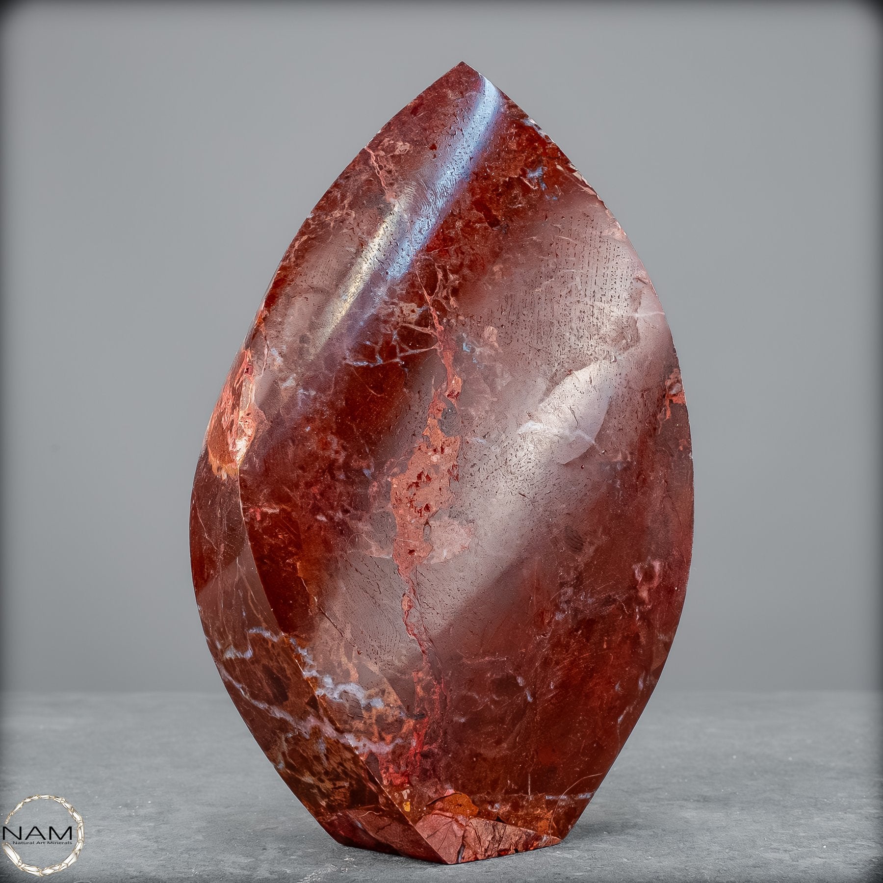 Wie ein erstarrter Funke aus dem Inneren der Erde wirkt diese beeindruckende rote Jaspis Flamme – kraftvoll, warm und voller lebendiger Energie.