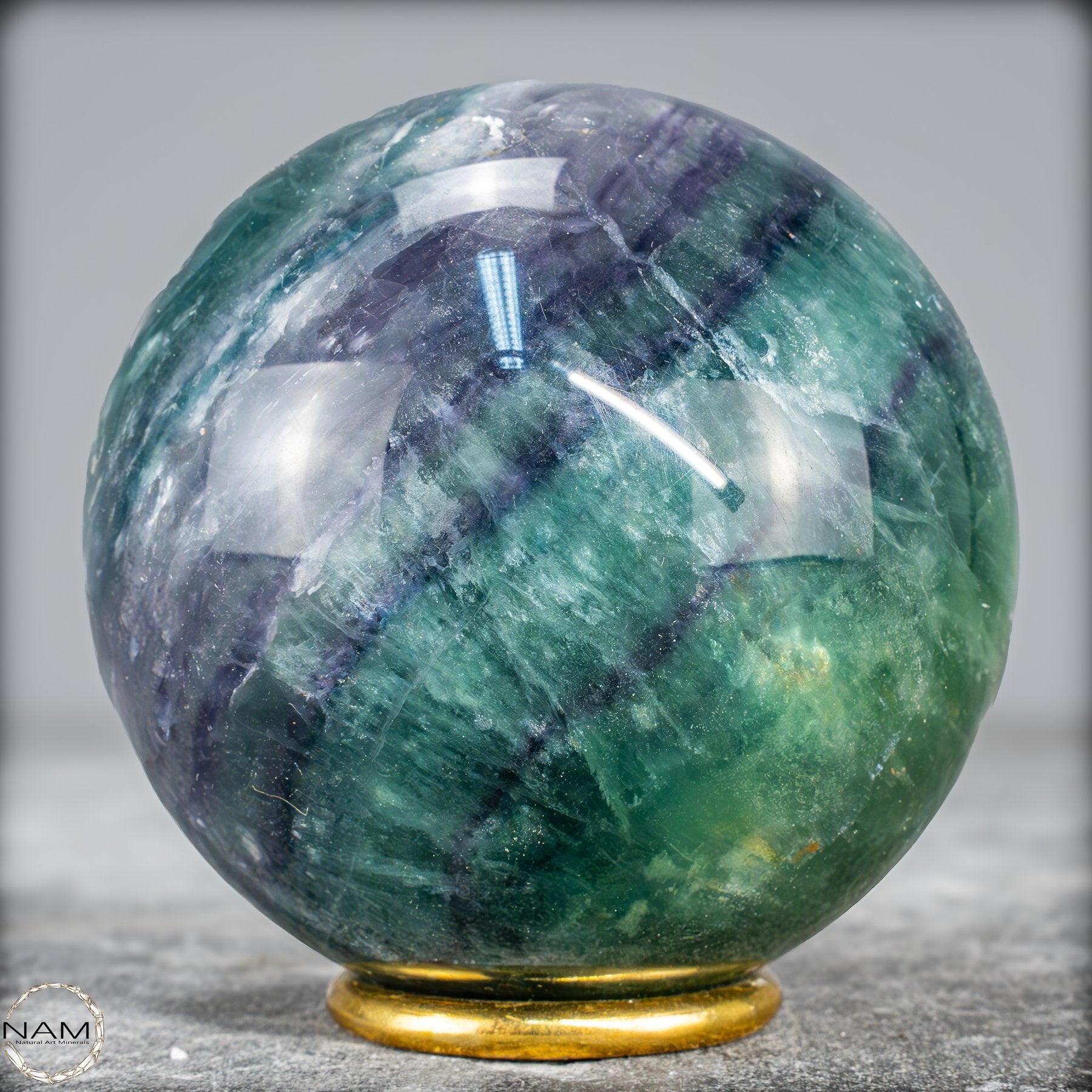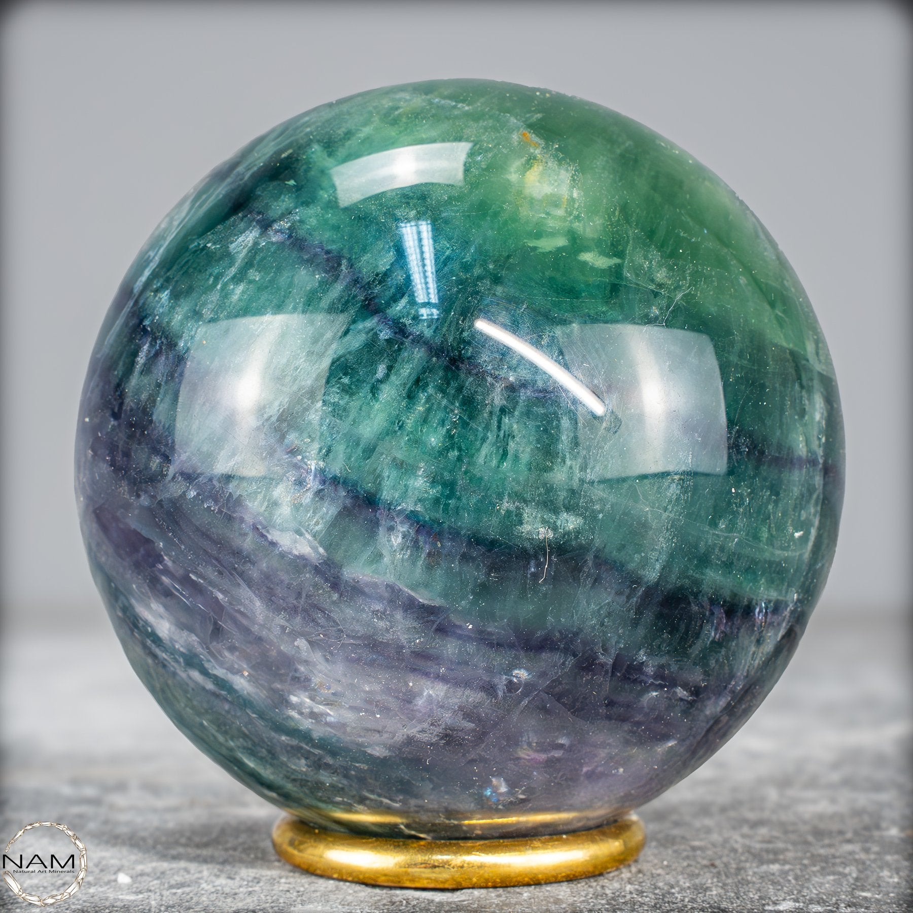 Diese smaragdgrüne Fluoritkugel ist ein wahres Sammlerstück, das uns mit unserem Wesenskern verbindet. Die lebendige grüne Farbe in Verbindung ihrer Transparenz des Fluorits steht für Erneuerung und Wachstum.