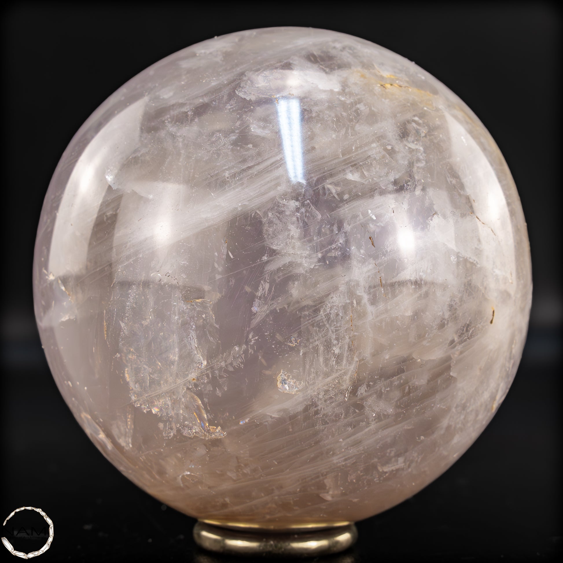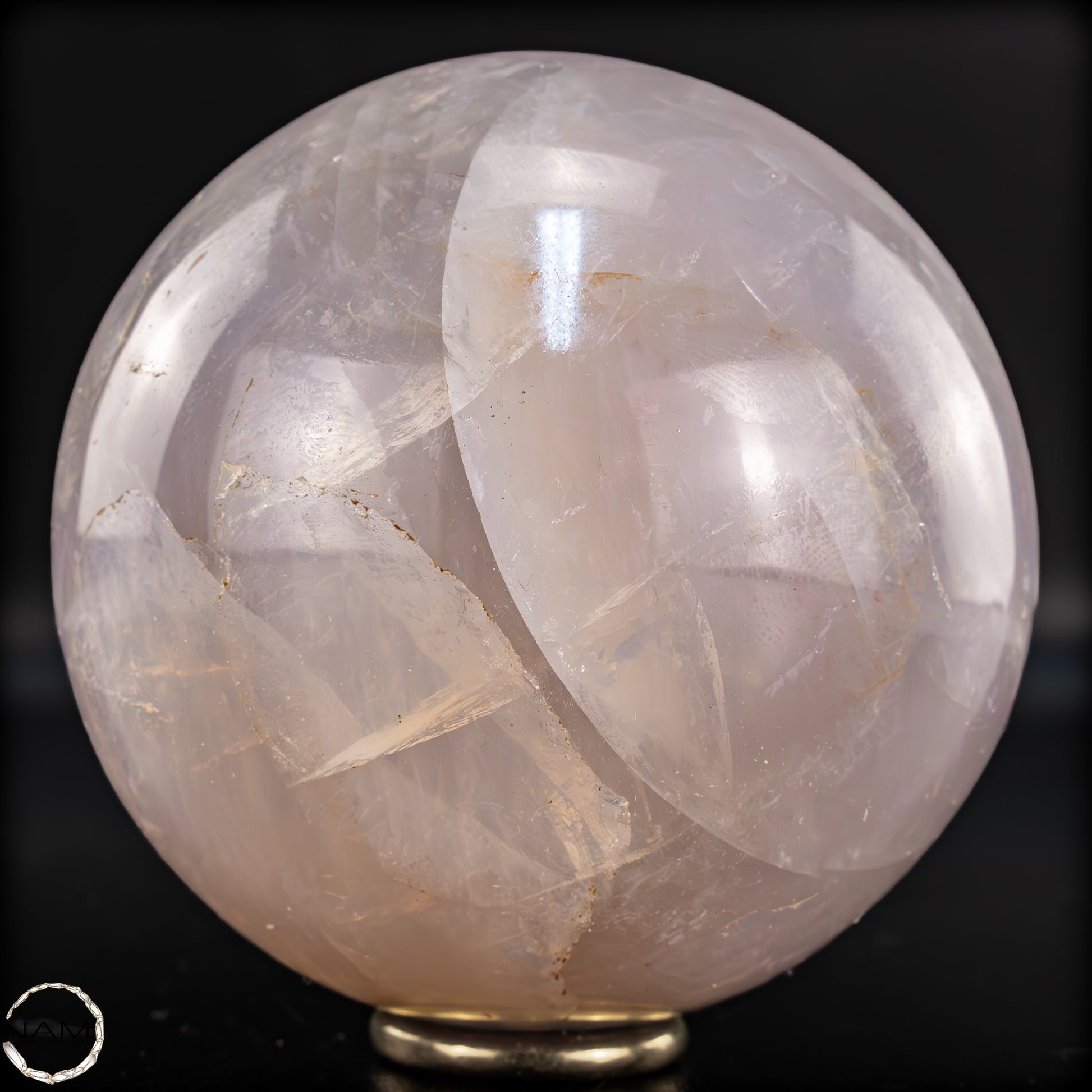 Diese außergewöhnliche Kugel aus Lavendel-Rosenquarz besticht durch ihren sanften, leicht milchigen Pastellton, der je nach Lichteinfall zwischen zartem Rosé und einem feinen Lavendel-Schimmer changiert. Im Inneren zeigen sich faszinierende natürliche Strukturen, kristalline Flächen sowie schwebend wirkende Schleier und Einschlüsse, die der Kugel eine lebendige Tiefe und einen fast ätherischen Ausdruck verleihen.