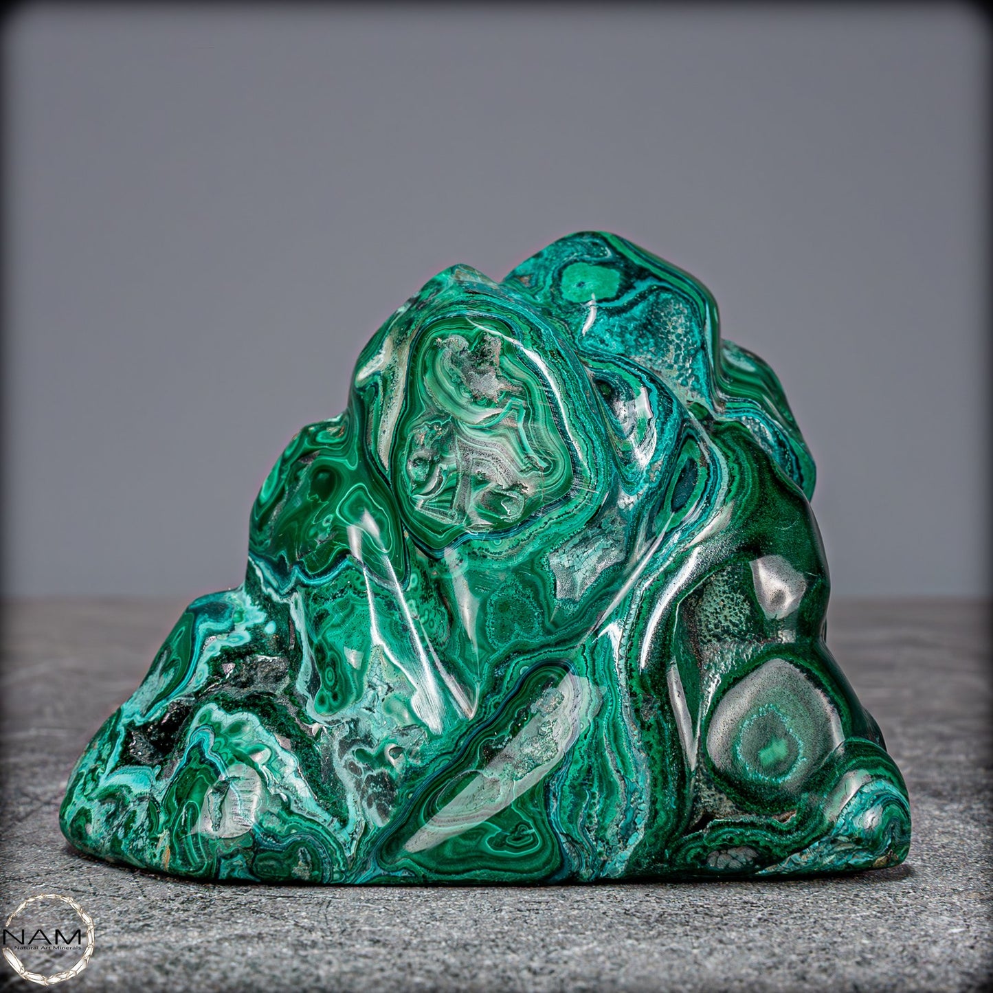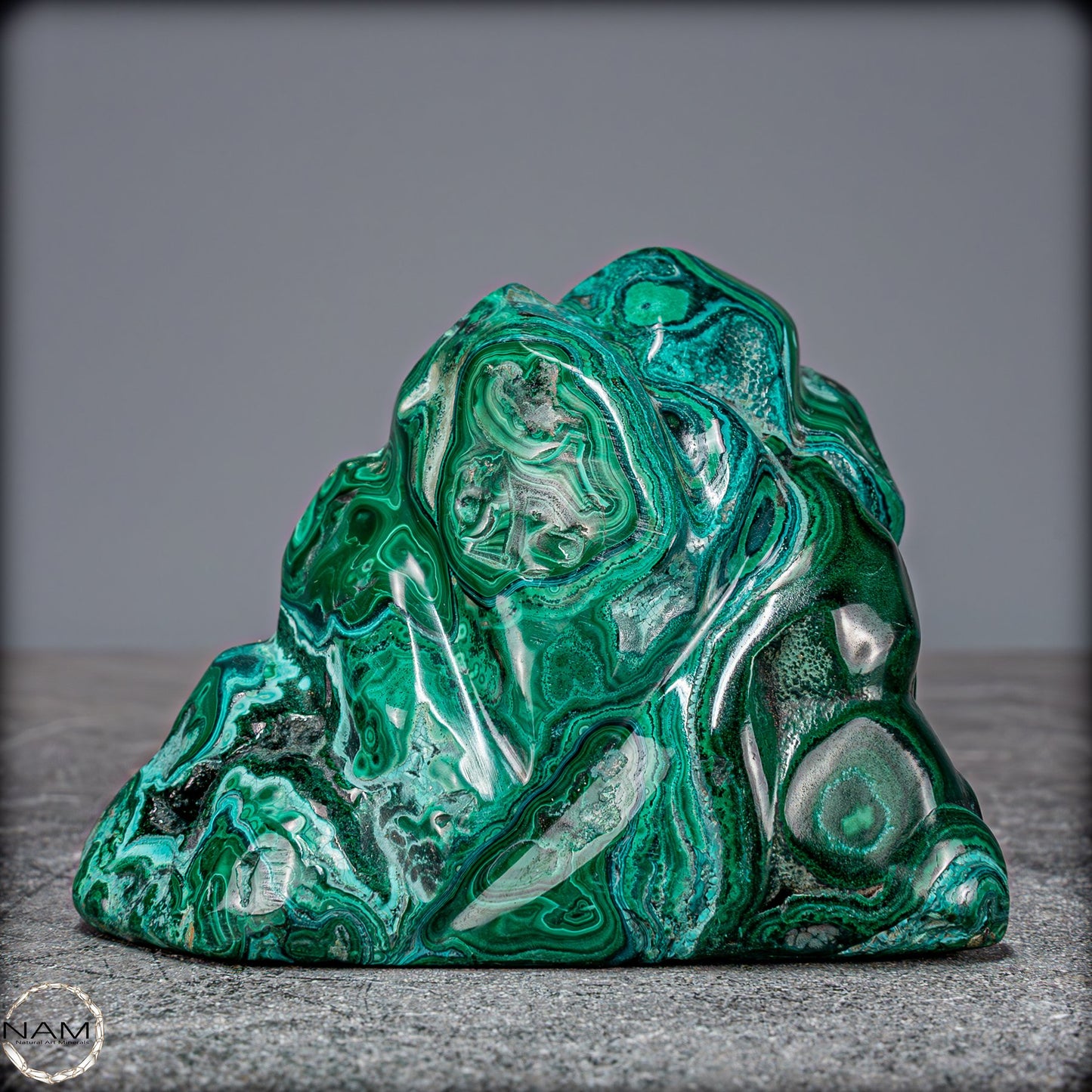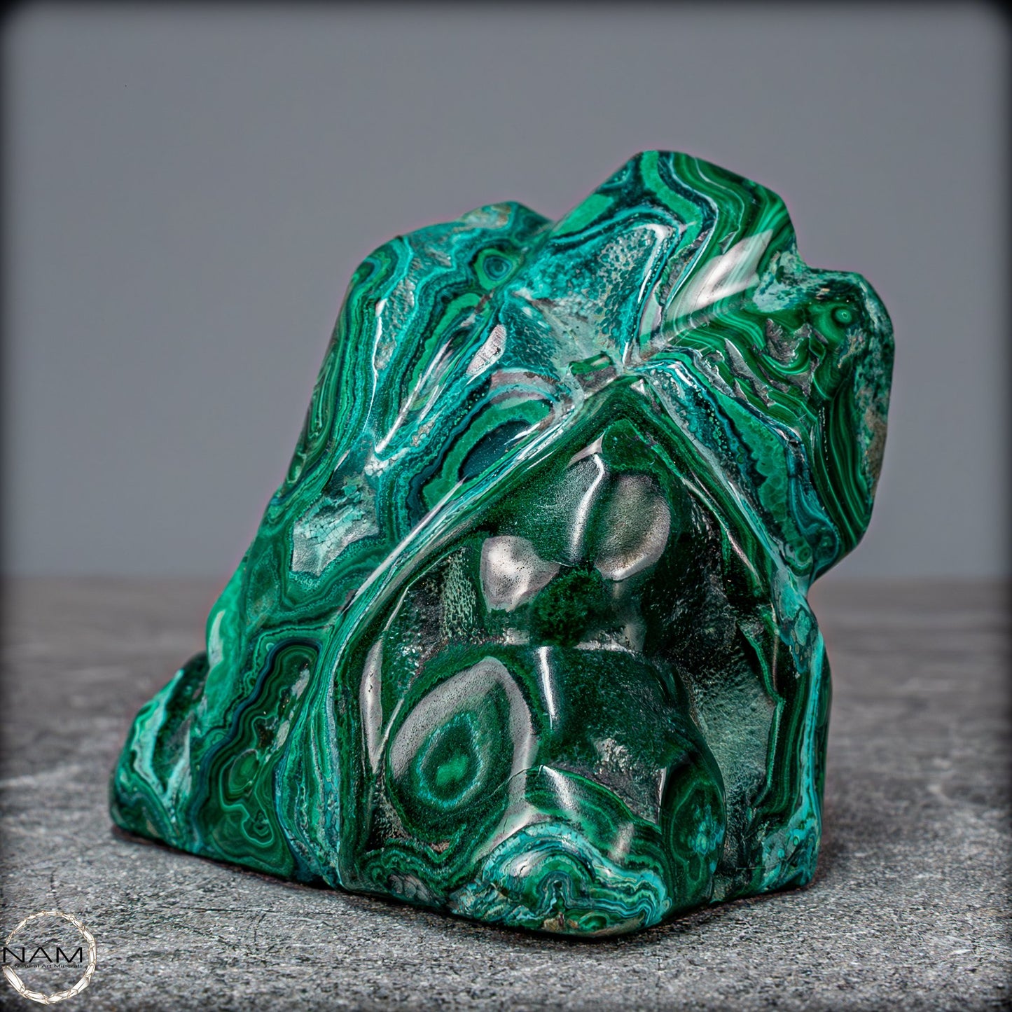 Ideal als dekoratives Herzstück in jedem Raum bringt dieses Kunstwerk nicht nur ästhetischen Genuss, sondern auch die beruhigende Energie beider Edelsteine. Malachit wird oft als Stein des Schutzes angesehen, während Chrysokolla für Harmonie und Frieden steht. Ob für Sammler, Edelsteinliebhaber oder als besonderes Geschenk, diese Freiform ist ein unvergleichliches Symbol der Schönheit und Kraft der Natur.
