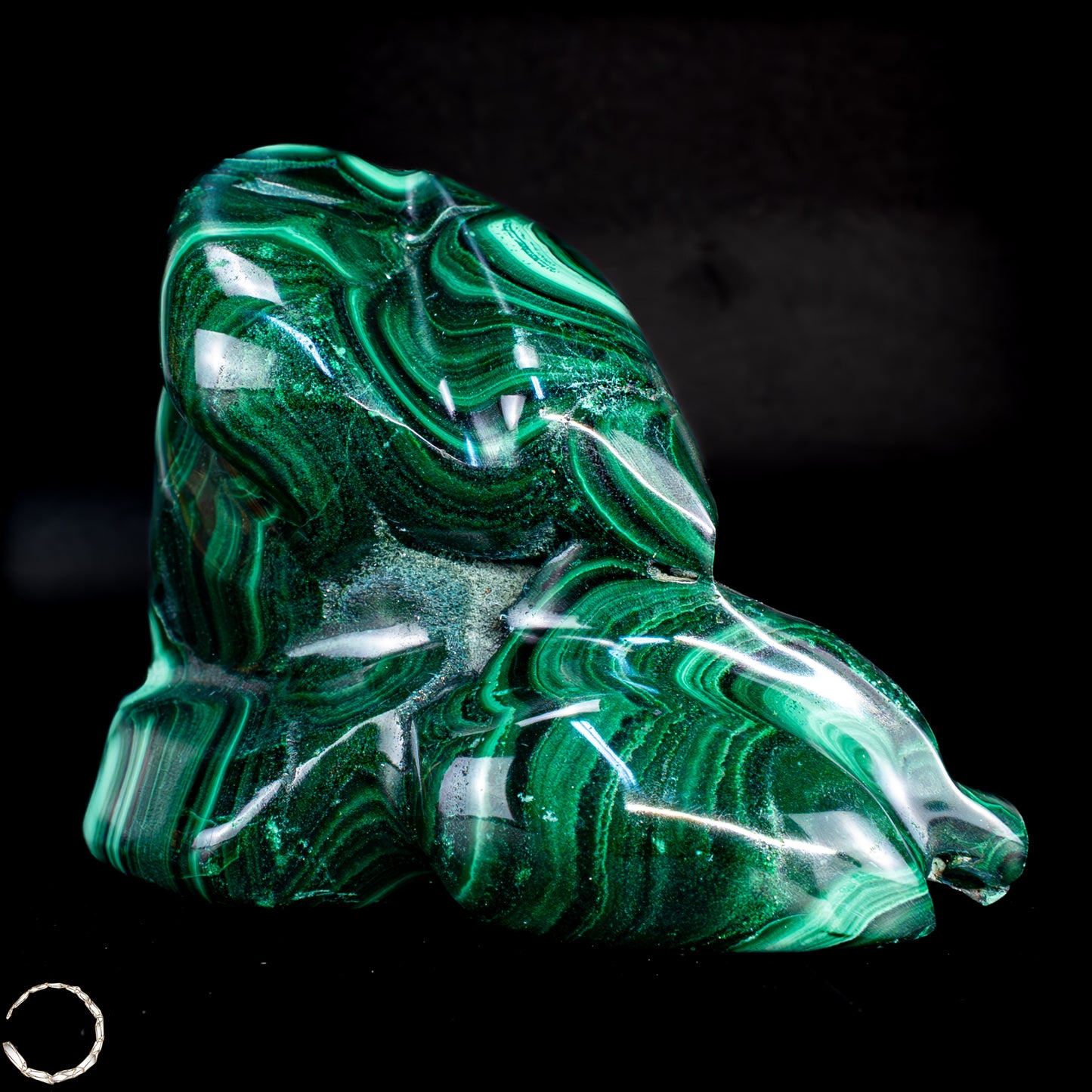 Die kräftige Form dieser Freiform bringt das natürliche Wachstum und die organische Schönheit des Malachits wunderbar zur Geltung. Ein ausdrucksstarkes Sammlerstück mit starker Präsenz – sowohl mineralogisch als auch dekorativ.