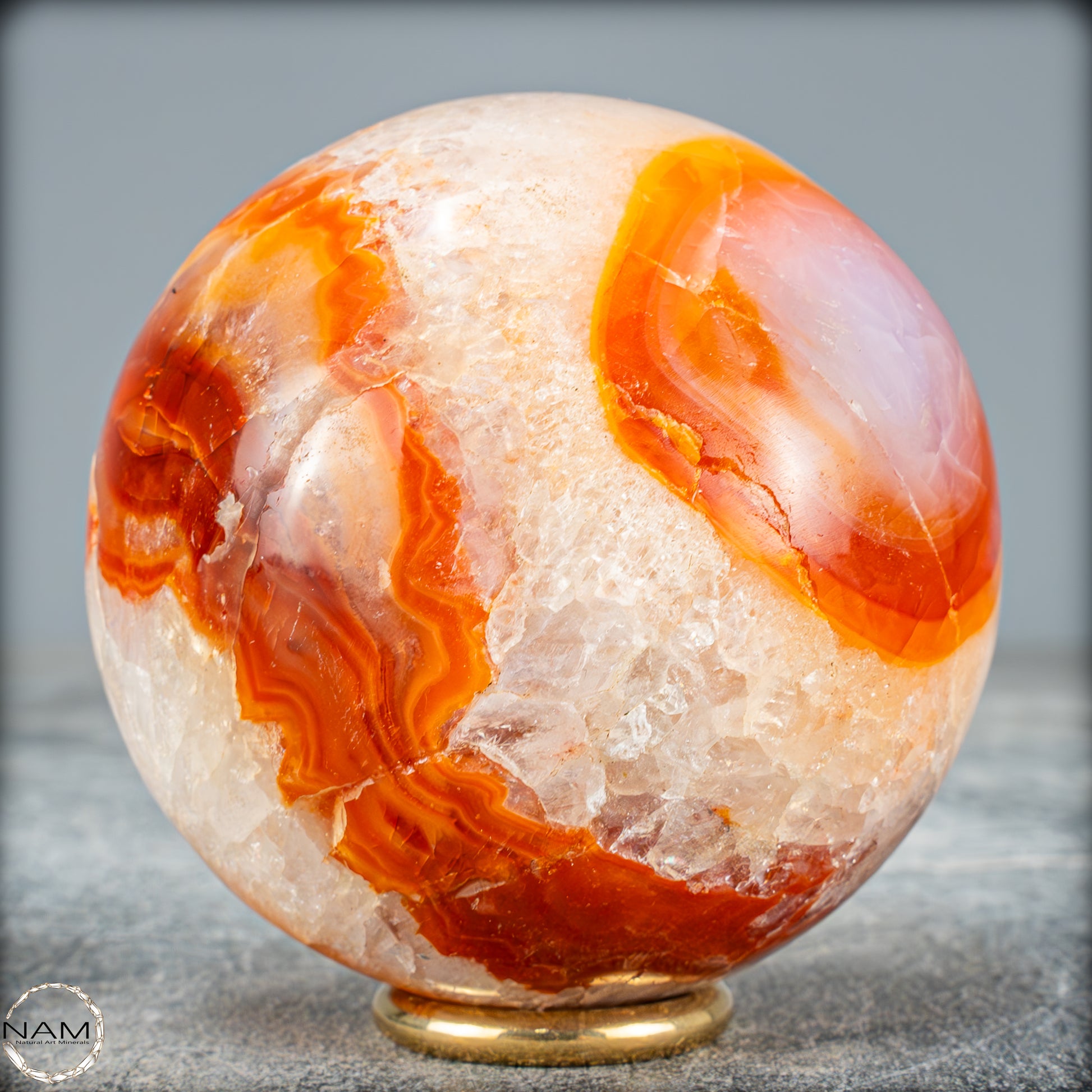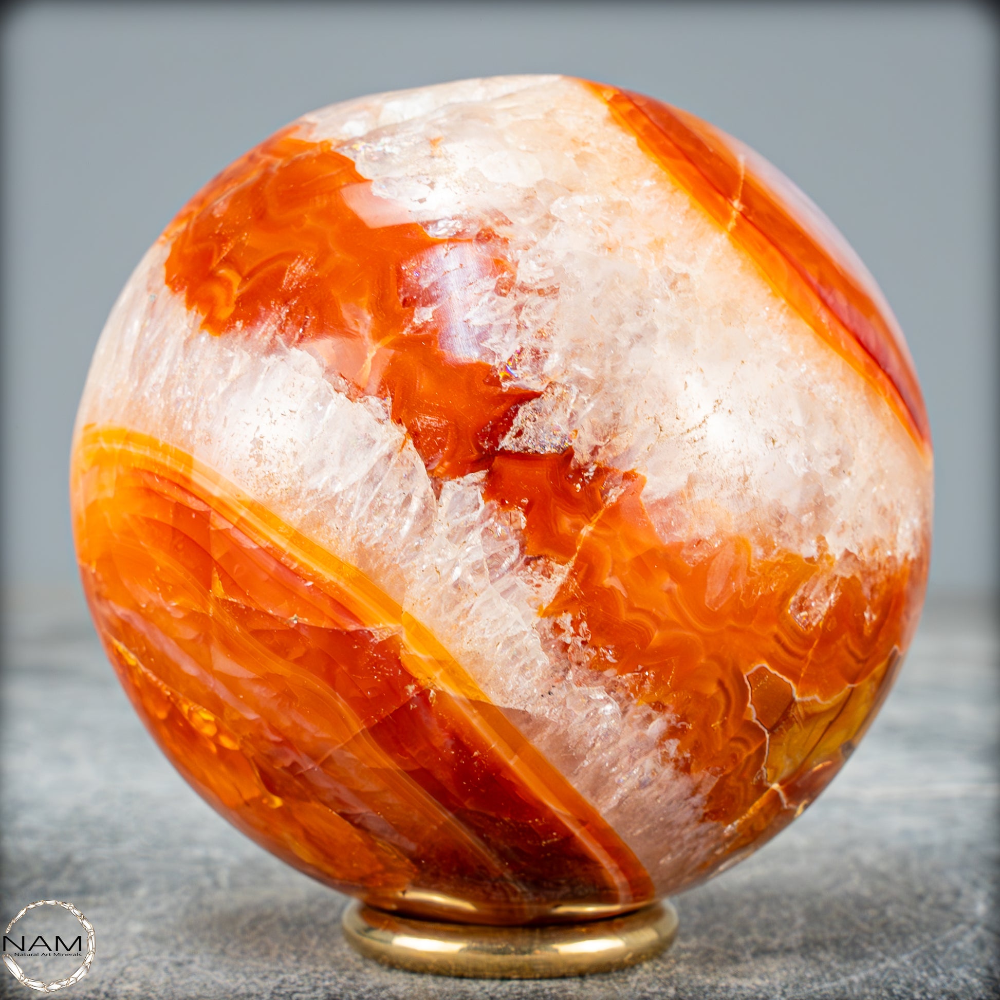 Von Hand poliert, um ihn noch seltener und Perfekter zu machen, mit sehr faszinierenden kontrastierenden Orangenen Anteilen.