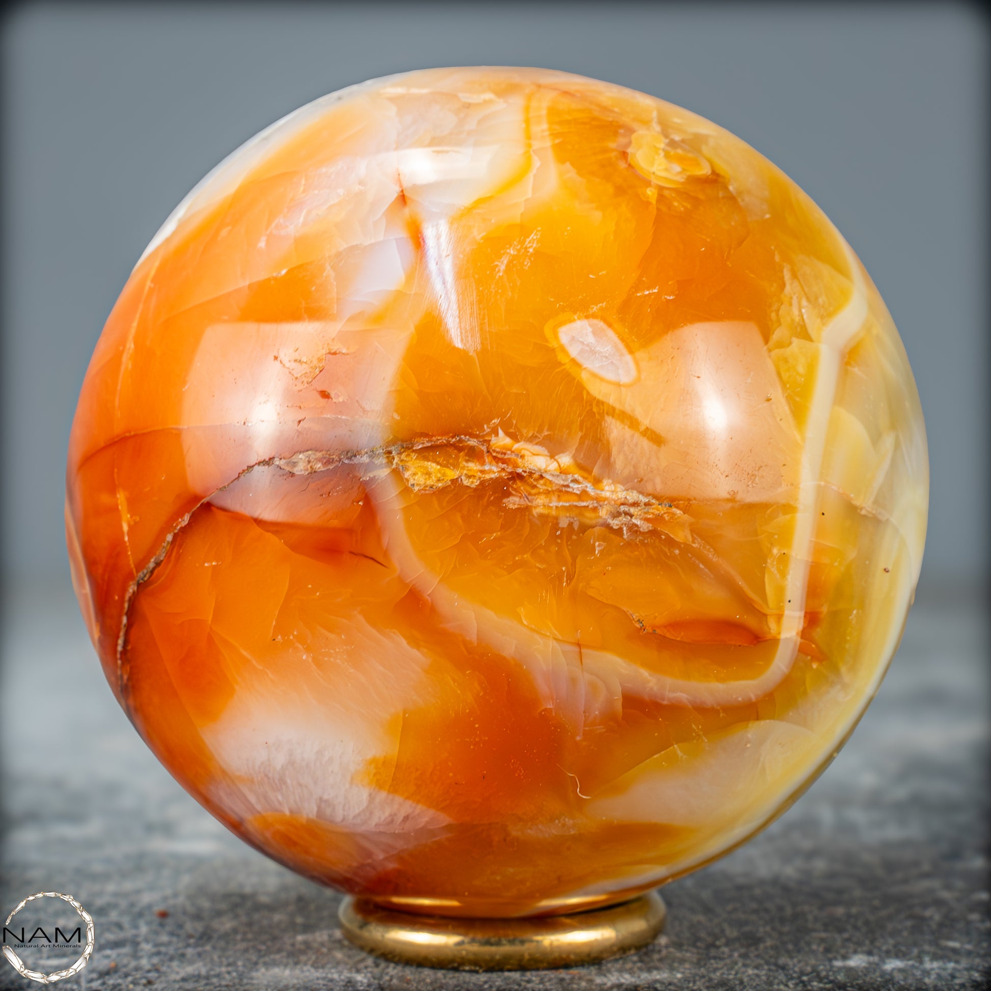 Von Hand poliert, um ihn noch seltener und perfekter zu machen, mit sehr faszinierenden kontrastierenden orangenen Anteilen.