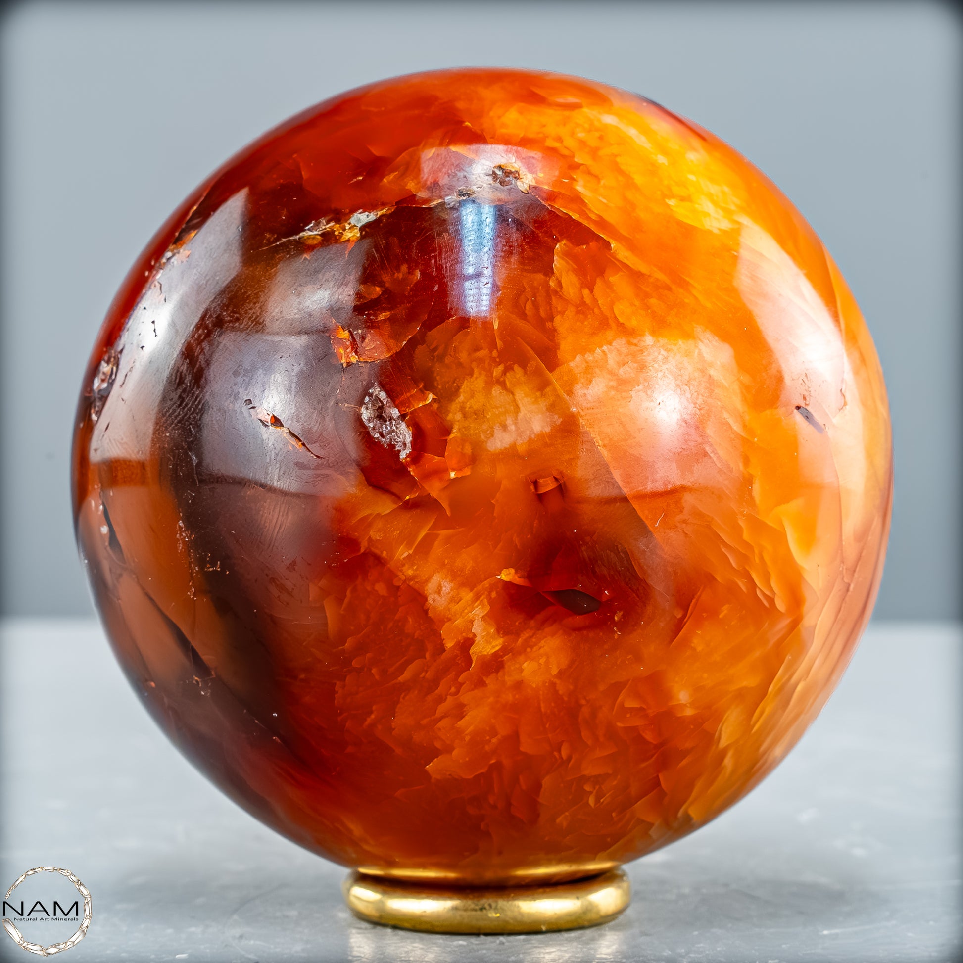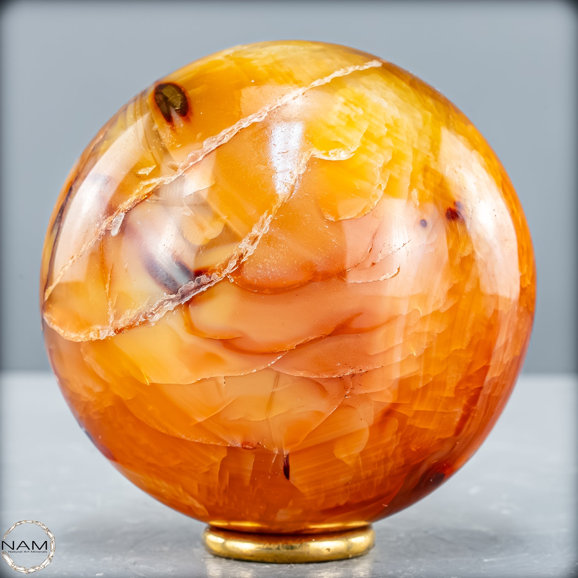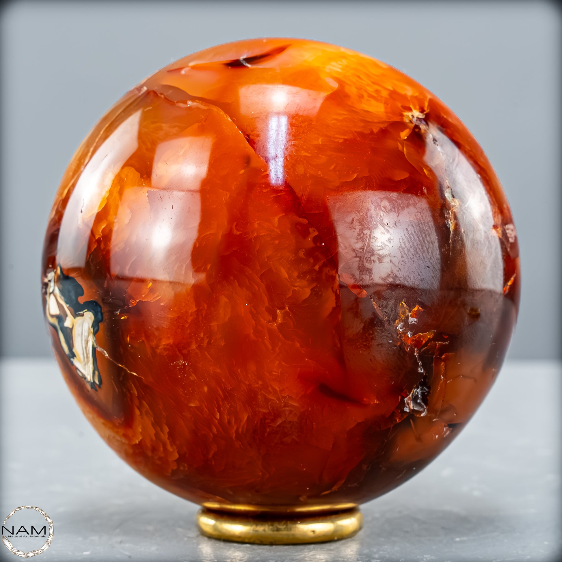 Von Hand poliert, um ihn noch seltener und perfekter zu machen, mit sehr faszinierenden kontrastierenden orangenen Anteilen.